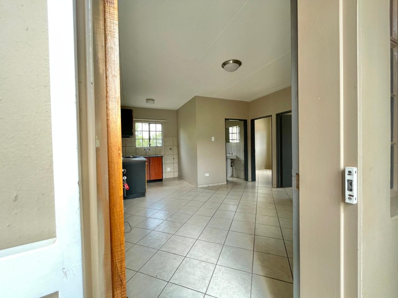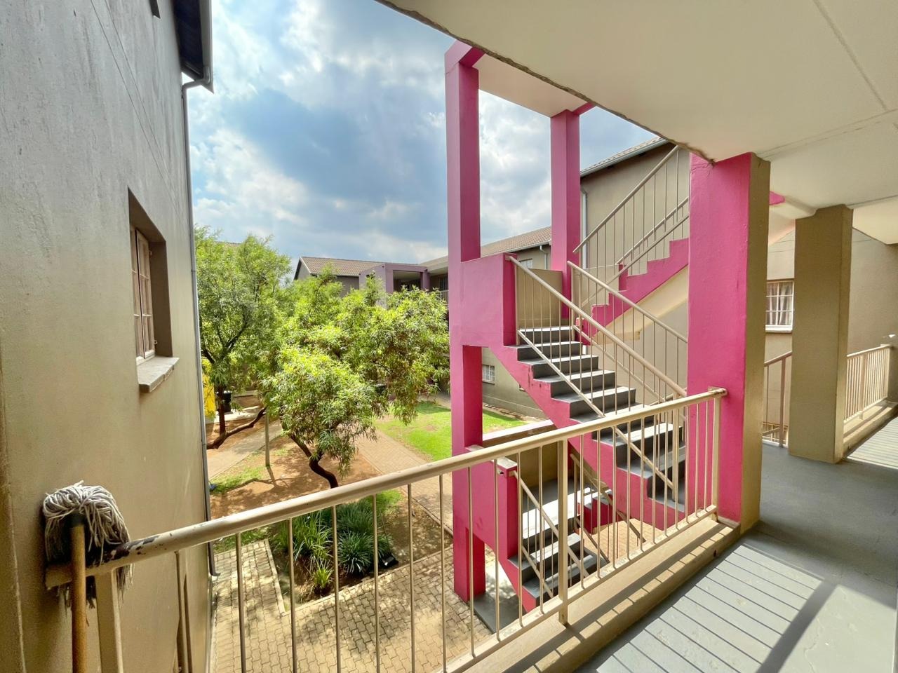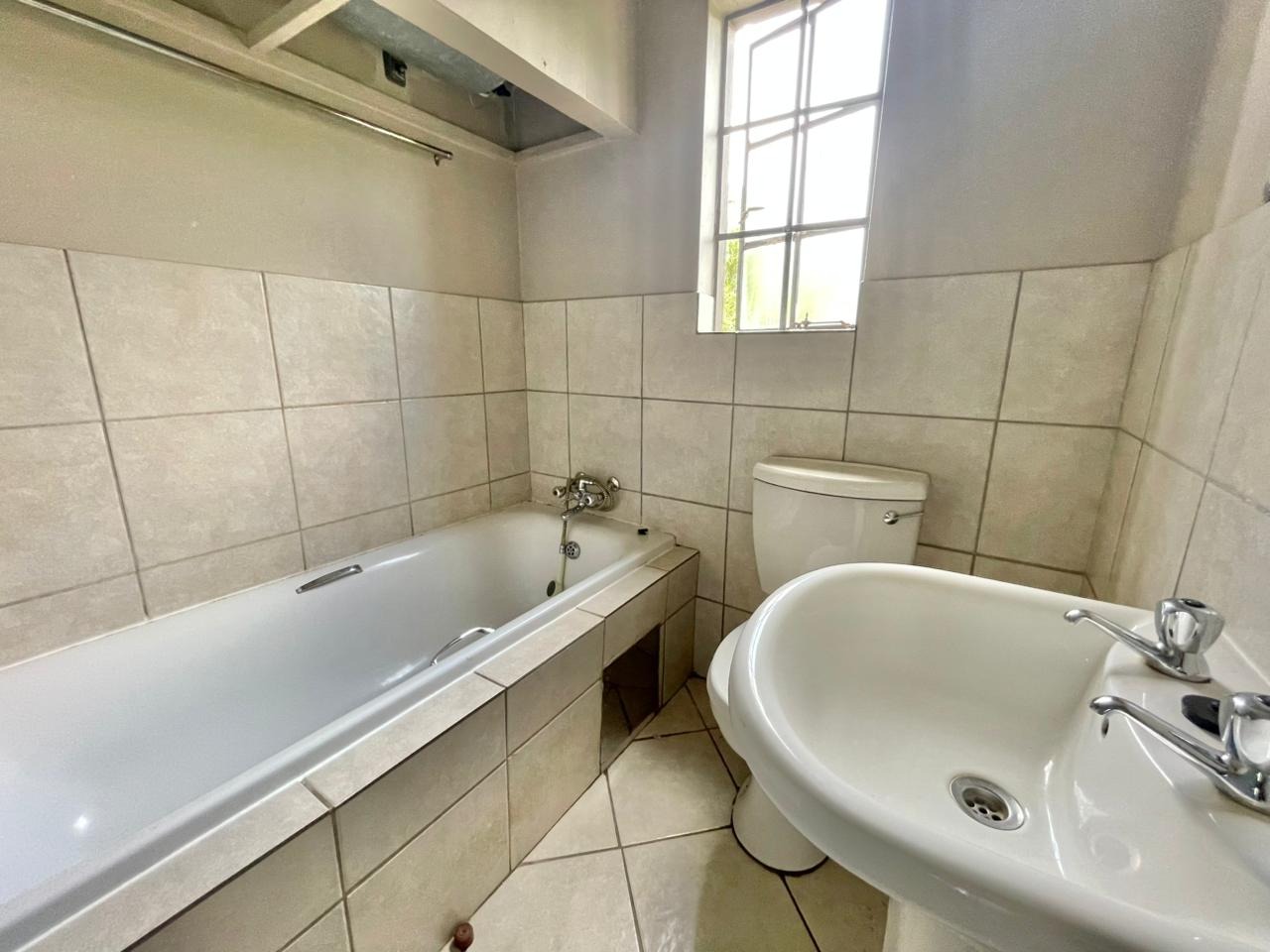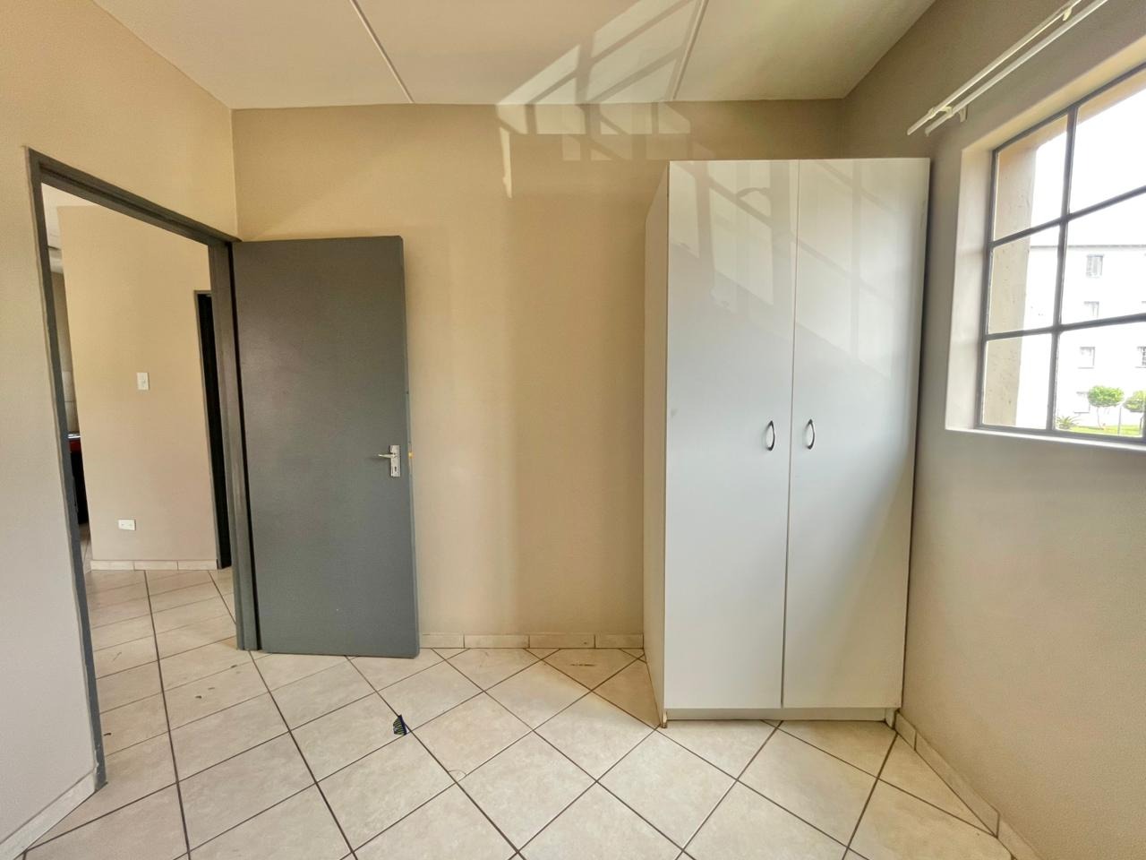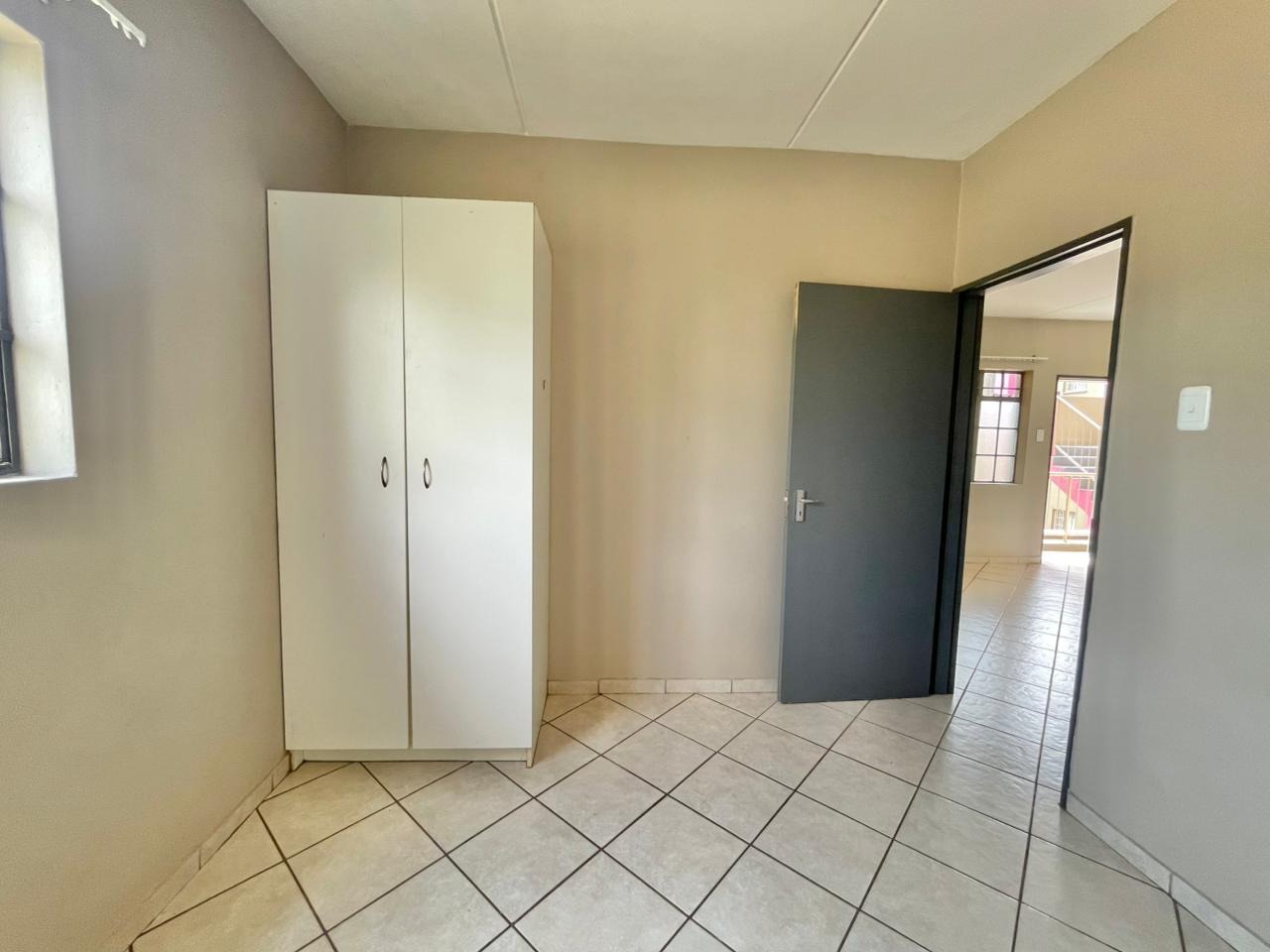 Discover this compact and functional 2-bedroom apartment, ideally situated within a secure complex in the suburban area of Jabulani, Soweto. The property features a modern grey/beige exterior complemented by a distinctive pink central stairwell, adding a unique touch to the building's aesthetic. Paved walkways and mature trees enhance the communal green spaces, offering a pleasant environment for residents. Inside, the 41 sqm apartment boasts an open-plan layout with durable tiled flooring and neutral-painted walls, providing a versatile canvas for personal customisation. The functional kitchen is equipped with a built-in hob, oven, and a double sink, benefiting from natural light through its window. This space seamlessly connects to the lounge, which can also serve as a family TV room, ensuring a practical flow for daily living. The apartment offers two comfortable bedrooms and a well-appointed bathroom, all maintained to be clean and move-in ready. Security is a key feature of this complex, which includes 24-hour security, a security post, access gates, electric fencing, burglar bars, and security gates, ensuring peace of mind. Additional amenities include a dedicated parking bay, a communal garden, and paved areas. Jabulani, located in Soweto, is a vibrant suburban neighbourhood offering convenient access to local amenities and transport links. Key Features: * 2 Bedrooms, 1 Bathroom * 41 sqm Floor Size * Open-plan Lounge and Kitchen * Tiled Flooring Throughout * Secure Complex with 24-Hour Security * Dedicated Parking Bay * Communal Garden and Paving * Wheelchair Friendly Access * Laundry and Storage Facilities