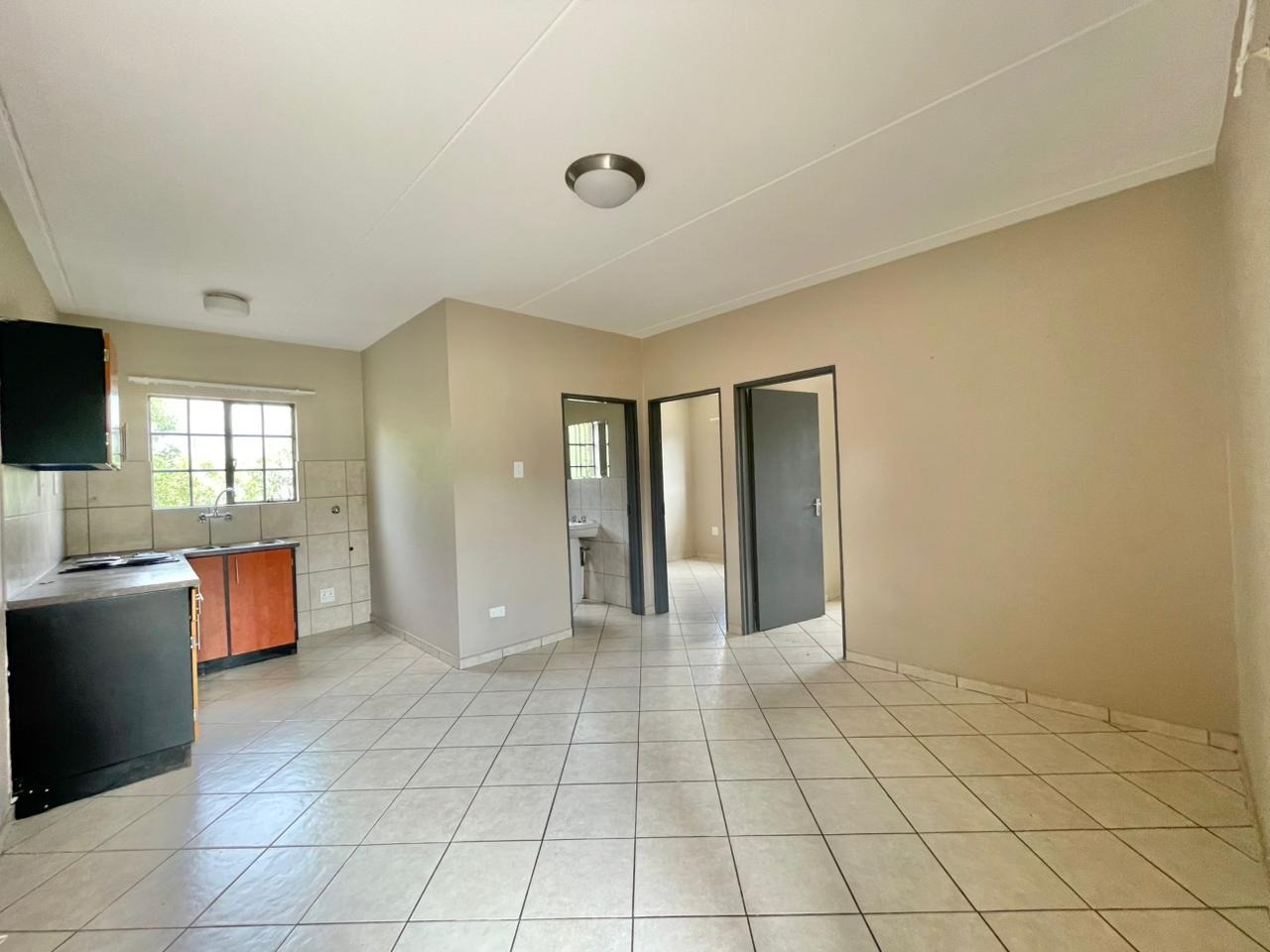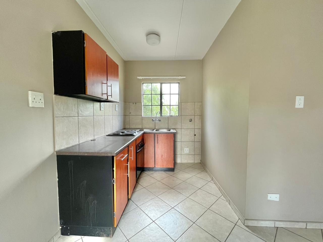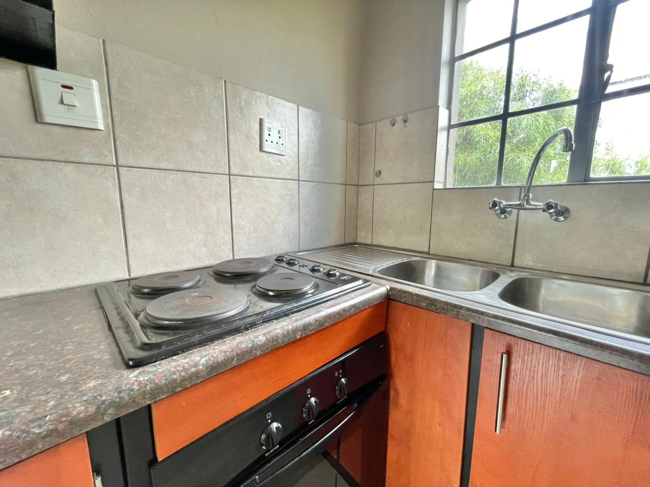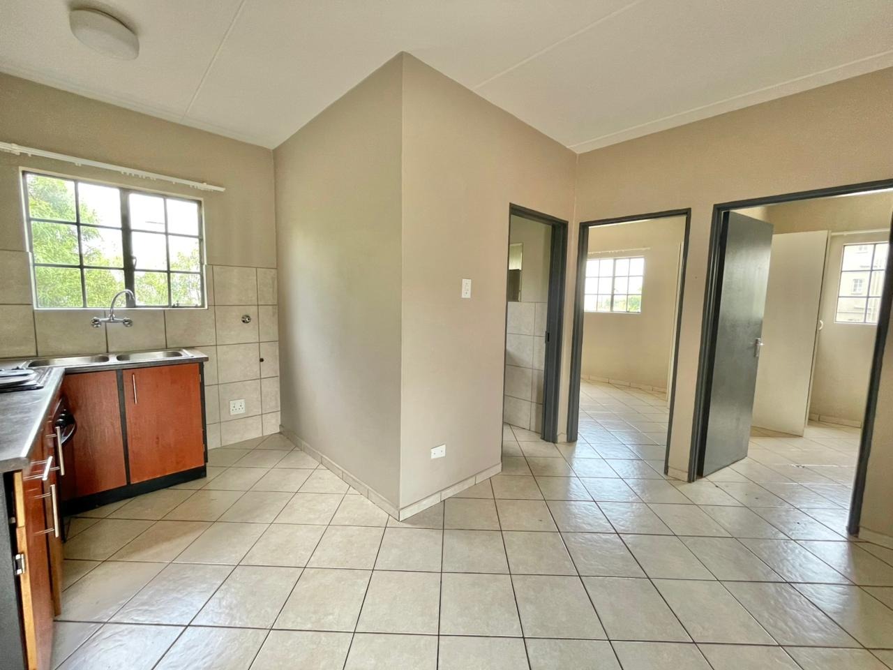 Discover this compact and functional 2-bedroom apartment, ideally situated within a secure complex in the suburban area of Jabulani, Soweto. The property features a modern grey/beige exterior complemented by a distinctive pink central stairwell, adding a unique touch to the building's aesthetic. Paved walkways and mature trees enhance the communal green spaces, offering a pleasant environment for residents. Inside, the 41 sqm apartment boasts an open-plan layout with durable tiled flooring and neutral-painted walls, providing a versatile canvas for personal customisation. The functional kitchen is equipped with a built-in hob, oven, and a double sink, benefiting from natural light through its window. This space seamlessly connects to the lounge, which can also serve as a family TV room, ensuring a practical flow for daily living. The apartment offers two comfortable bedrooms and a well-appointed bathroom, all maintained to be clean and move-in ready. Security is a key feature of this complex, which includes 24-hour security, a security post, access gates, electric fencing, burglar bars, and security gates, ensuring peace of mind. Additional amenities include a dedicated parking bay, a communal garden, and paved areas. Jabulani, located in Soweto, is a vibrant suburban neighbourhood offering convenient access to local amenities and transport links. Key Features: * 2 Bedrooms, 1 Bathroom * 41 sqm Floor Size * Open-plan Lounge and Kitchen * Tiled Flooring Throughout * Secure Complex with 24-Hour Security * Dedicated Parking Bay * Communal Garden and Paving * Wheelchair Friendly Access * Laundry and Storage Facilities