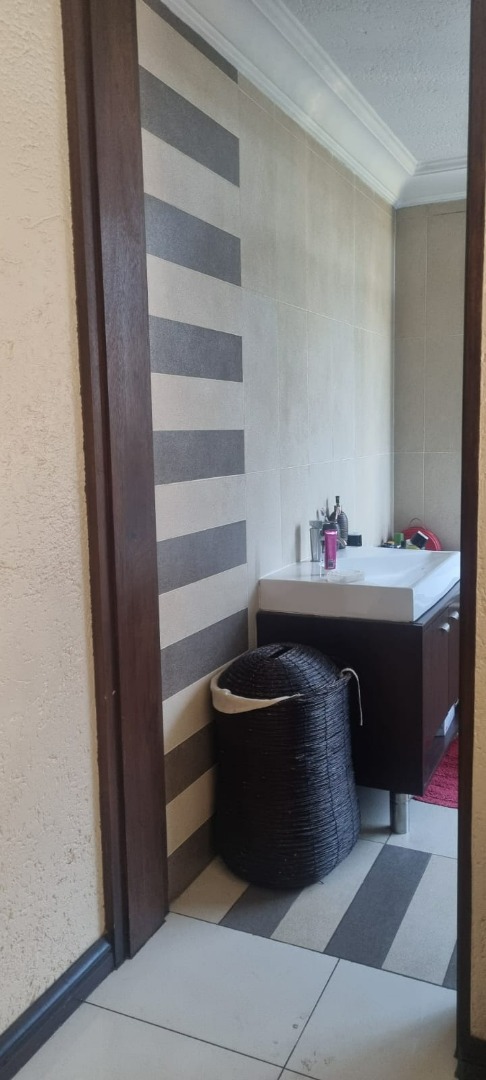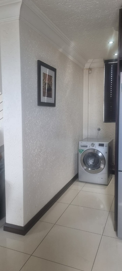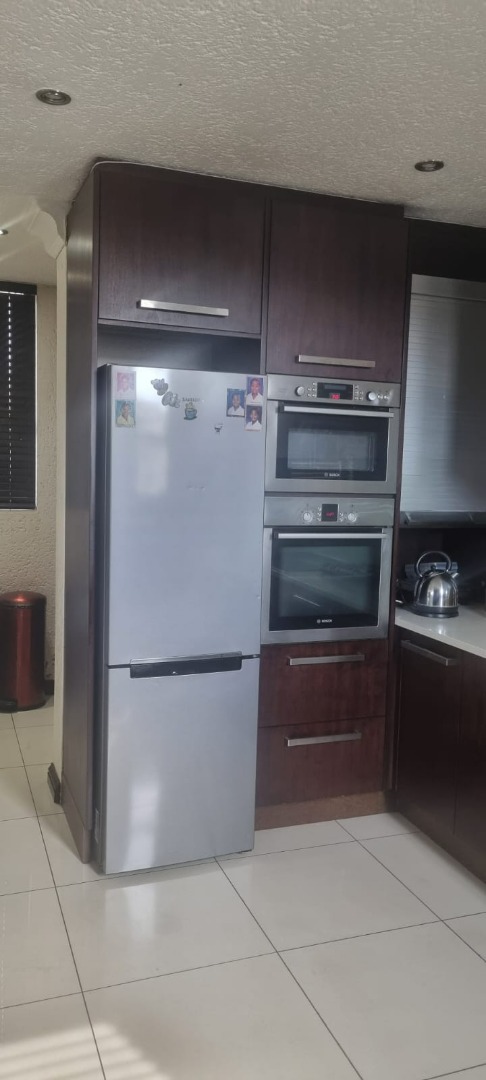 Discover this modern residential sale property in Meadowlands West, Soweto, offering a blend of contemporary design and robust security. The property boasts an attractive earth-toned exterior with a prominent wooden garage door, enhancing its kerb appeal. Security is paramount, featuring electric fencing, security cameras, and a sturdy gated pedestrian entrance, ensuring peace of mind. An inviting upper-level balcony with sleek stainless steel railings provides an ideal outdoor retreat. Step inside to an open-plan layout designed for modern living, characterized by glossy tiled flooring and recessed lighting throughout. The versatile living spaces are bathed in natural light from large windows fitted with contemporary wooden blinds. The heart of the home is a stylish, two-tone kitchen, showcasing dark lower and white upper cabinetry, a sleek glass backsplash, integrated hob, built-in double ovens, and an integrated refrigerator. This residence comprises three comfortable bedrooms and two well-appointed bathrooms, including a private ensuite. Interior design incorporates textured walls and crown molding. Flexible zones accommodate various needs, such as a dedicated dining area and a versatile space currently configured with a home gym setup. Outdoor amenities include a private garden and paving, providing low-maintenance exterior spaces. Two garages offer secure parking and additional storage. Situated in the vibrant suburban area of Meadowlands West, Soweto, this pet-friendly home provides a convenient and accessible location for families and individuals alike. Key Features: * 3 Bedrooms, 2 Bathrooms (1 Ensuite) * Modern Two-Tone Kitchen with Integrated Appliances * Open-Plan Living and Dining Areas * Glossy Tiled Flooring and Recessed Lighting * Upper-Level Balcony with Stainless Steel Railings * Secure Property with Electric Fencing and Cameras * Two Garages * Pet-Friendly with Garden and Paving