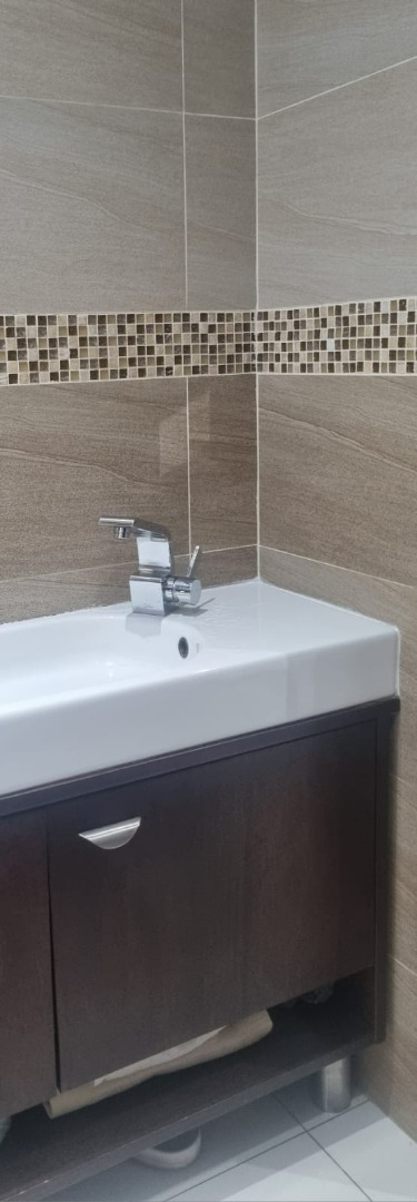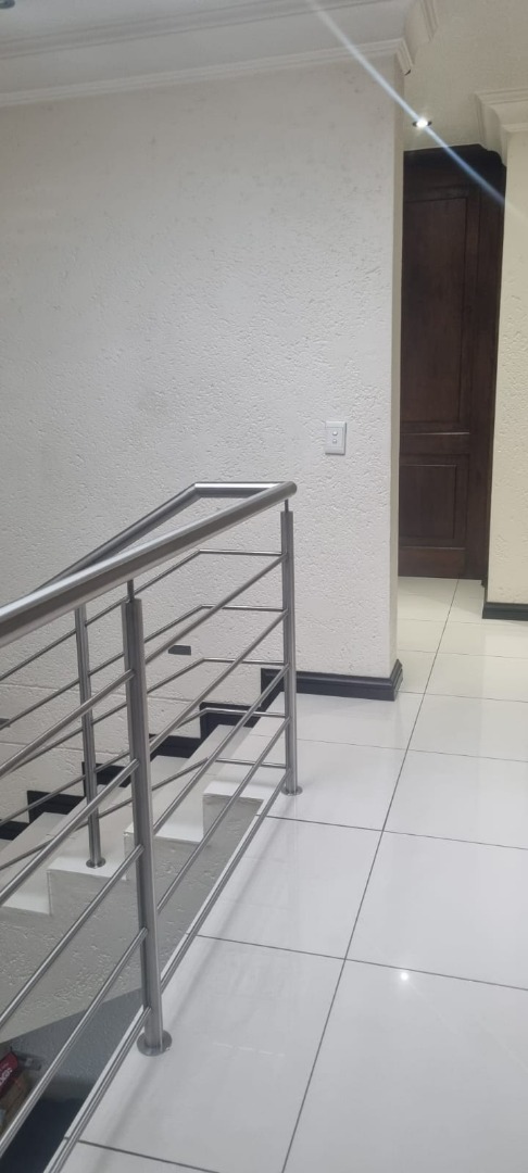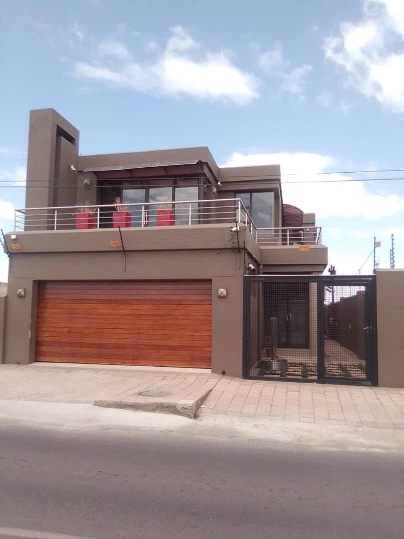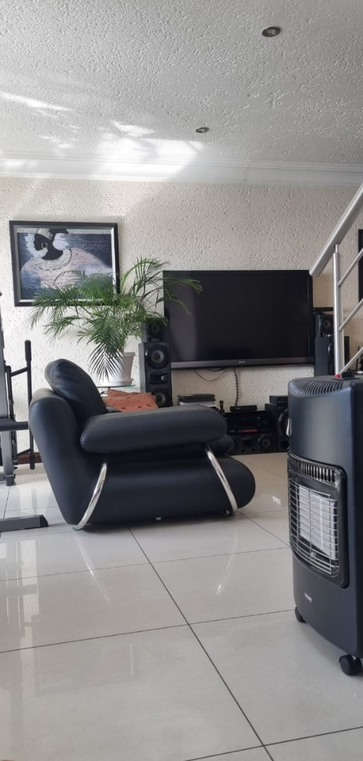 Discover this modern residential sale property in Meadowlands West, Soweto, offering a blend of contemporary design and robust security. The property boasts an attractive earth-toned exterior with a prominent wooden garage door, enhancing its kerb appeal. Security is paramount, featuring electric fencing, security cameras, and a sturdy gated pedestrian entrance, ensuring peace of mind. An inviting upper-level balcony with sleek stainless steel railings provides an ideal outdoor retreat. Step inside to an open-plan layout designed for modern living, characterized by glossy tiled flooring and recessed lighting throughout. The versatile living spaces are bathed in natural light from large windows fitted with contemporary wooden blinds. The heart of the home is a stylish, two-tone kitchen, showcasing dark lower and white upper cabinetry, a sleek glass backsplash, integrated hob, built-in double ovens, and an integrated refrigerator. This residence comprises three comfortable bedrooms and two well-appointed bathrooms, including a private ensuite. Interior design incorporates textured walls and crown molding. Flexible zones accommodate various needs, such as a dedicated dining area and a versatile space currently configured with a home gym setup. Outdoor amenities include a private garden and paving, providing low-maintenance exterior spaces. Two garages offer secure parking and additional storage. Situated in the vibrant suburban area of Meadowlands West, Soweto, this pet-friendly home provides a convenient and accessible location for families and individuals alike. Key Features: * 3 Bedrooms, 2 Bathrooms (1 Ensuite) * Modern Two-Tone Kitchen with Integrated Appliances * Open-Plan Living and Dining Areas * Glossy Tiled Flooring and Recessed Lighting * Upper-Level Balcony with Stainless Steel Railings * Secure Property with Electric Fencing and Cameras * Two Garages * Pet-Friendly with Garden and Paving