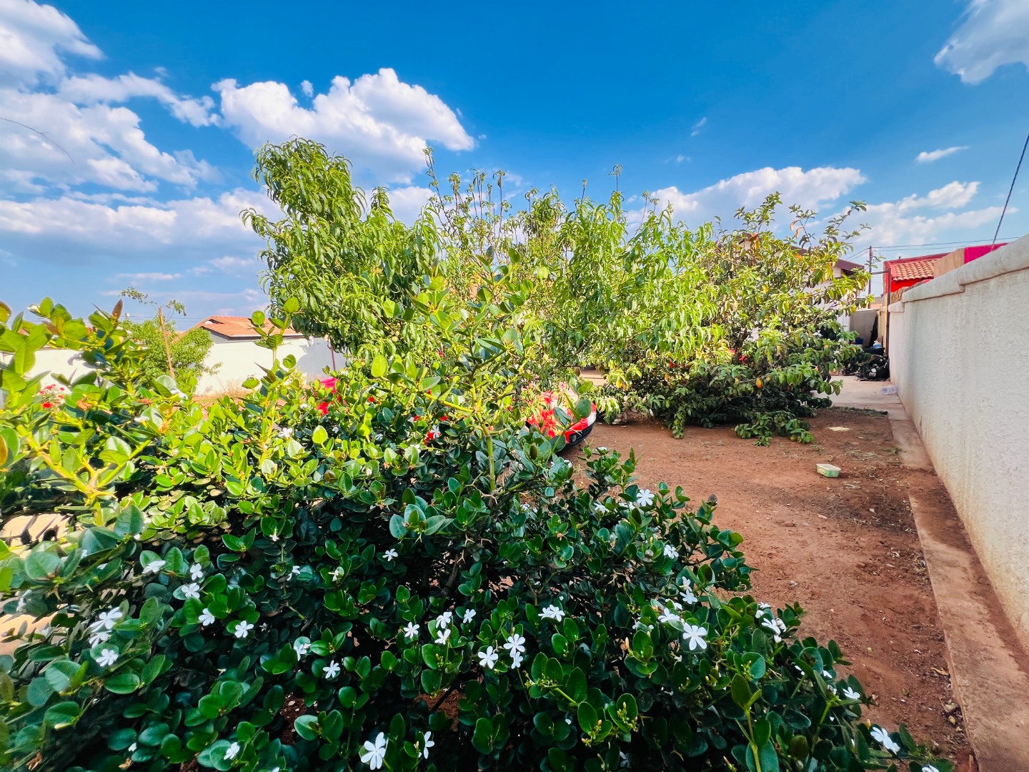 The expansive yard, though currently unlandscaped, provides a blank canvas for custom gardening or further development, with existing paving ensuring practical access. The presence of staff quarters and additional storage further enhances the property's functionality. Burglar bars contribute to the home's security, ensuring peace of mind for residents.