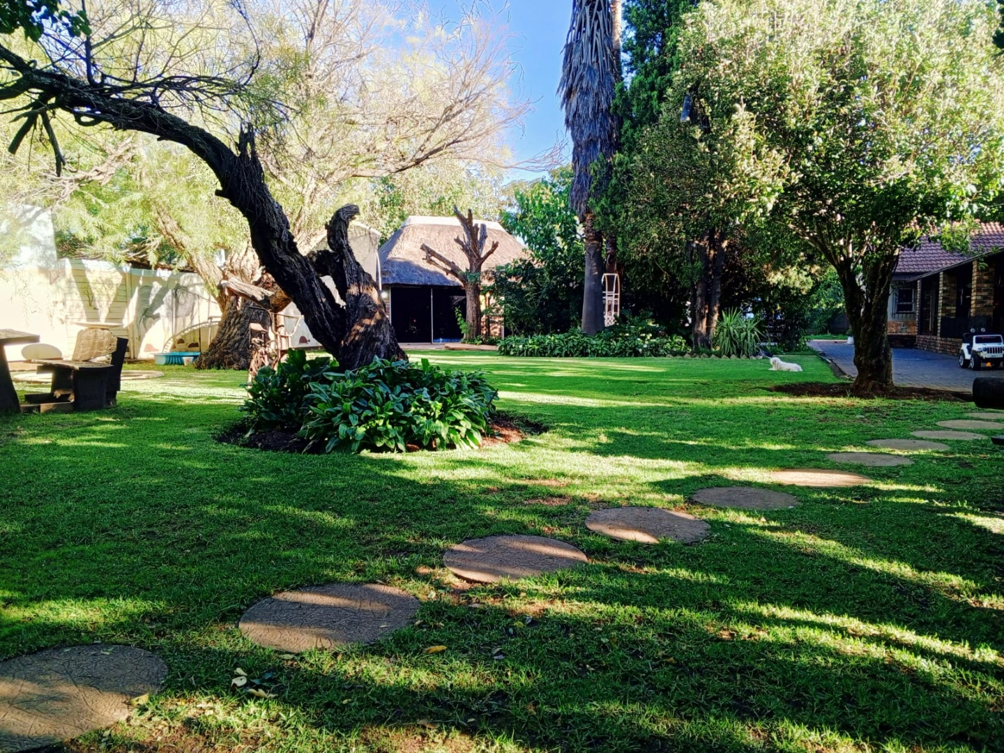 Nestled in Mullerstuine, Vanderbijlpark, this expansive lifestyle farm offers tranquil country living on a 2.50-hectare erf, accessible to city amenities. The property presents distinctive kerb appeal with a charming thatched-roof building and a traditional tiled-roof residence. Mature trees and paved areas define the picturesque setting, while a covered patio and large garden provide ample outdoor space for various activities. Inside, the residence features a lounge, dining room, and a functional kitchen. With six bedrooms and three bathrooms, including a guest toilet, it accommodates a large family or offers guest lodging. Built-in cupboards, tiled flooring, and a fireplace add character, with one room boasting a private balcony overlooking lush greenery. Outdoor living is enhanced by the extensive garden, a thatch-roofed lapa perfect for entertaining, and ample paving. Two garages and eight additional parking spaces ensure convenience. Practical amenities include staff quarters and a separate flatlet for versatile living. Security features like burglar bars on windows provide peace of mind, and a borehole contributes to water self-sufficiency. Key Features: * 6 Bedrooms, 3 Bathrooms * 2.50 Hectare Lifestyle Farm * 2 Garages, 8 Parking Spaces * Thatch-Roofed Lapa & Patio * Staff Quarters & Flatlet * Borehole & Fireplace