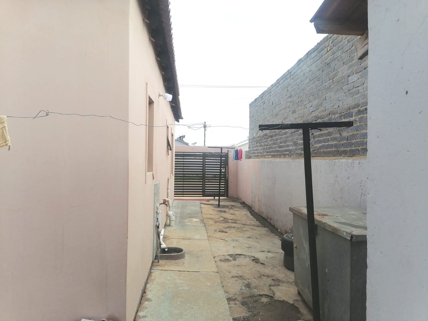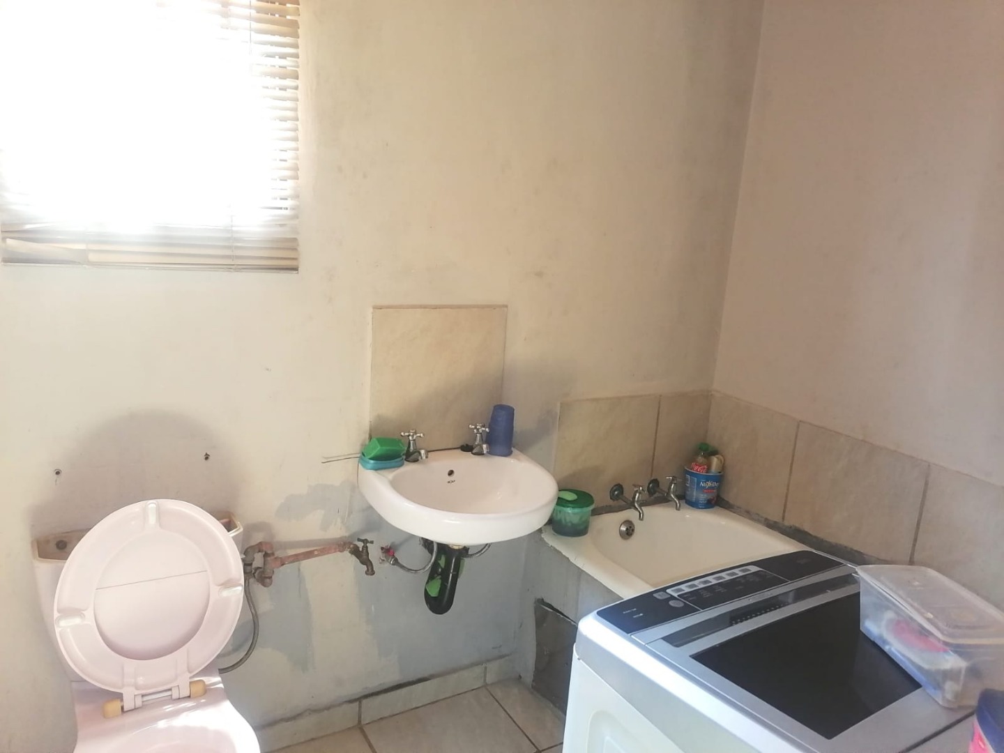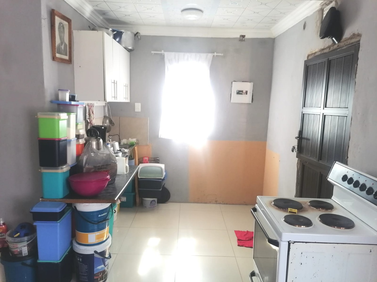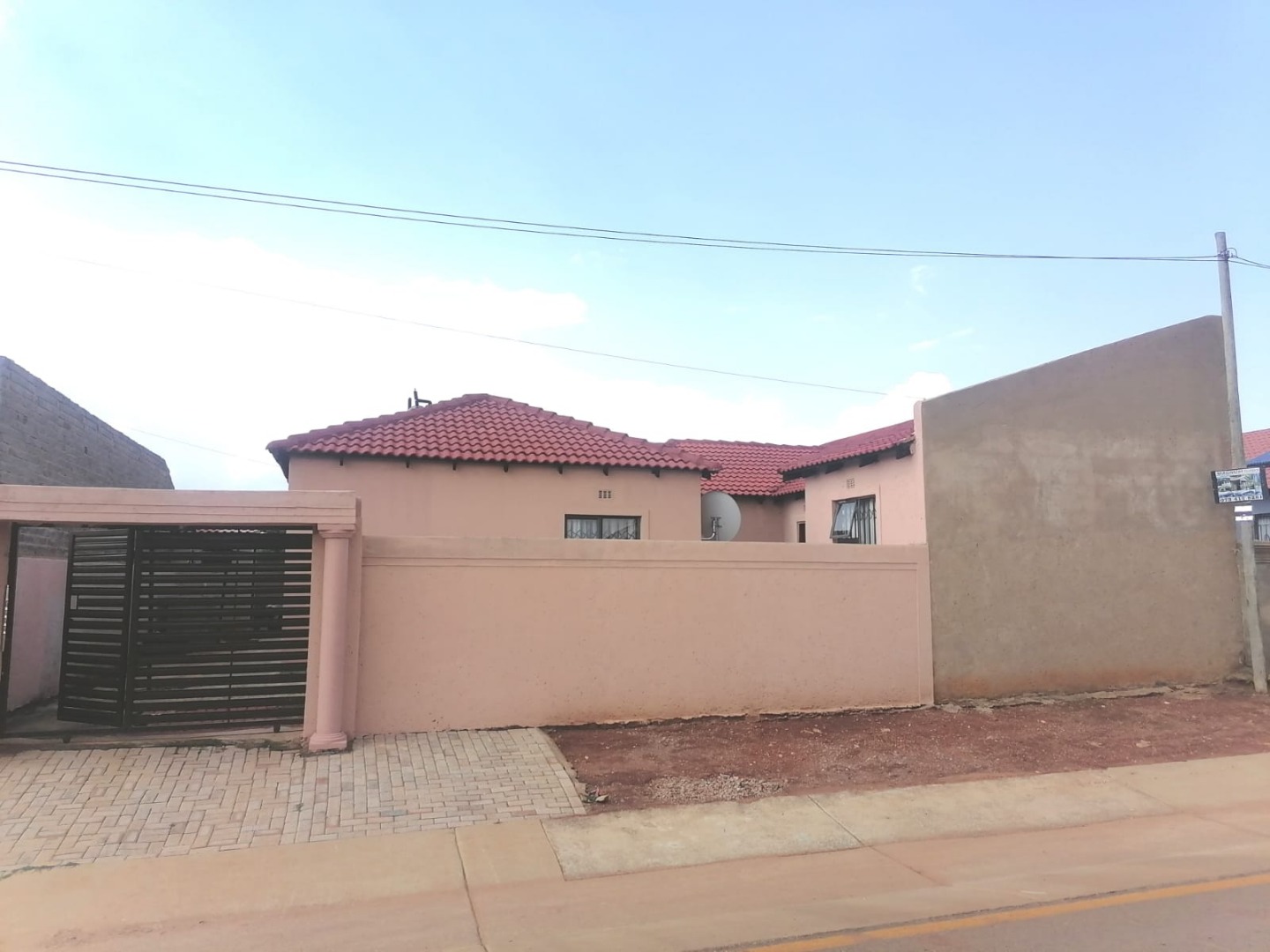 The open-plan kitchen flows seamlessly into the lounge, creating a spacious and inviting atmosphere. The property is equipped with aluminum windows throughout, enhancing both security and aesthetics. Additionally, all windows are fitted with rollable aluminum burglar bars for extra safety.