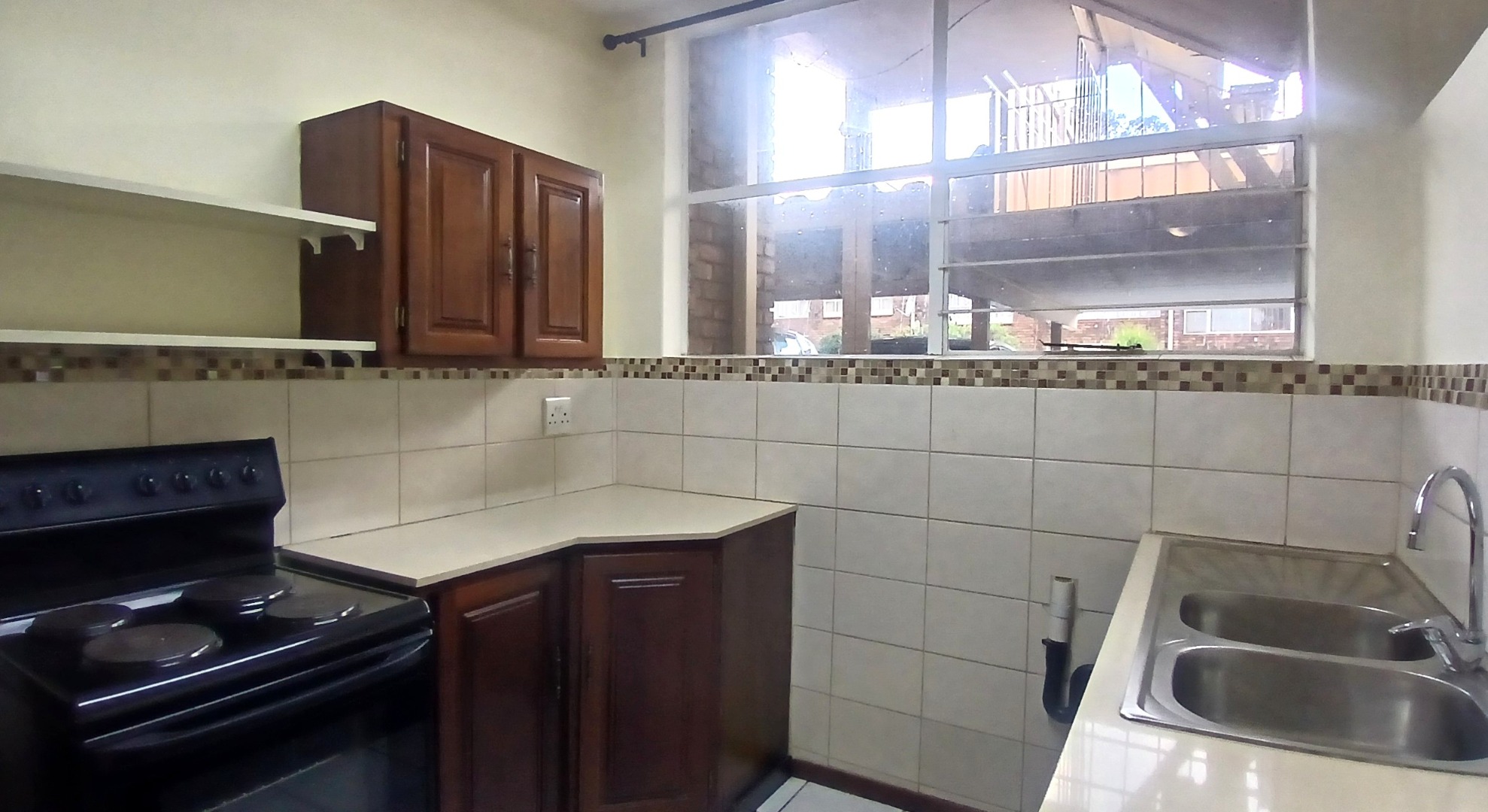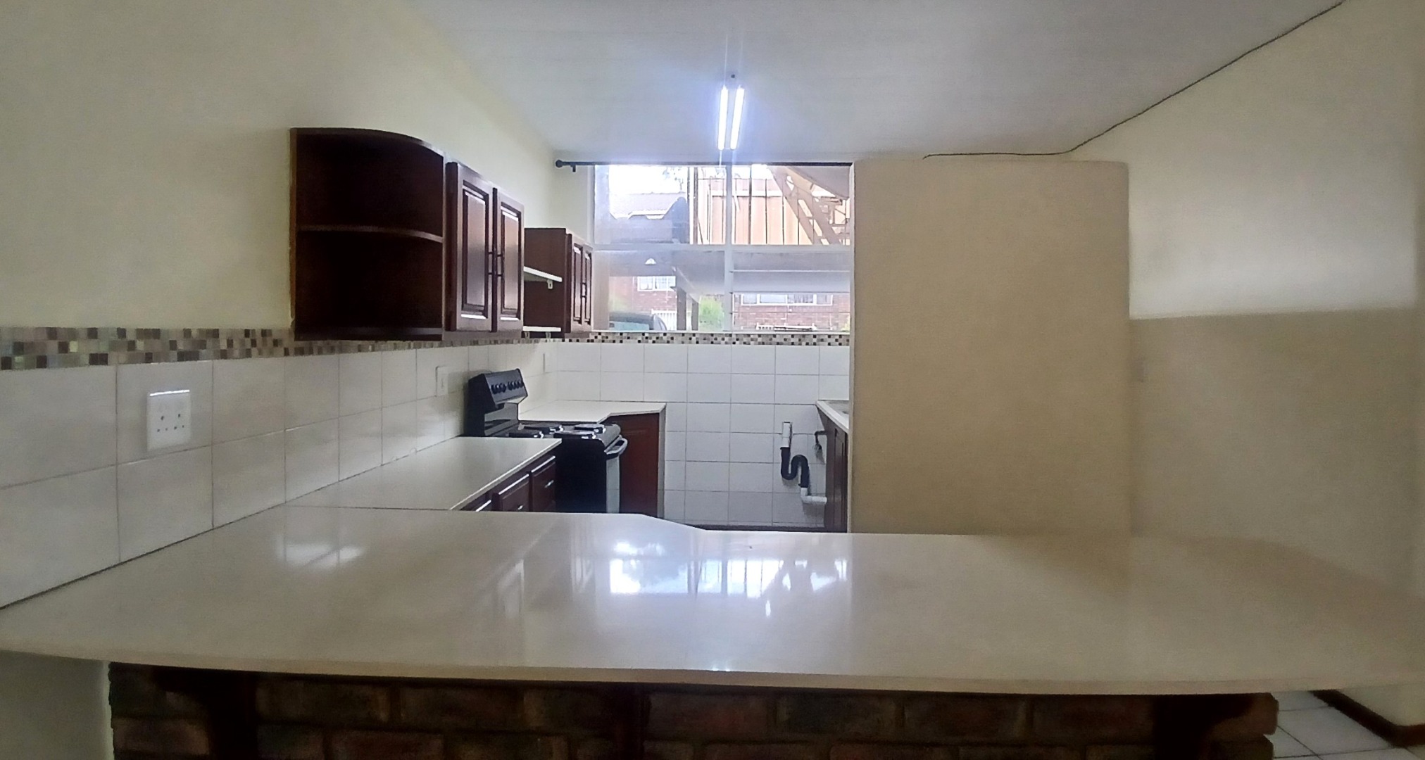 This comfortable ground-floor apartment situated in Brackendowns, Alberton offers modern living in a well-maintained complex with communal gardens. The home features an open-plan kitchen fitted with wooden cupboards and granite countertops, flowing seamlessly into the living area. There are two bedrooms, both equipped with built-in cupboards, and a full bathroom offering both a bath and shower.