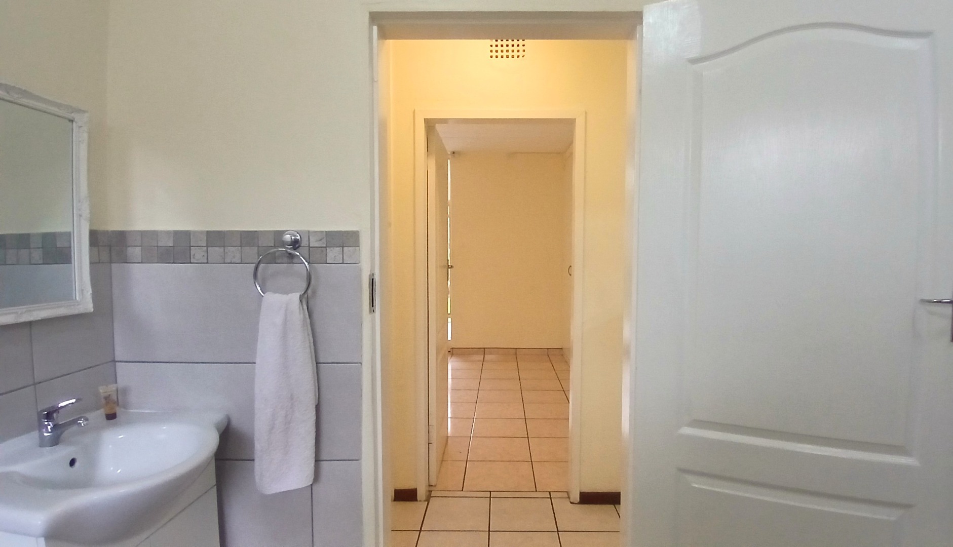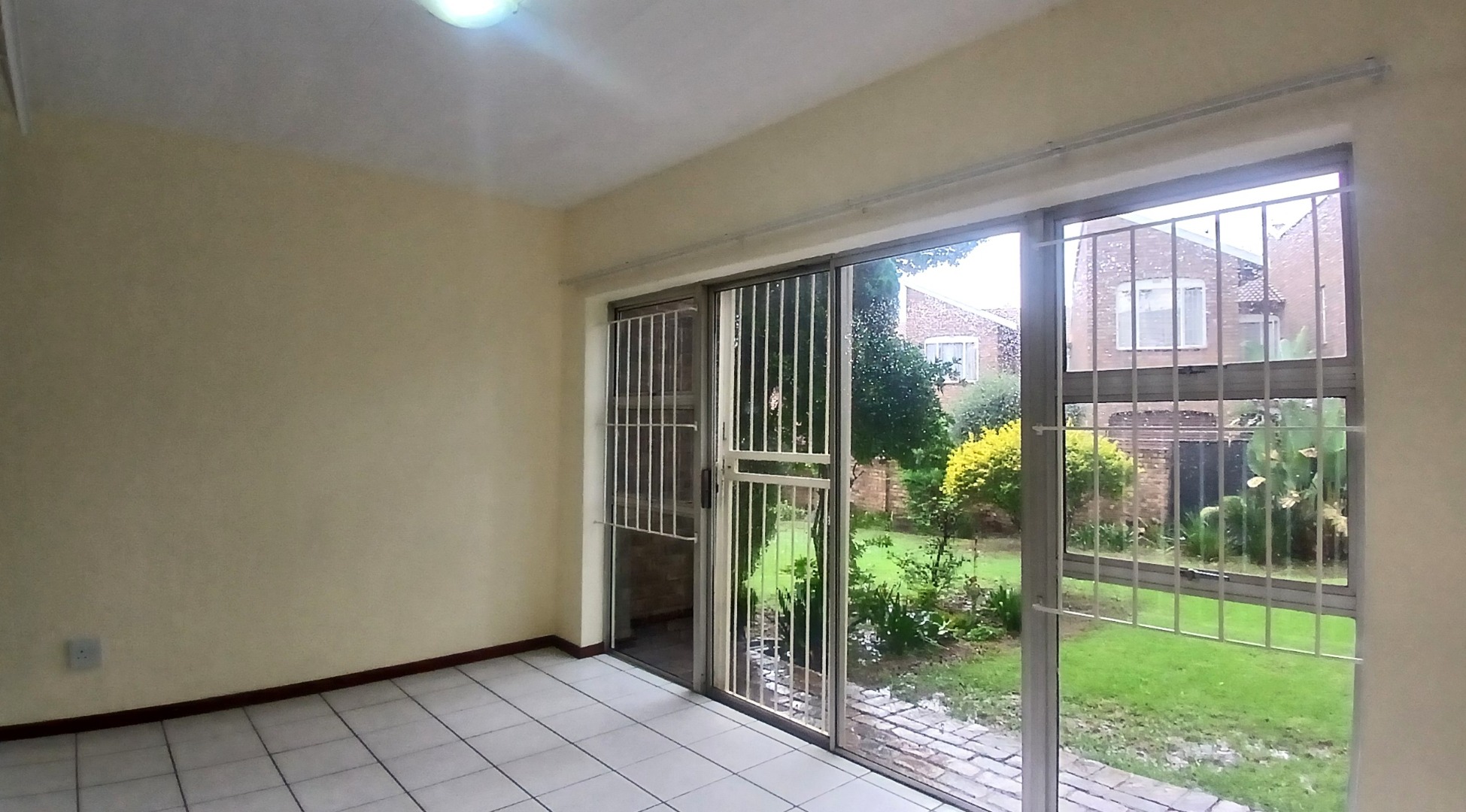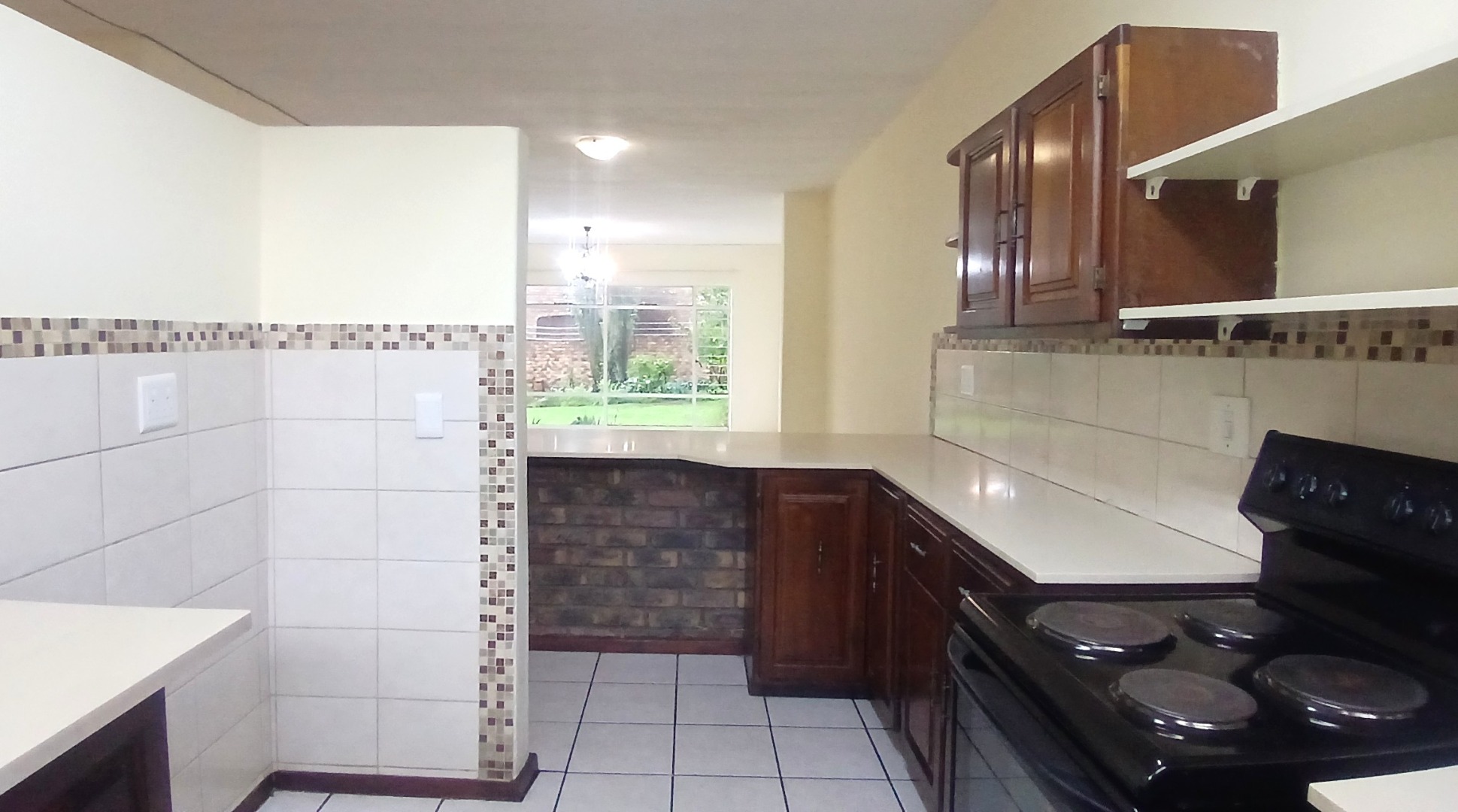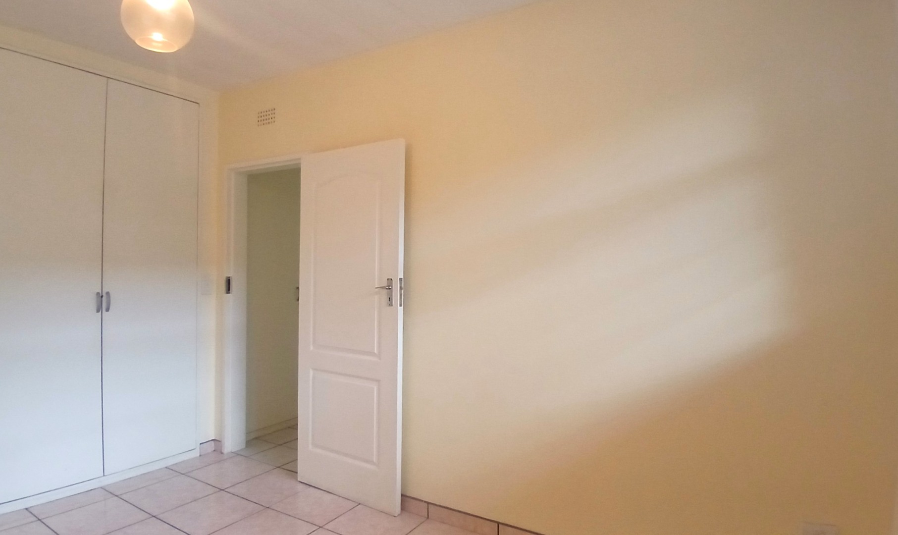 This comfortable ground-floor apartment situated in Brackendowns, Alberton offers modern living in a well-maintained complex with communal gardens. The home features an open-plan kitchen fitted with wooden cupboards and granite countertops, flowing seamlessly into the living area. There are two bedrooms, both equipped with built-in cupboards, and a full bathroom offering both a bath and shower.