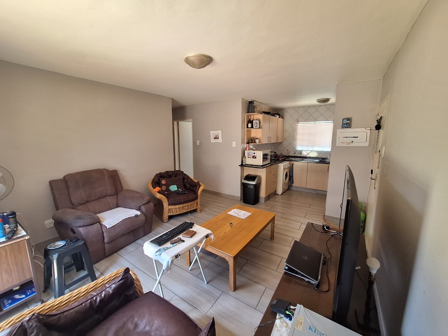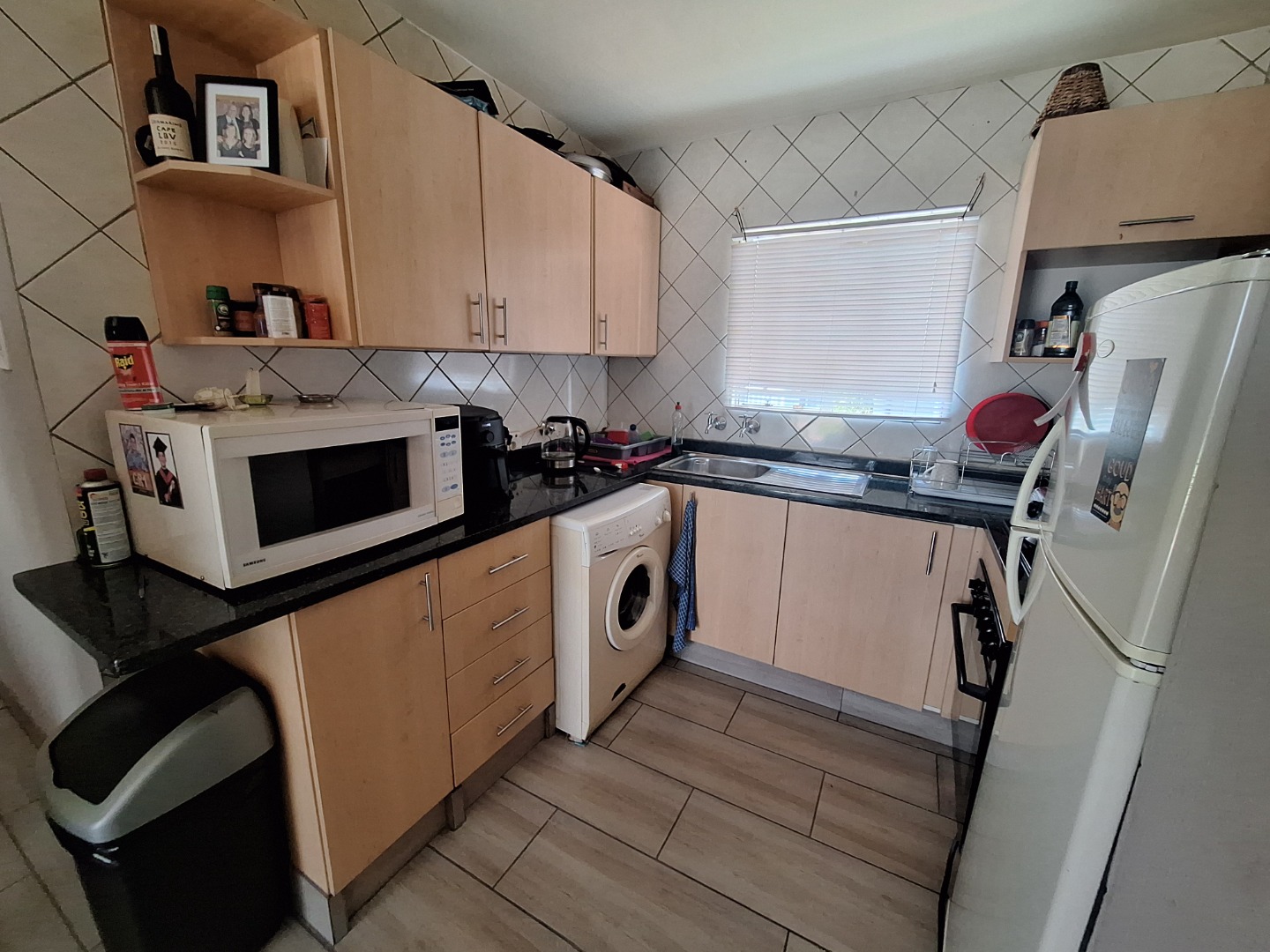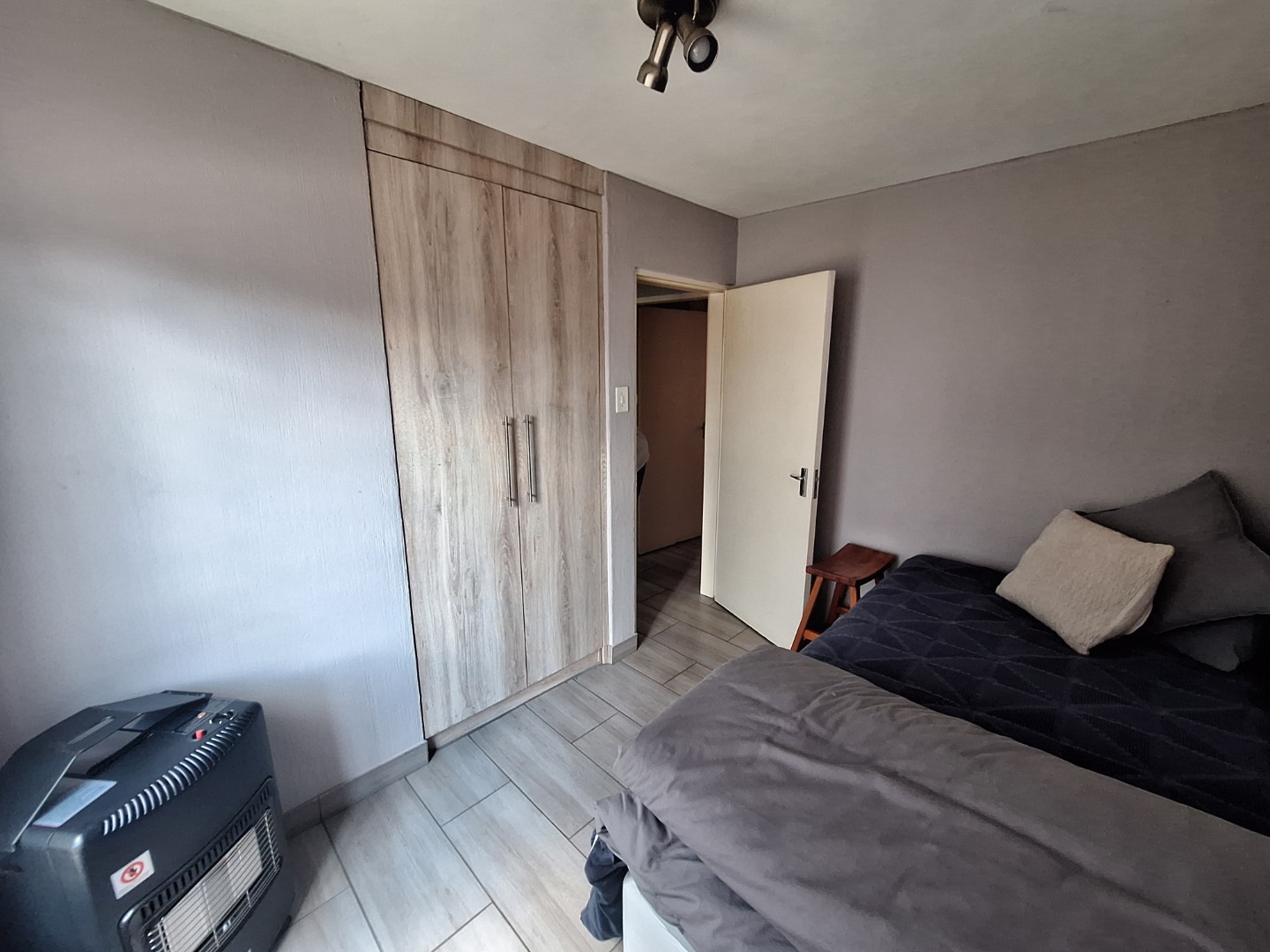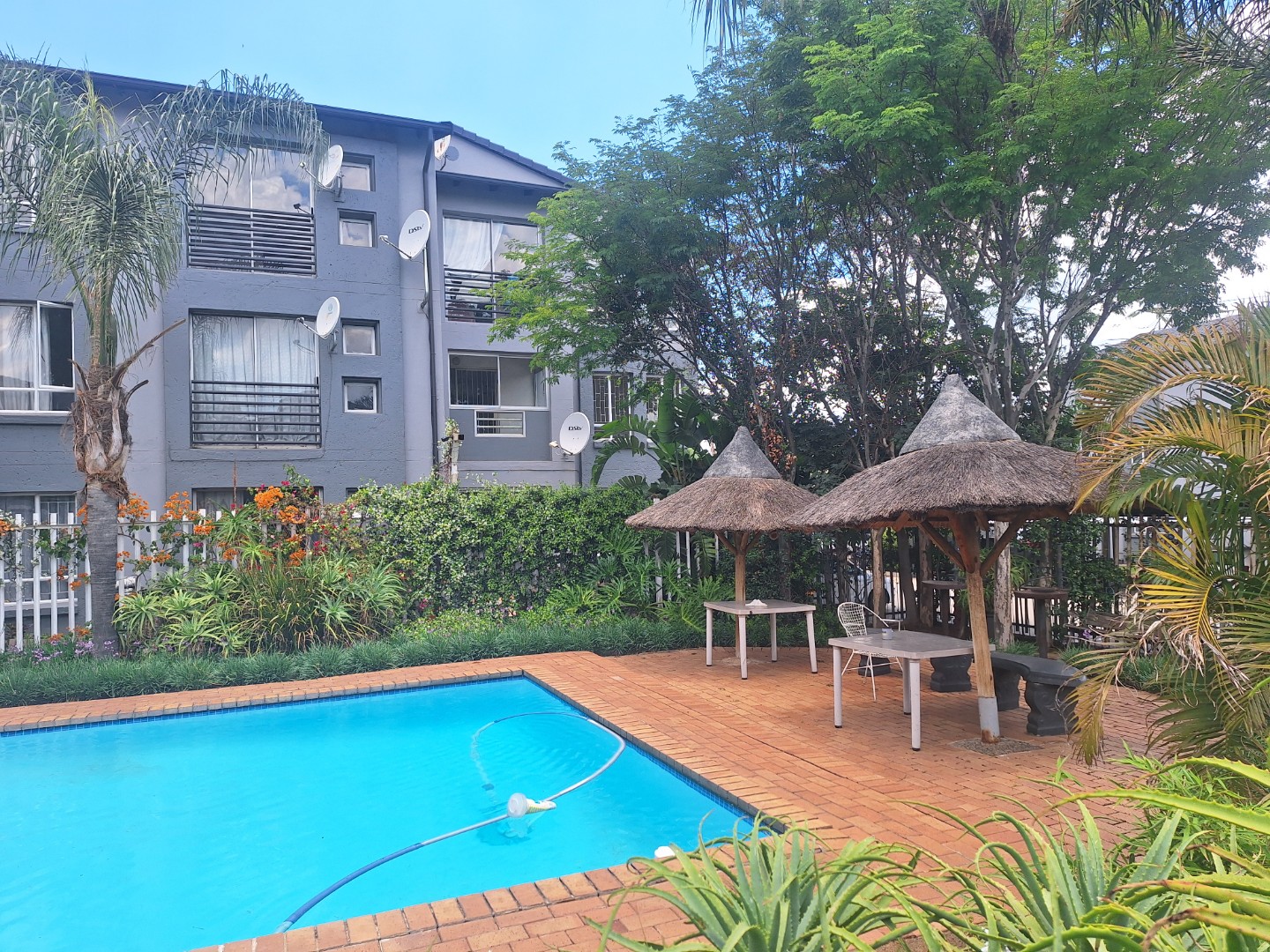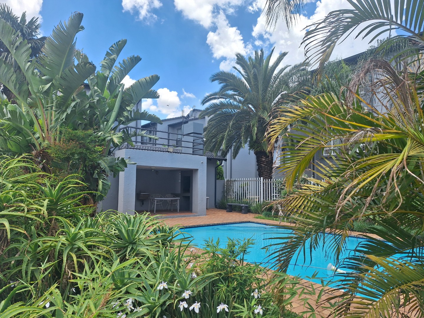 The complex is located in a quiet cul-de-sac and offers 24-hour security, as well as a communal swimming pool and braai facilities. Water is included in the rental, and the unit has a prepaid electricity meter.