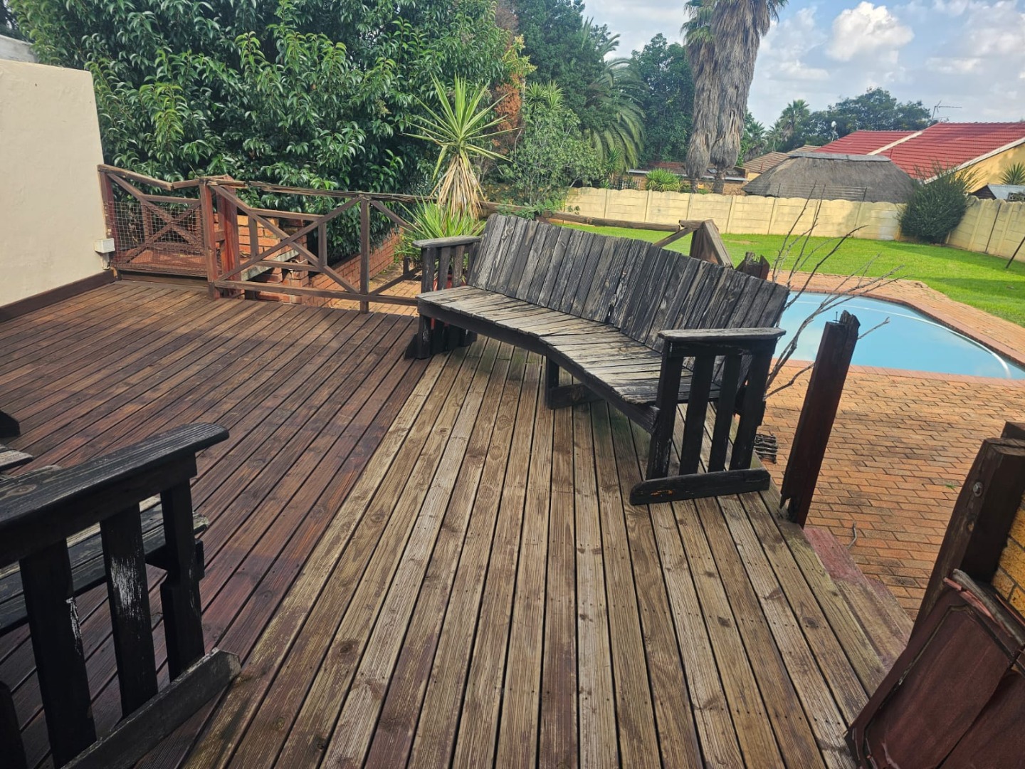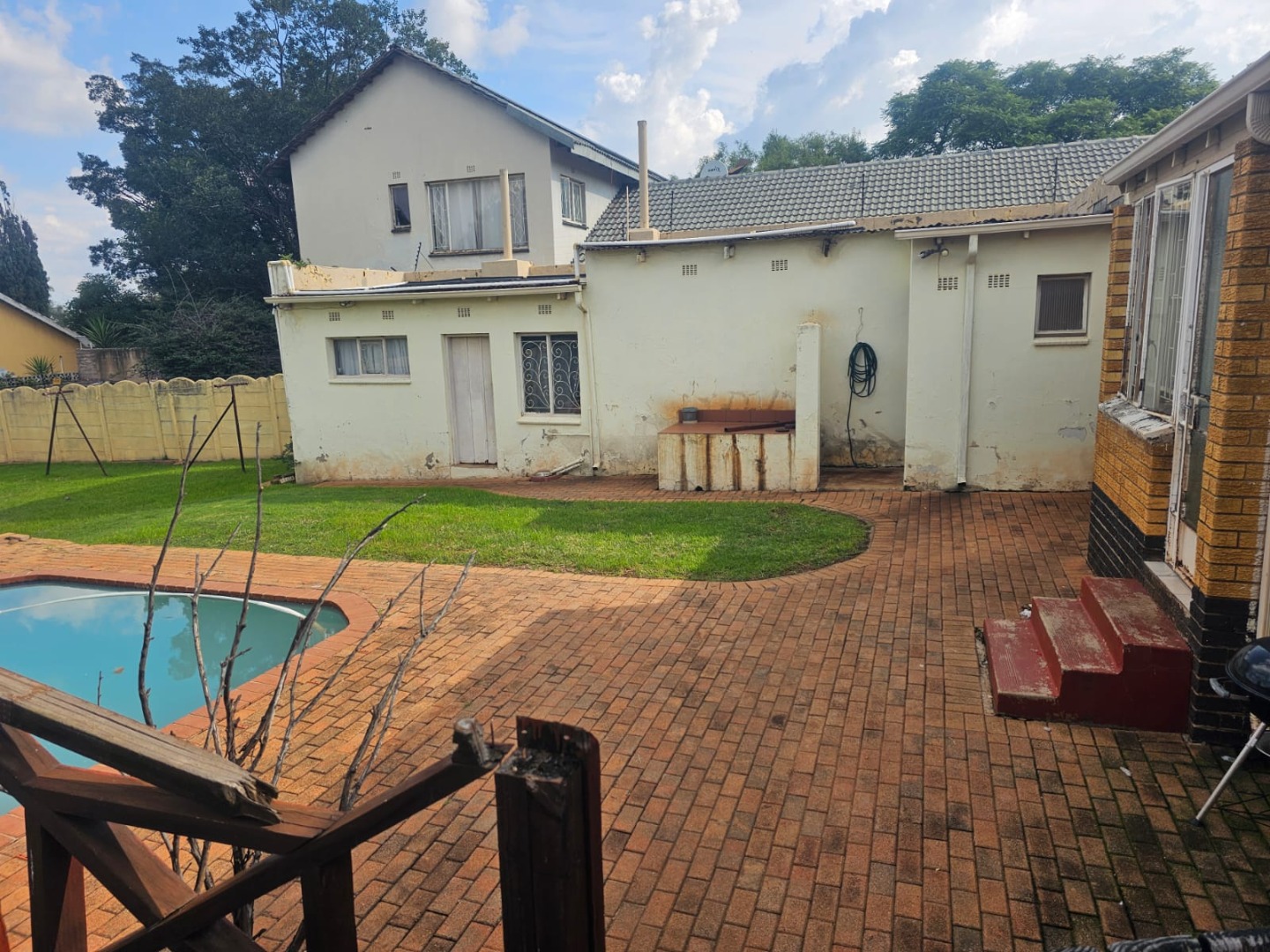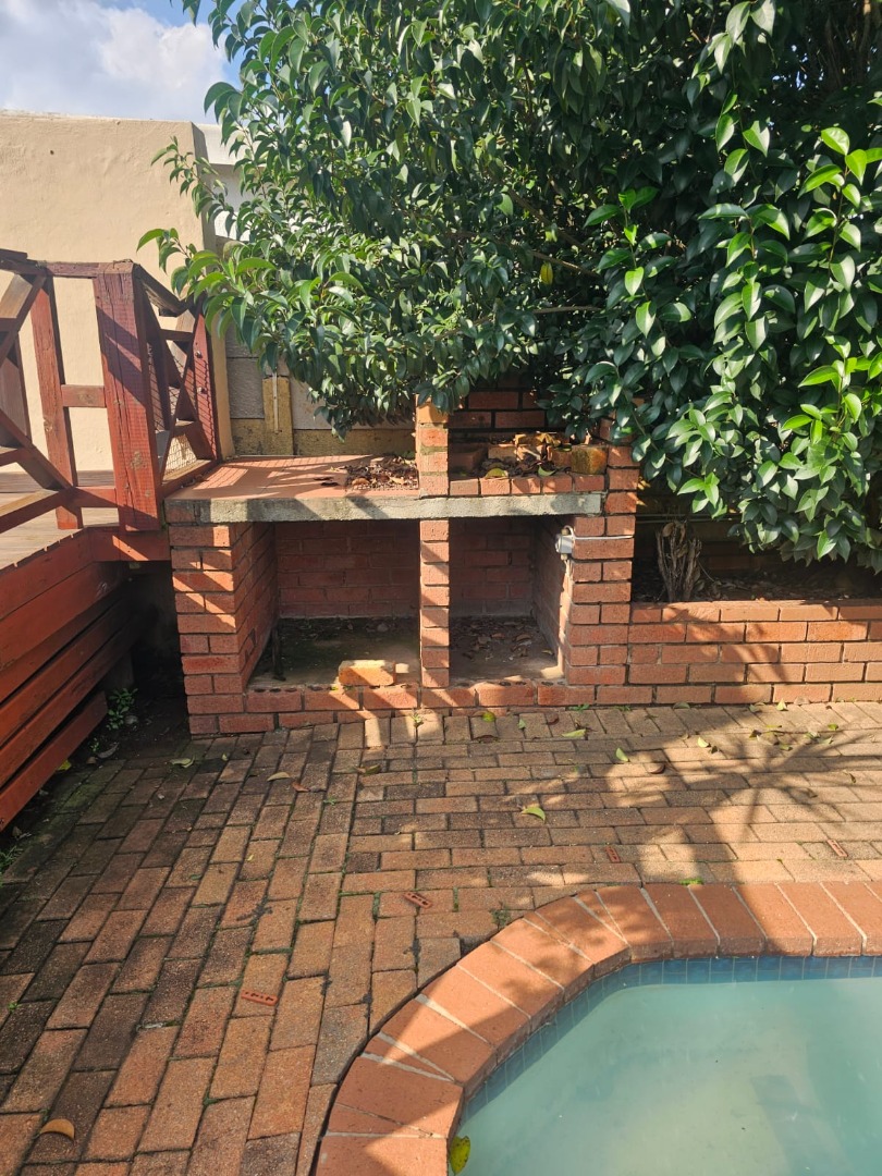It features a welcoming lounge and dining room, creating a warm and inviting atmosphere. The large garden and swimming pool provide the perfect setting for relaxation and outdoor entertainment, while the built-in braai area is ideal for hosting gatherings.