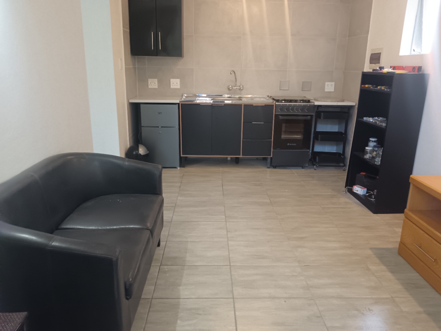 The apartment features a spacious bedroom with ample natural light, a neat bathroom, and an open-plan living area designed for easy living. The kitchen is fully equipped with a full gas stove, making cooking both efficient and cost-effective. A gas heater ensures warmth and comfort during colder months.