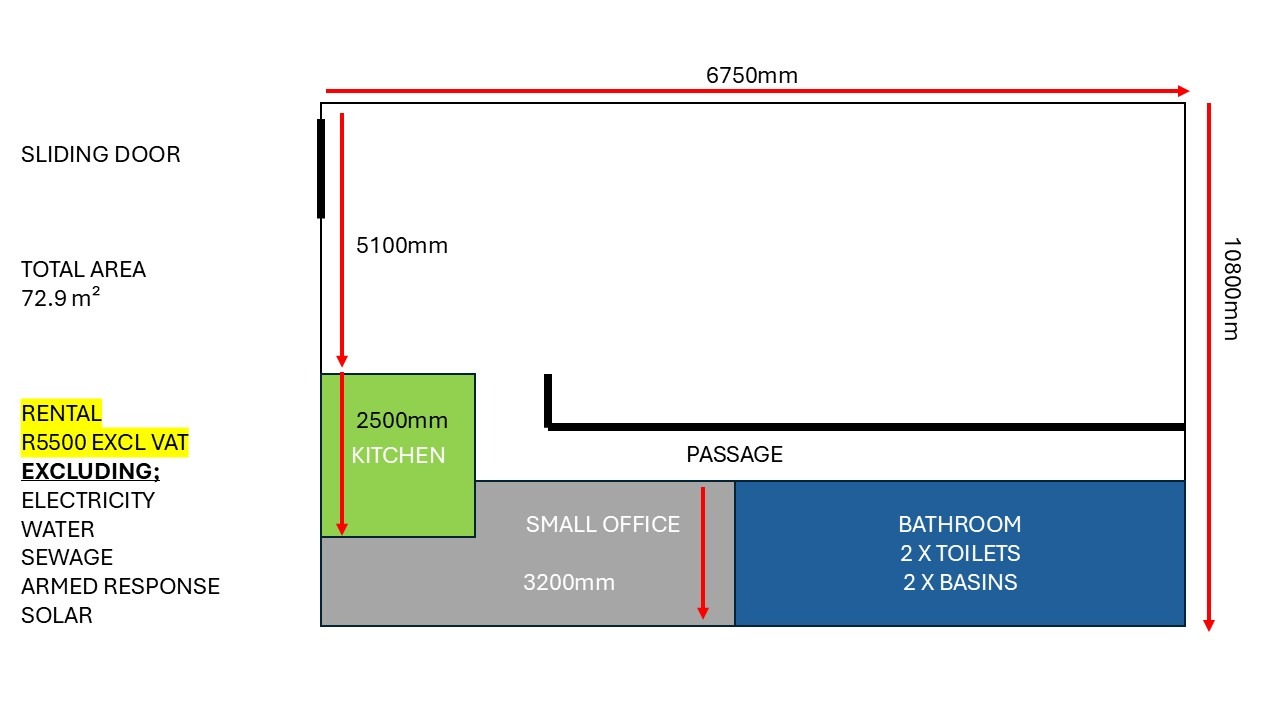 There are schematic drawings with sizes and prices should you want to only rent only part of the premises.