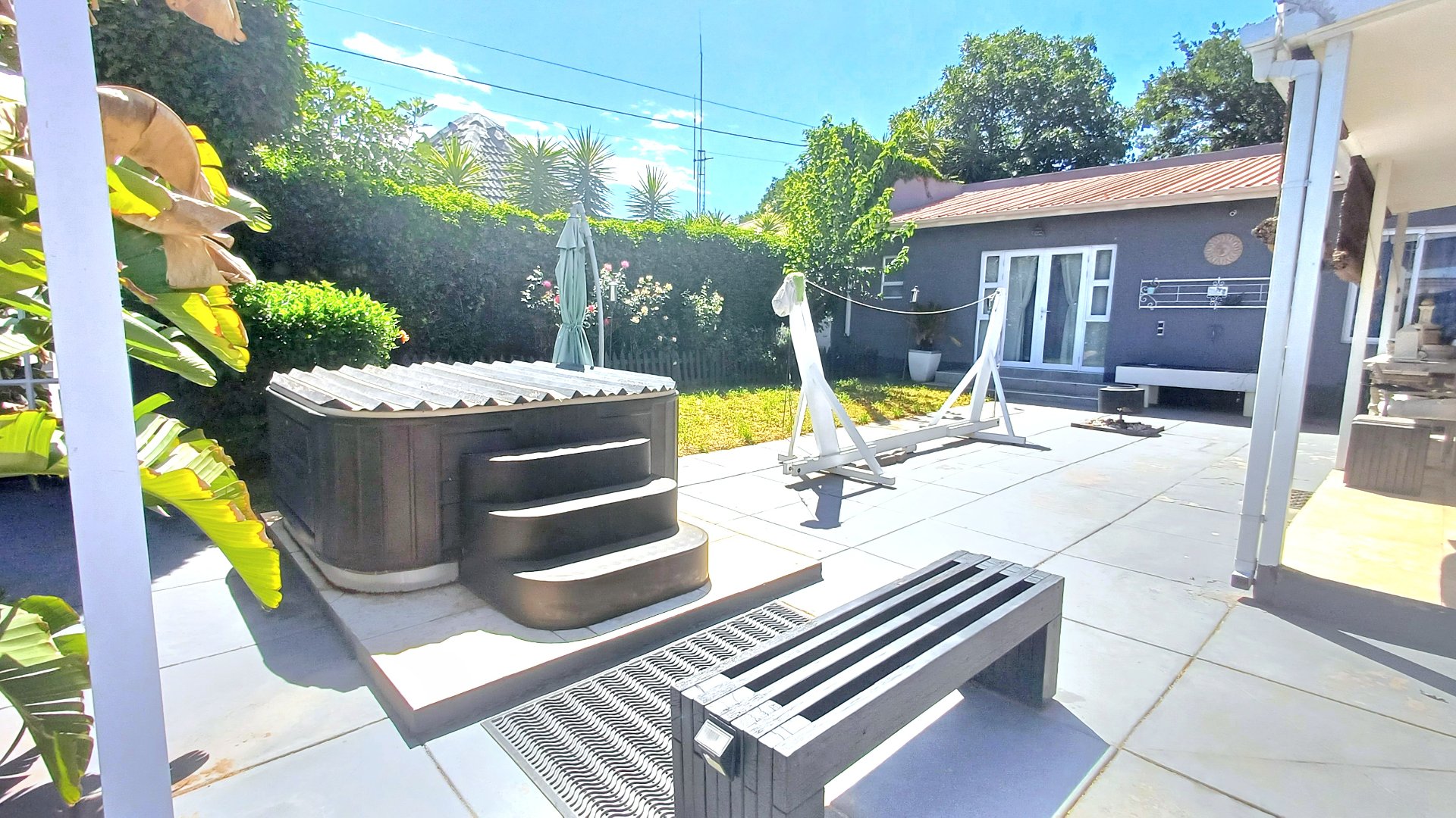 built-in marble table and bamboo blinds. The built-in jacuzzi, surrounded by a