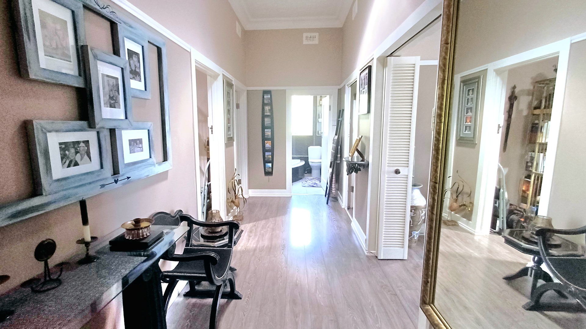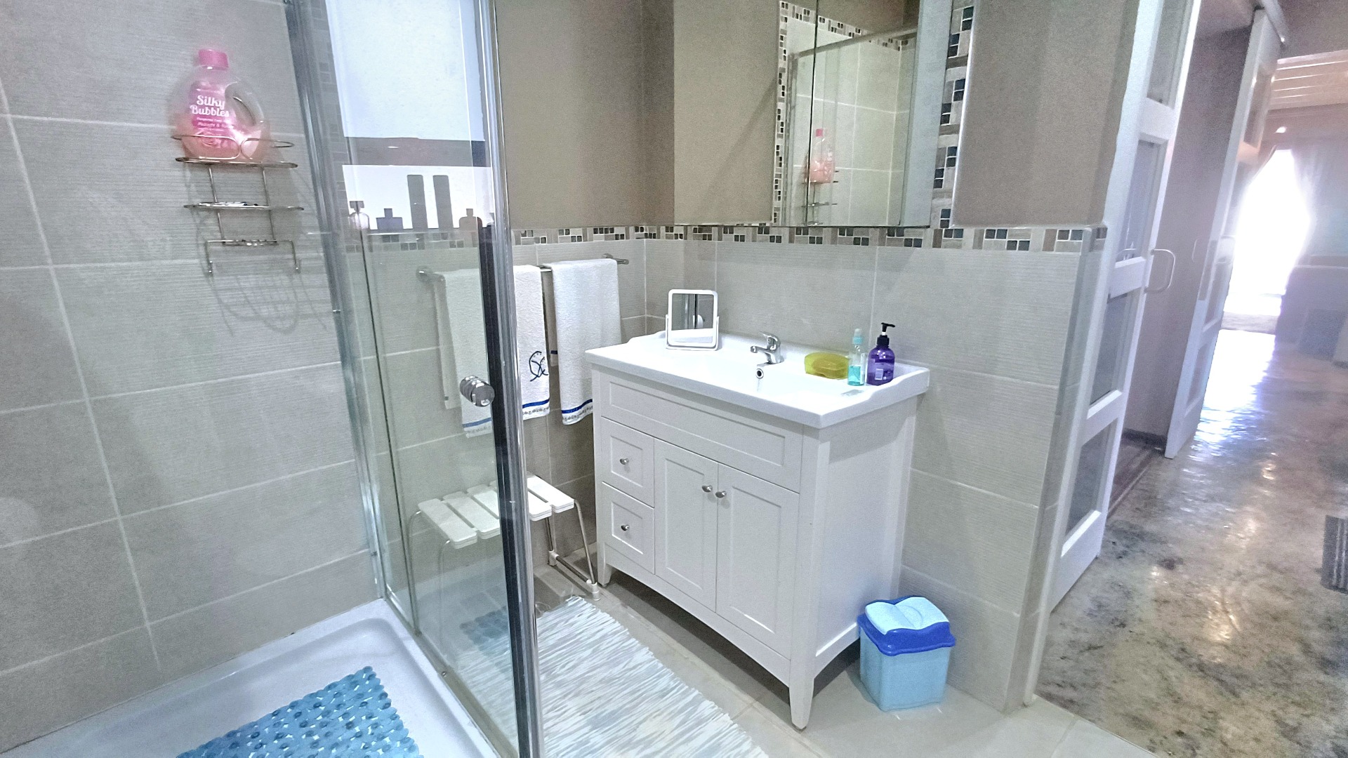 Additional amenities include a storeroom adorned with a mirrored door and