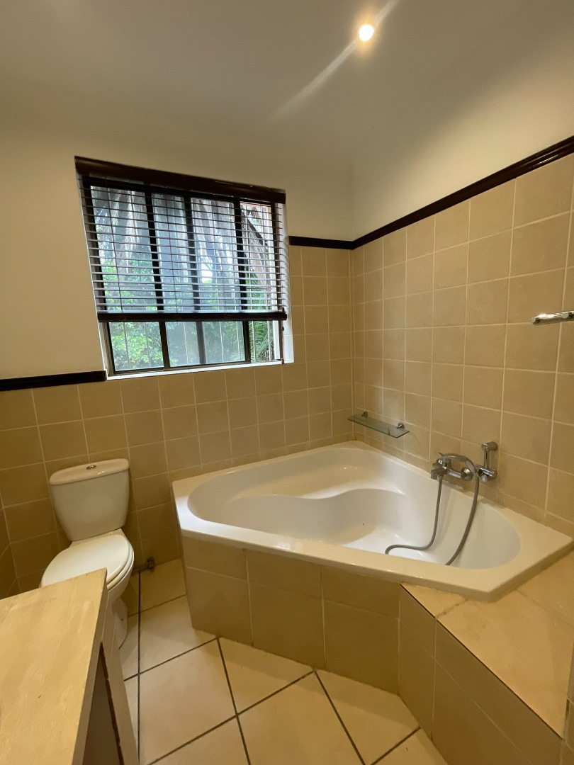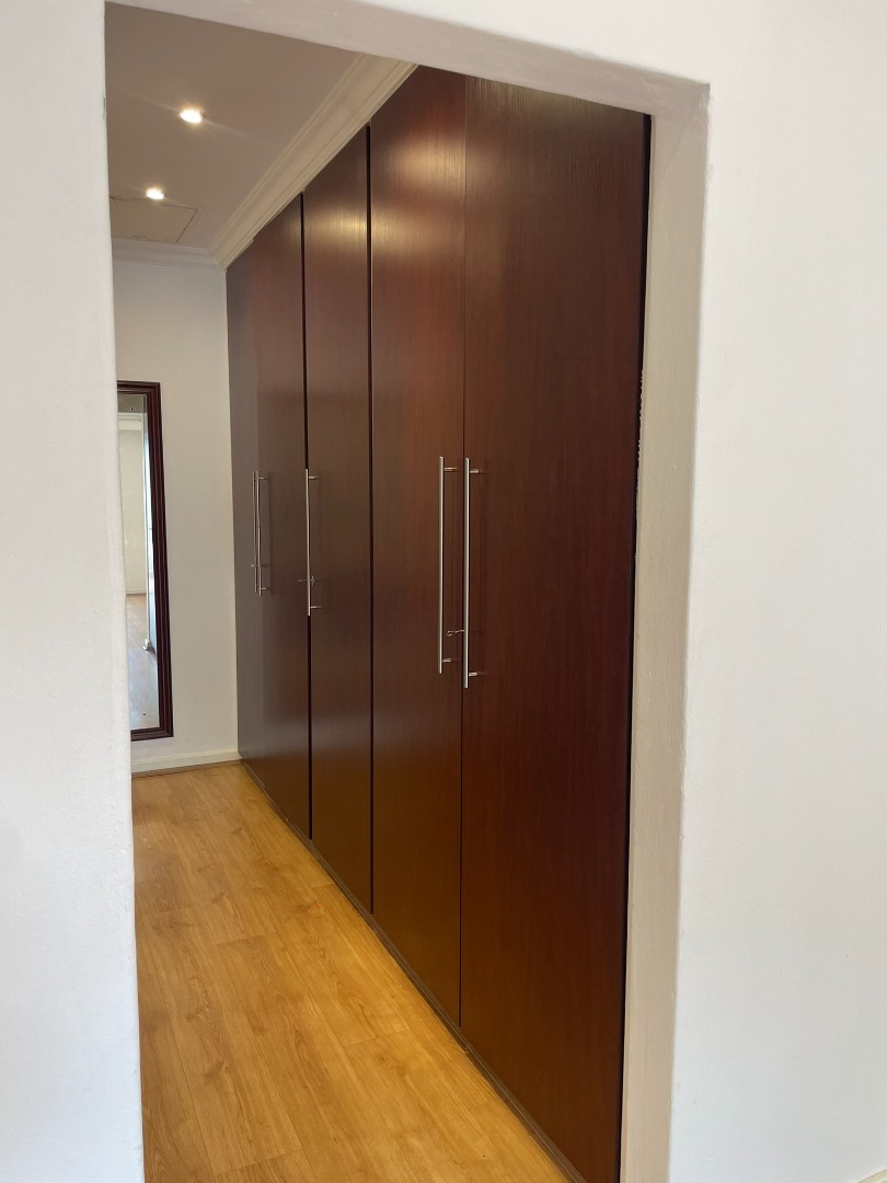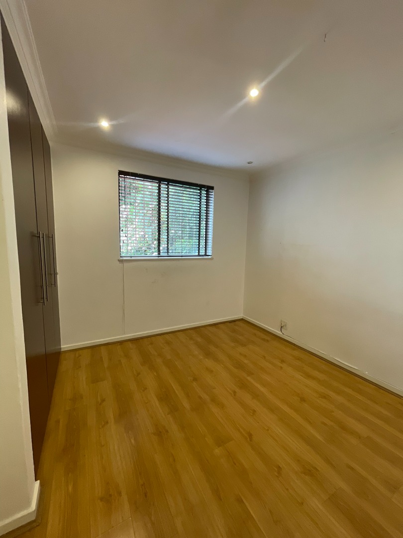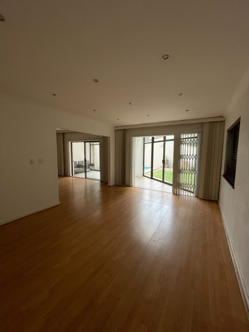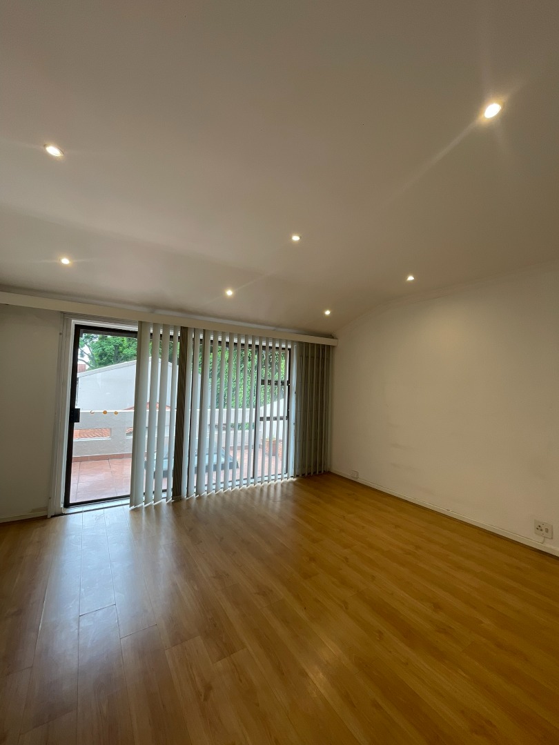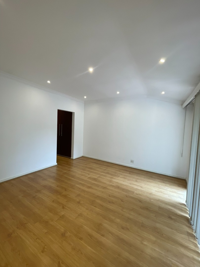 This functional four-bedroom, four-bathroom residence is available for rental in the esteemed Sandown suburb of Sandton. Spanning 180 square meters of floor area within a 237 square meter erf, this property offers a comfortable living experience. The interior layout comprises a well-appointed kitchen, a spacious dining room, a comfortable lounge, and an additional family TV room, complemented by an inviting entrance hall. Finishes include neutral white walls, laminate wood flooring, and contemporary track lighting, providing a versatile canvas for personal customization.
