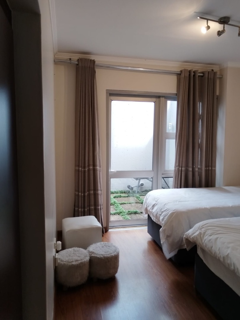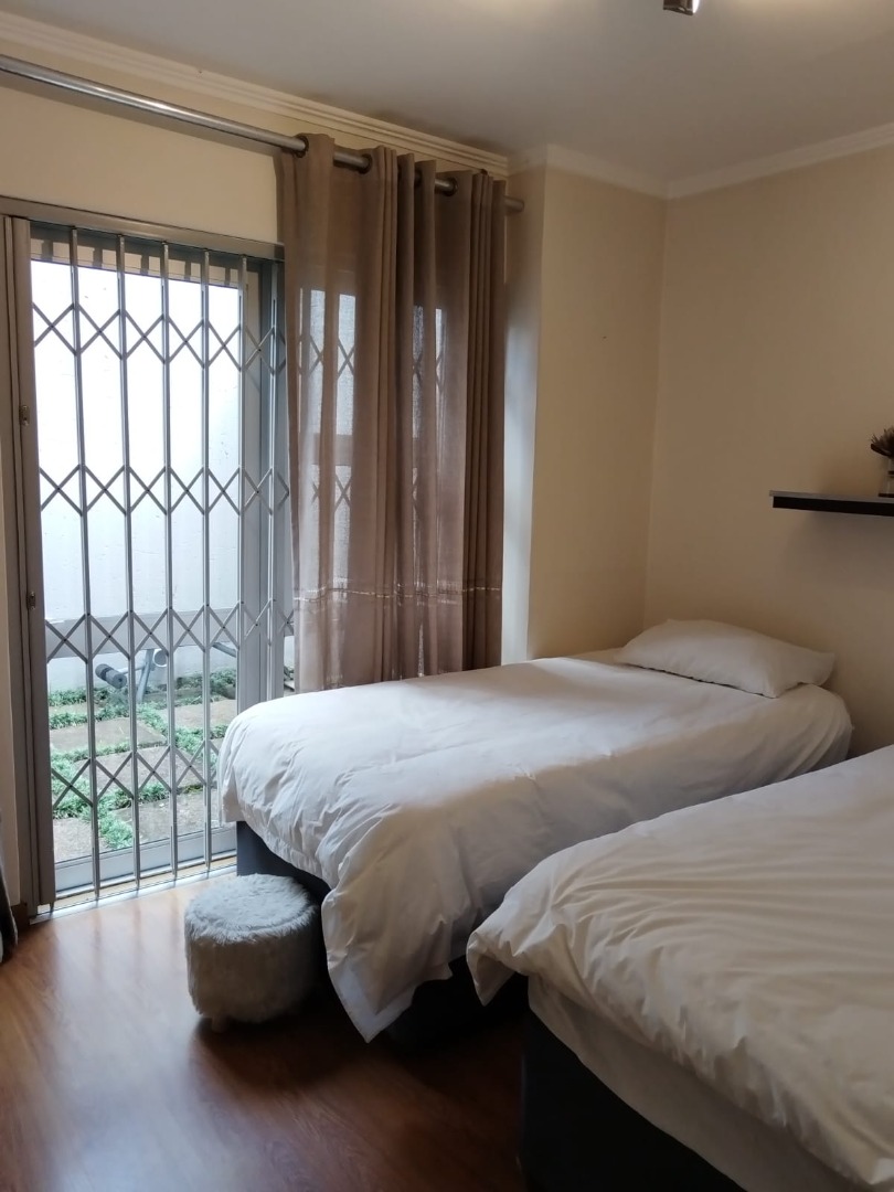 Step outside to a private patio and garden area, perfect for outdoor enjoyment and relaxation. The property also benefits from two dedicated parking spaces. Security is a key feature of this home, with 24-hour security within the complex, complemented by burglar bars, a security gate, and a totally walled perimeter, offering an enhanced sense of safety.