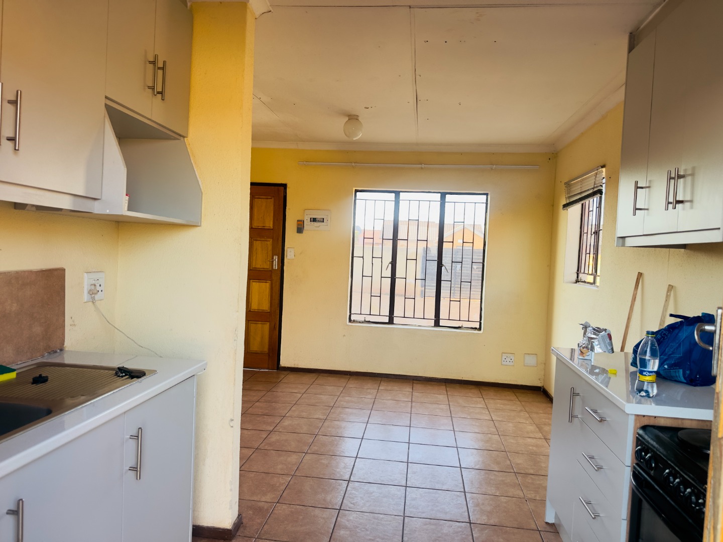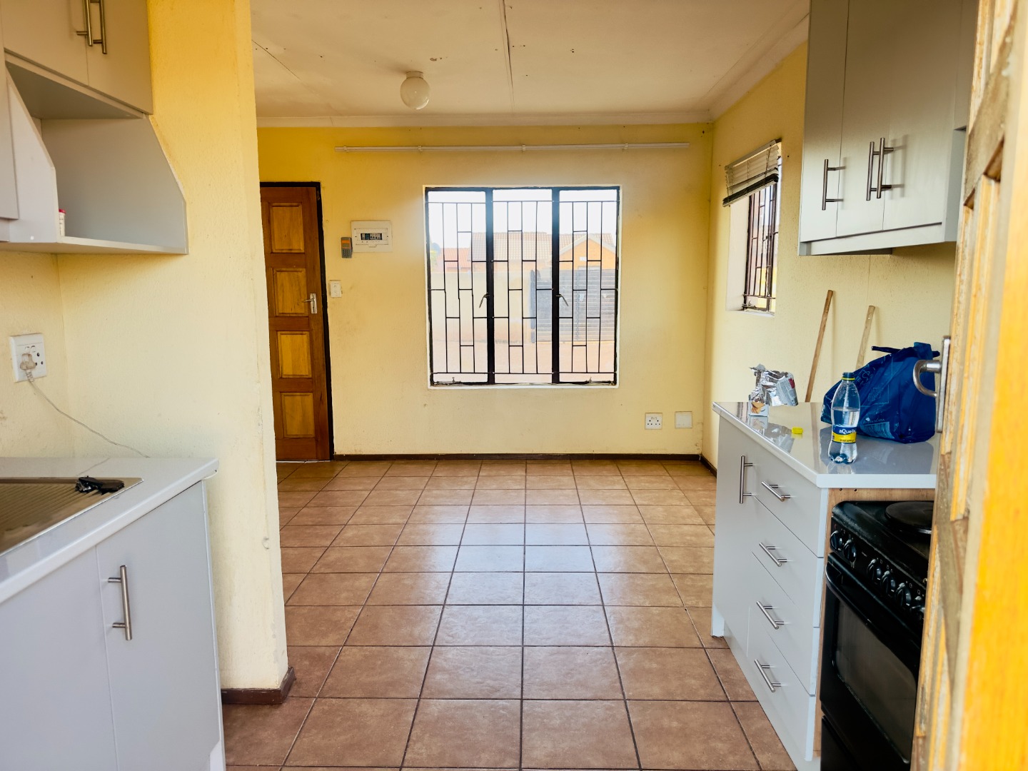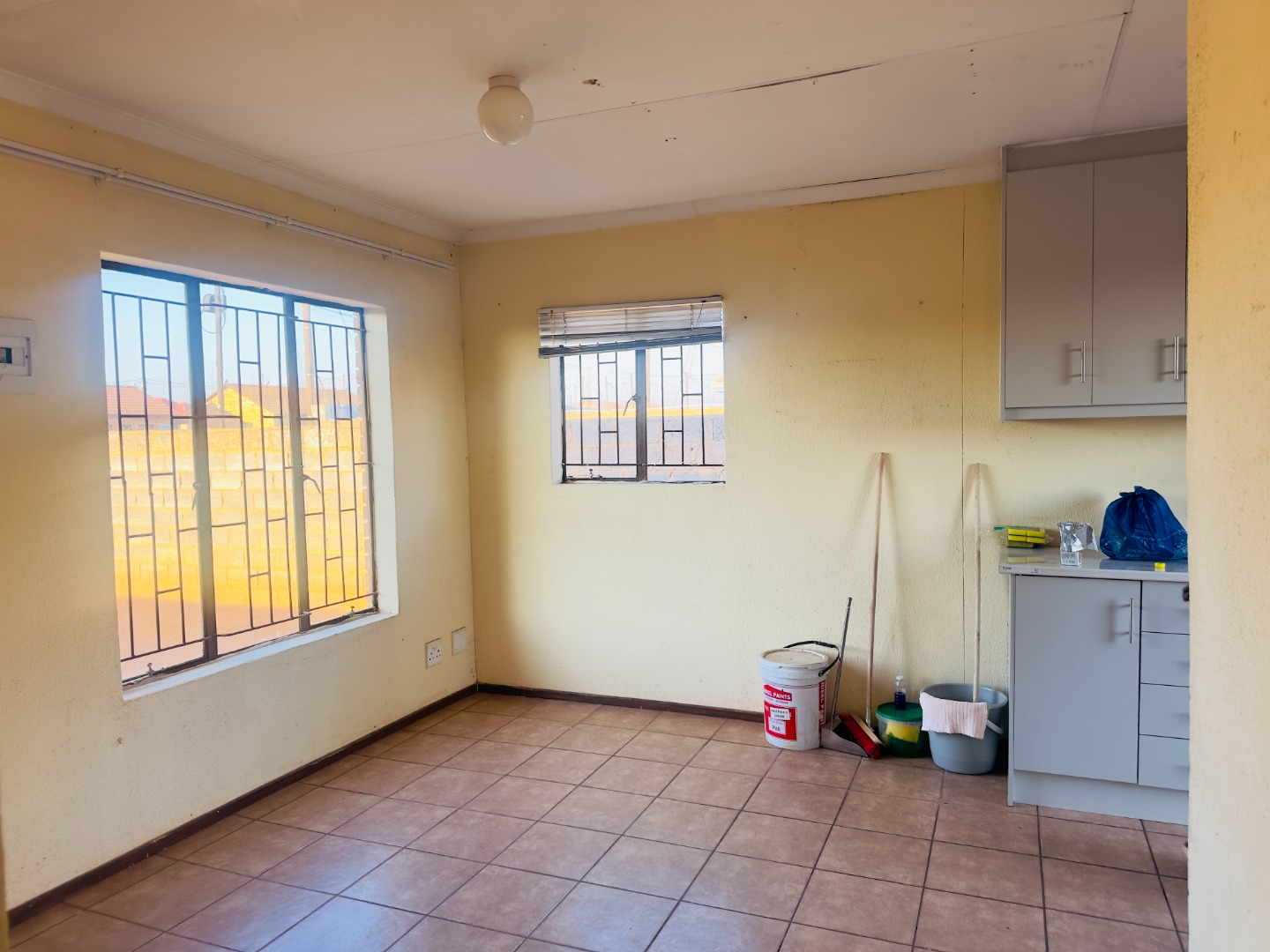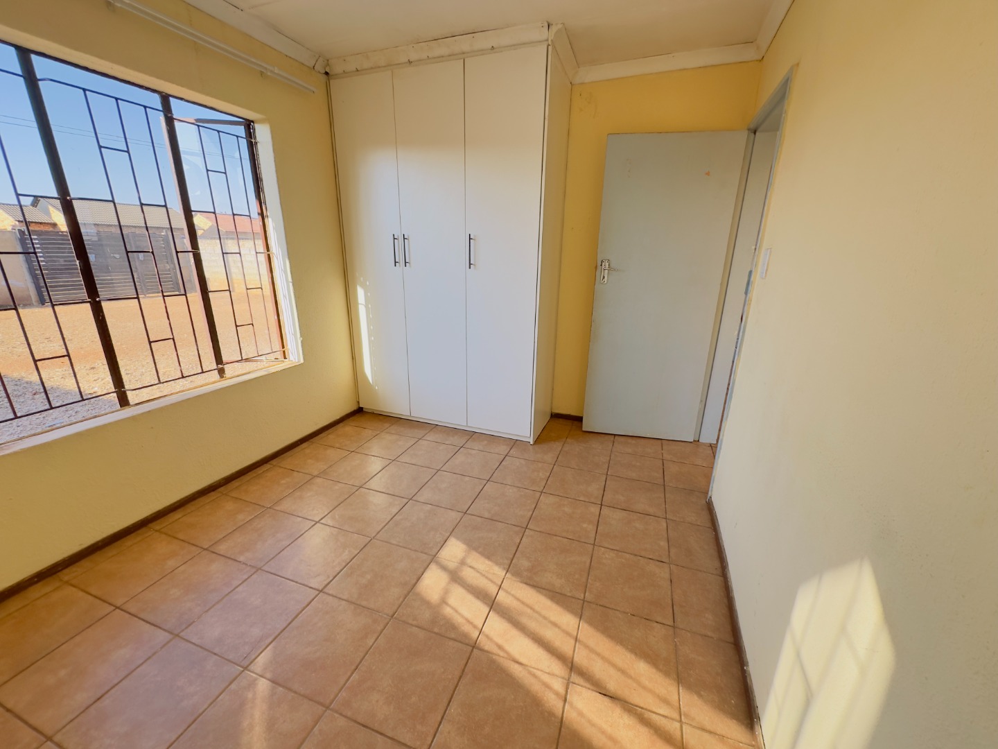 Come check out this cozy 2-bedroom, 1-bathroom home available for rent in Protea Glen, Soweto! This neat property features a modern kitchen equipped with stylish cabinets, countertops, and an oven/stove, making meal prep a breeze. The open-plan living area and tiled flooring throughout the 55 sqm interior ensure easy maintenance and a comfortable vibe. The large 602 sqm erf offers loads of outdoor space, perfect for future landscaping projects or simply enjoying the fresh air. Plus, your beloved pets are welcome here! Security is sorted with burglar bars on windows, a security gate, and a perimeter fence with an access gate, giving you peace of mind. There's also plenty of parking space for up to 10 vehicles. Protea Glen is a vibrant and developing area, offering a great community feel and convenient access to local amenities. This home is ideal for anyone looking for a practical and secure rental in a growing neighbourhood.