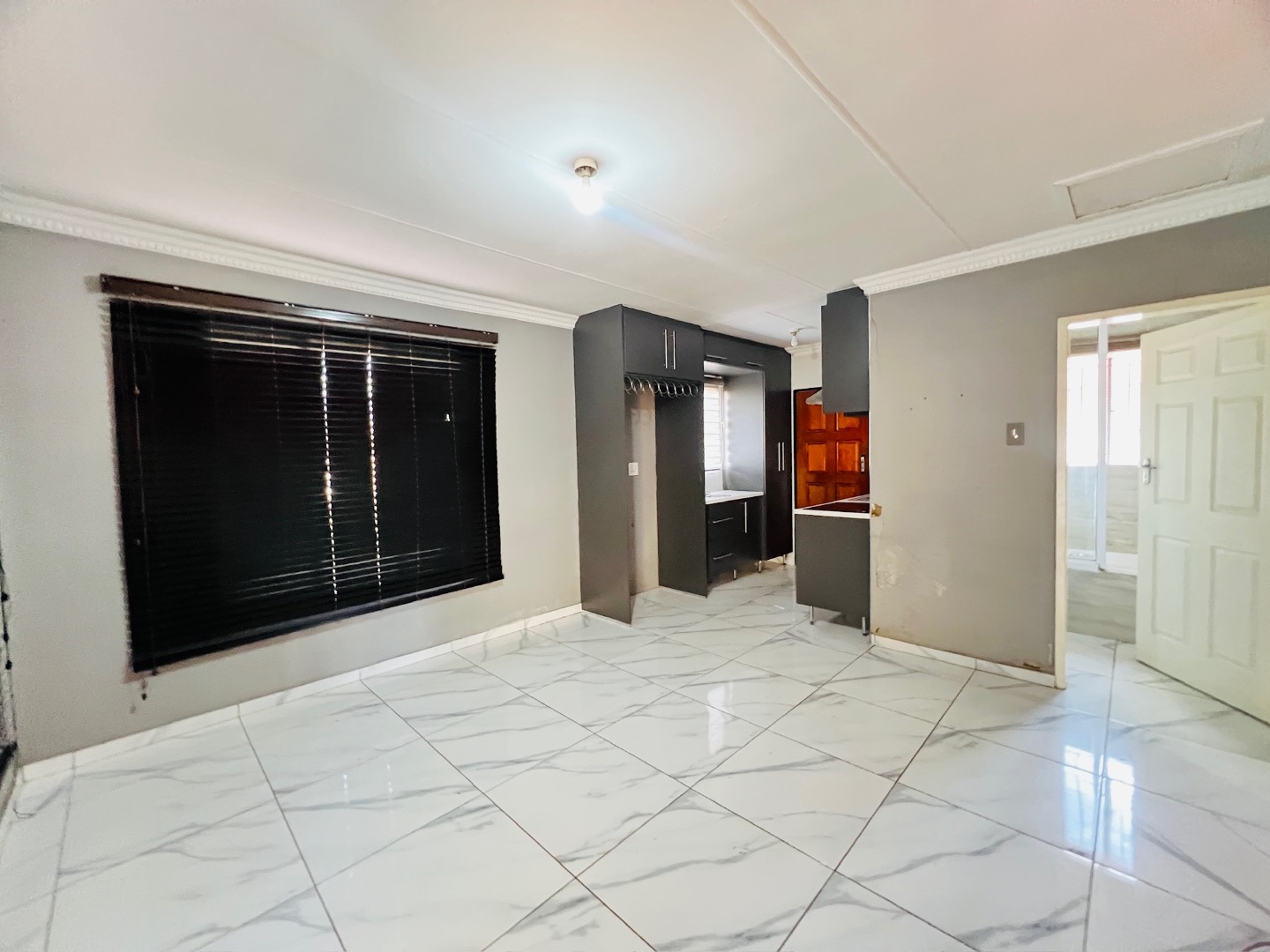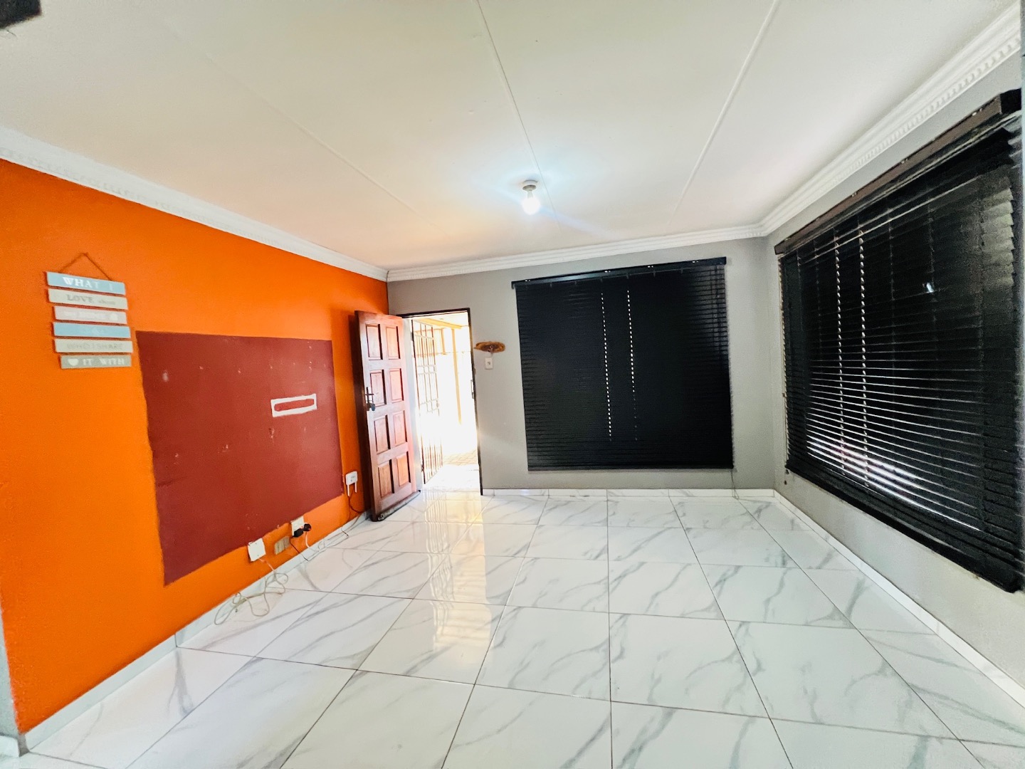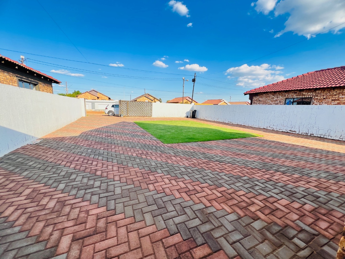 This inviting 2-bedroom, 1-bathroom rental home in Protea Glen, Soweto, offers a comfortable and practical living space. The interior features a well-appointed kitchen and a spacious lounge, designed with an open-plan layout for modern living. Both bedrooms are fitted with convenient built-in sliding wardrobes, providing ample storage, and the entire home boasts modern white tiled flooring and neutral wall tones, complemented by crown molding for a neat finish. The property prioritizes low-maintenance living with its attractive brick exterior and extensive paved yard. This outdoor area includes a small, vibrant patch of artificial turf and a covered carport, ensuring sheltered parking. With an impressive capacity for up to 12 vehicles, parking is never an issue. The property is totally walled, featuring a modern gate and security bars on windows, enhancing privacy and safety. Designed for convenience, this home is wheelchair-friendly and welcomes both pets and smoking, catering to a diverse range of tenants. Fibre connectivity is available, ensuring high-speed internet access for work or leisure. An additional outside toilet adds to the practicality of the property. Protea Glen is a vibrant and established suburb in Soweto, offering residents a convenient location with access to local amenities and transport routes. Key Features: * 2 Bedrooms with sliding wardrobes * 1 Bathroom * Open-plan lounge and kitchen * Modern tiled flooring * Extensive paved parking for 12 vehicles * Covered carport * Totally walled property with modern gate * Burglar bars for enhanced security * Fibre ready * Pet-friendly and smoking allowed