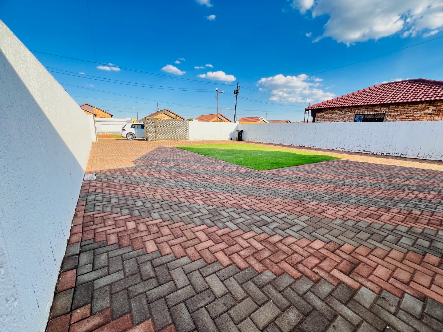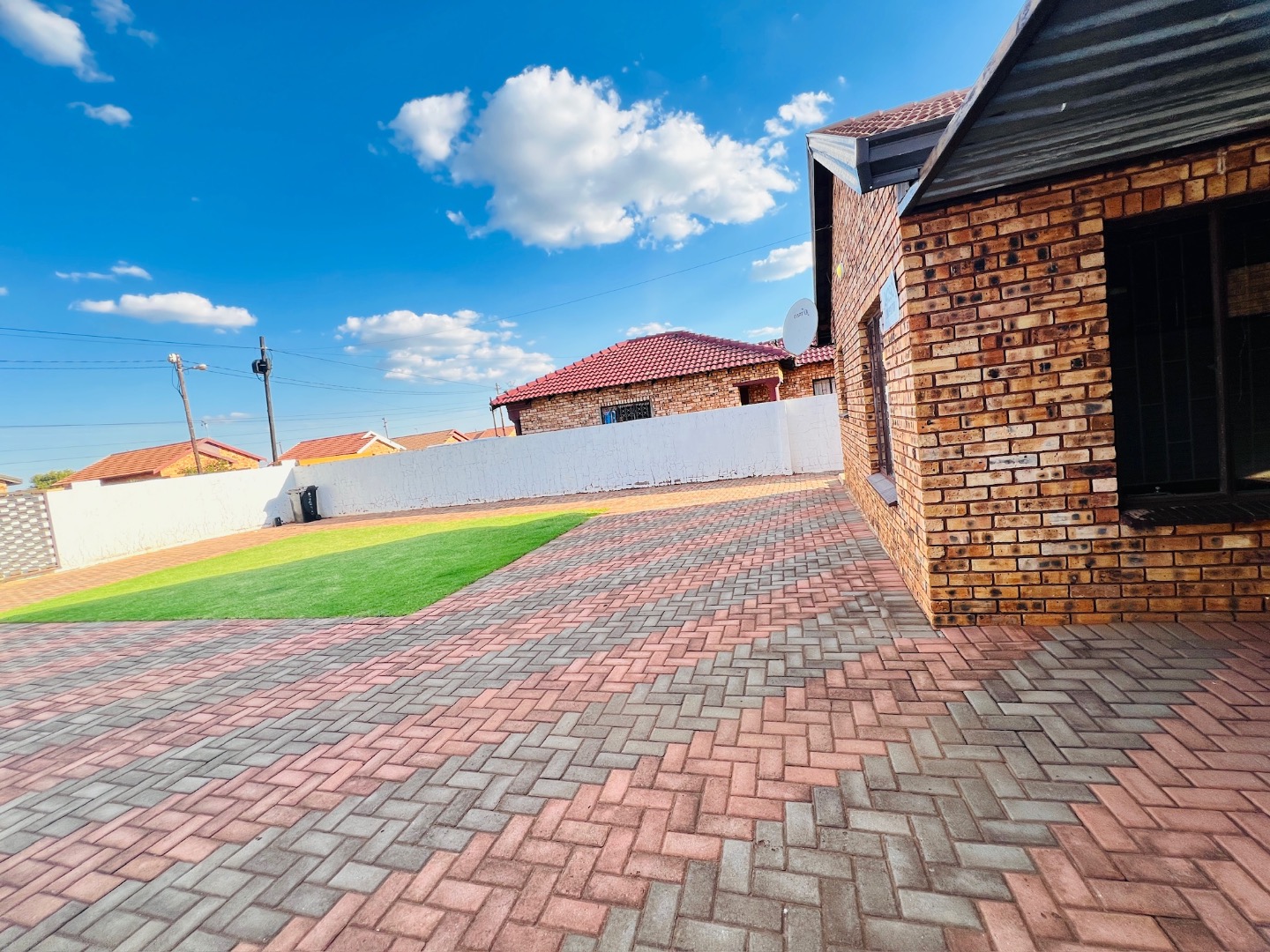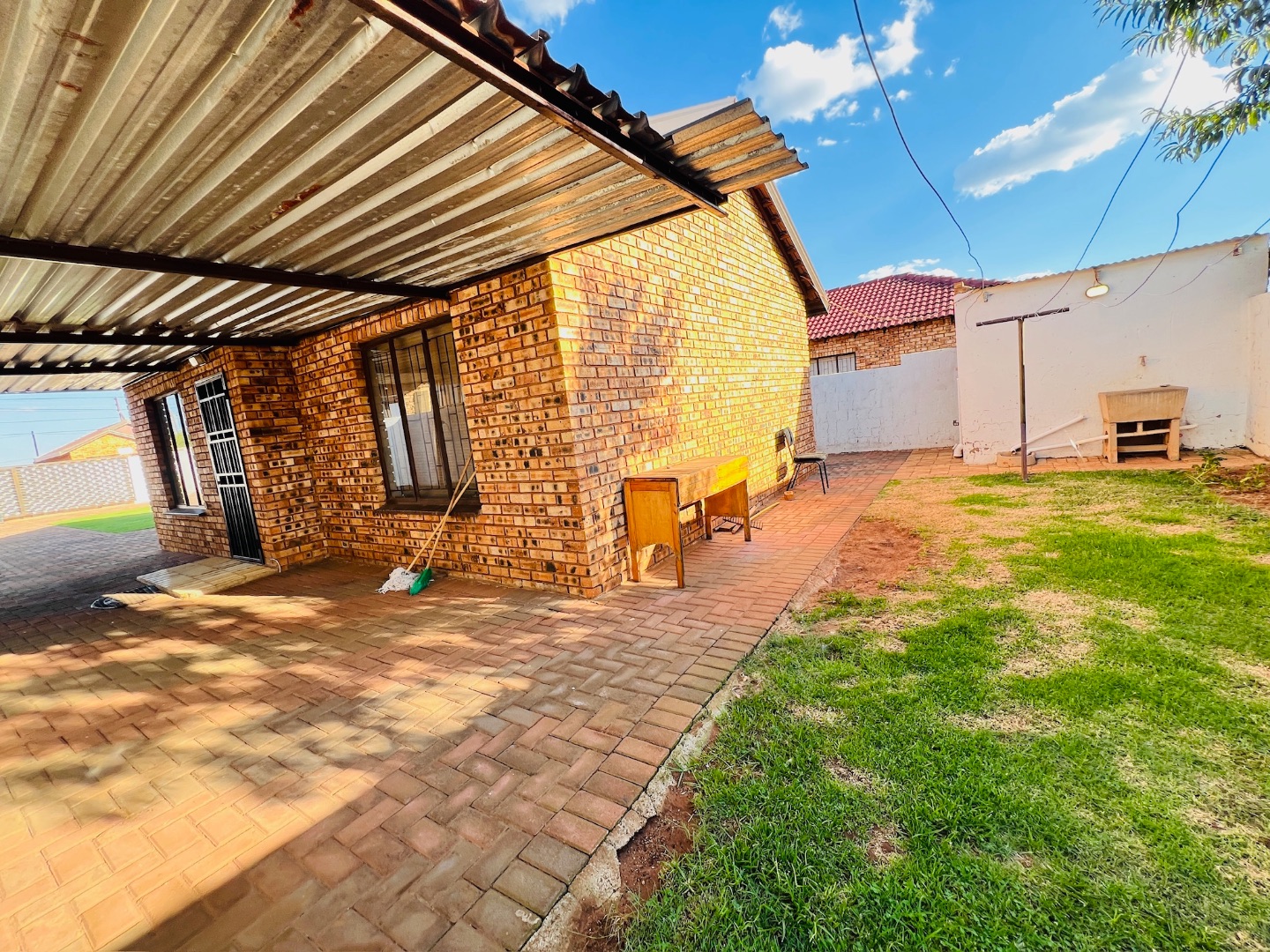 This inviting 2-bedroom, 1-bathroom rental home in Protea Glen, Soweto, offers a comfortable and practical living space. The interior features a well-appointed kitchen and a spacious lounge, designed with an open-plan layout for modern living. Both bedrooms are fitted with convenient built-in sliding wardrobes, providing ample storage, and the entire home boasts modern white tiled flooring and neutral wall tones, complemented by crown molding for a neat finish. The property prioritizes low-maintenance living with its attractive brick exterior and extensive paved yard. This outdoor area includes a small, vibrant patch of artificial turf and a covered carport, ensuring sheltered parking. With an impressive capacity for up to 12 vehicles, parking is never an issue. The property is totally walled, featuring a modern gate and security bars on windows, enhancing privacy and safety. Designed for convenience, this home is wheelchair-friendly and welcomes both pets and smoking, catering to a diverse range of tenants. Fibre connectivity is available, ensuring high-speed internet access for work or leisure. An additional outside toilet adds to the practicality of the property. Protea Glen is a vibrant and established suburb in Soweto, offering residents a convenient location with access to local amenities and transport routes. Key Features: * 2 Bedrooms with sliding wardrobes * 1 Bathroom * Open-plan lounge and kitchen * Modern tiled flooring * Extensive paved parking for 12 vehicles * Covered carport * Totally walled property with modern gate * Burglar bars for enhanced security * Fibre ready * Pet-friendly and smoking allowed