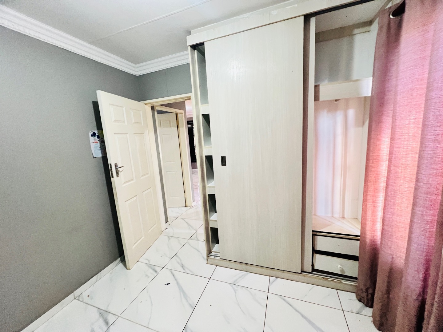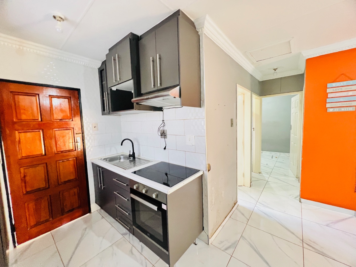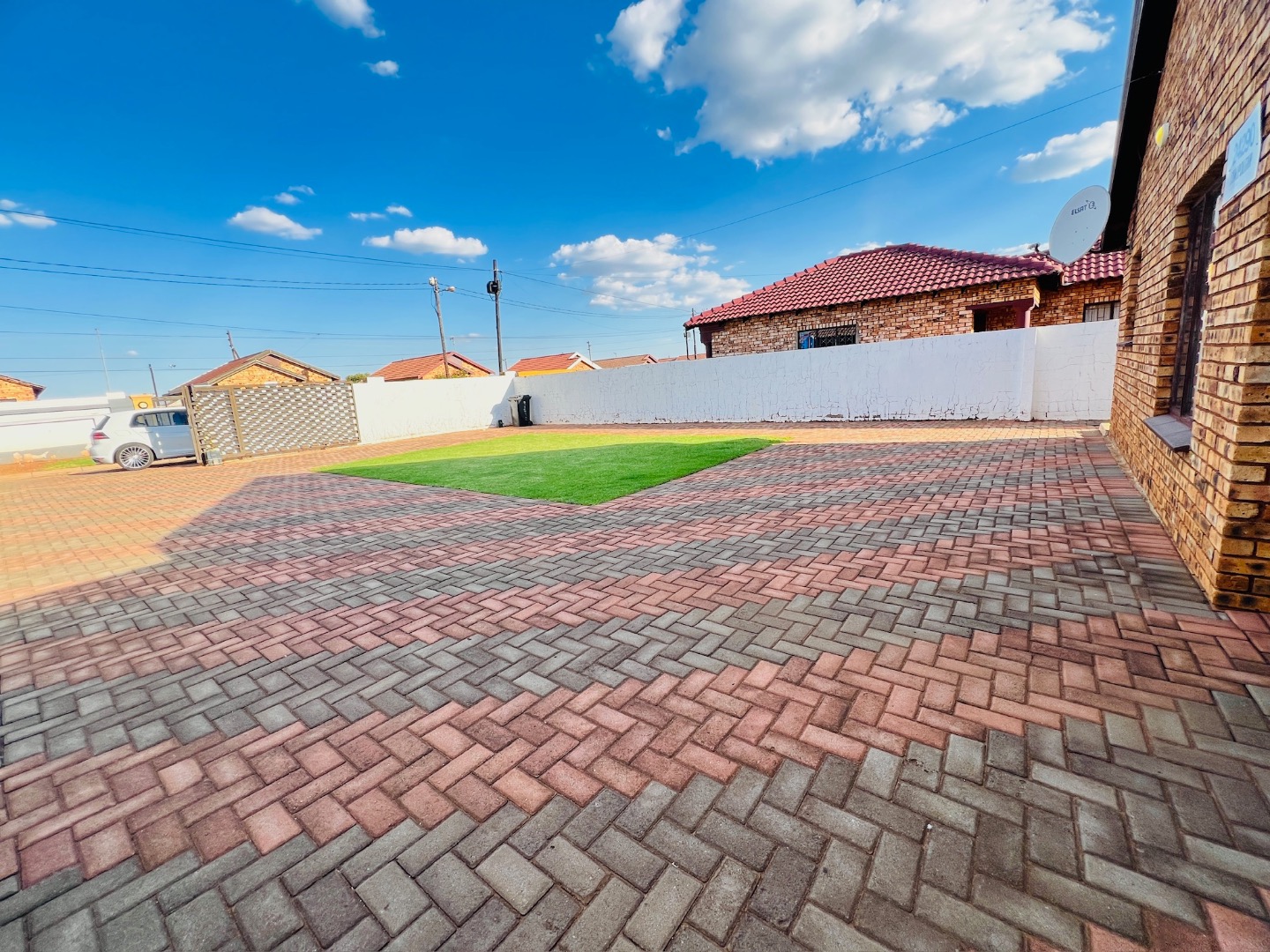 This inviting 2-bedroom, 1-bathroom rental home in Protea Glen, Soweto, offers a comfortable and practical living space. The interior features a well-appointed kitchen and a spacious lounge, designed with an open-plan layout for modern living. Both bedrooms are fitted with convenient built-in sliding wardrobes, providing ample storage, and the entire home boasts modern white tiled flooring and neutral wall tones, complemented by crown molding for a neat finish. The property prioritizes low-maintenance living with its attractive brick exterior and extensive paved yard. This outdoor area includes a small, vibrant patch of artificial turf and a covered carport, ensuring sheltered parking. With an impressive capacity for up to 12 vehicles, parking is never an issue. The property is totally walled, featuring a modern gate and security bars on windows, enhancing privacy and safety. Designed for convenience, this home is wheelchair-friendly and welcomes both pets and smoking, catering to a diverse range of tenants. Fibre connectivity is available, ensuring high-speed internet access for work or leisure. An additional outside toilet adds to the practicality of the property. Protea Glen is a vibrant and established suburb in Soweto, offering residents a convenient location with access to local amenities and transport routes. Key Features: * 2 Bedrooms with sliding wardrobes * 1 Bathroom * Open-plan lounge and kitchen * Modern tiled flooring * Extensive paved parking for 12 vehicles * Covered carport * Totally walled property with modern gate * Burglar bars for enhanced security * Fibre ready * Pet-friendly and smoking allowed