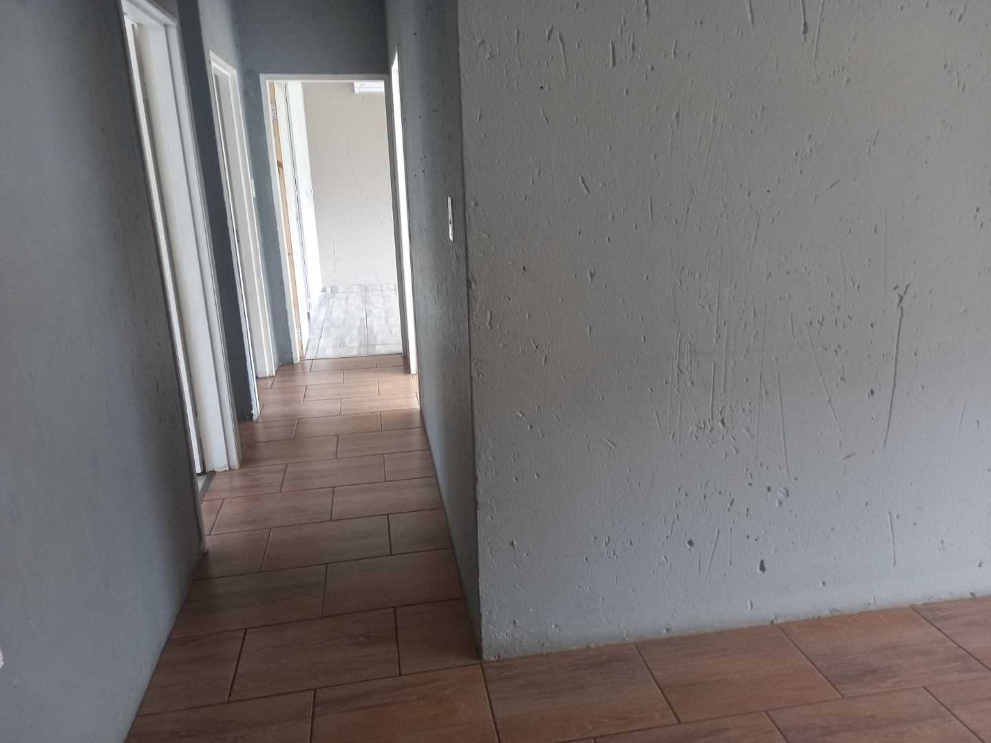 Security is a key feature, with an access gate controlling entry to the complex and security gates on the property's sliding doors and burglar bars on windows, offering peace of mind. The home presents a solid foundation with recent updates like wood-look tiled flooring in main areas and laminate in bedrooms, ready for its new owners to add their personal touch and elevate its kerb appeal.