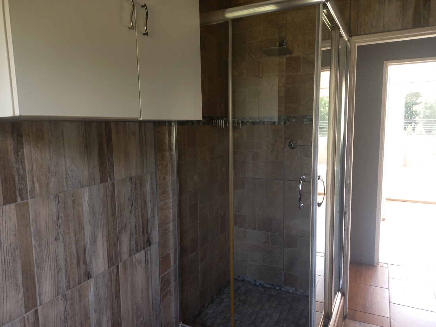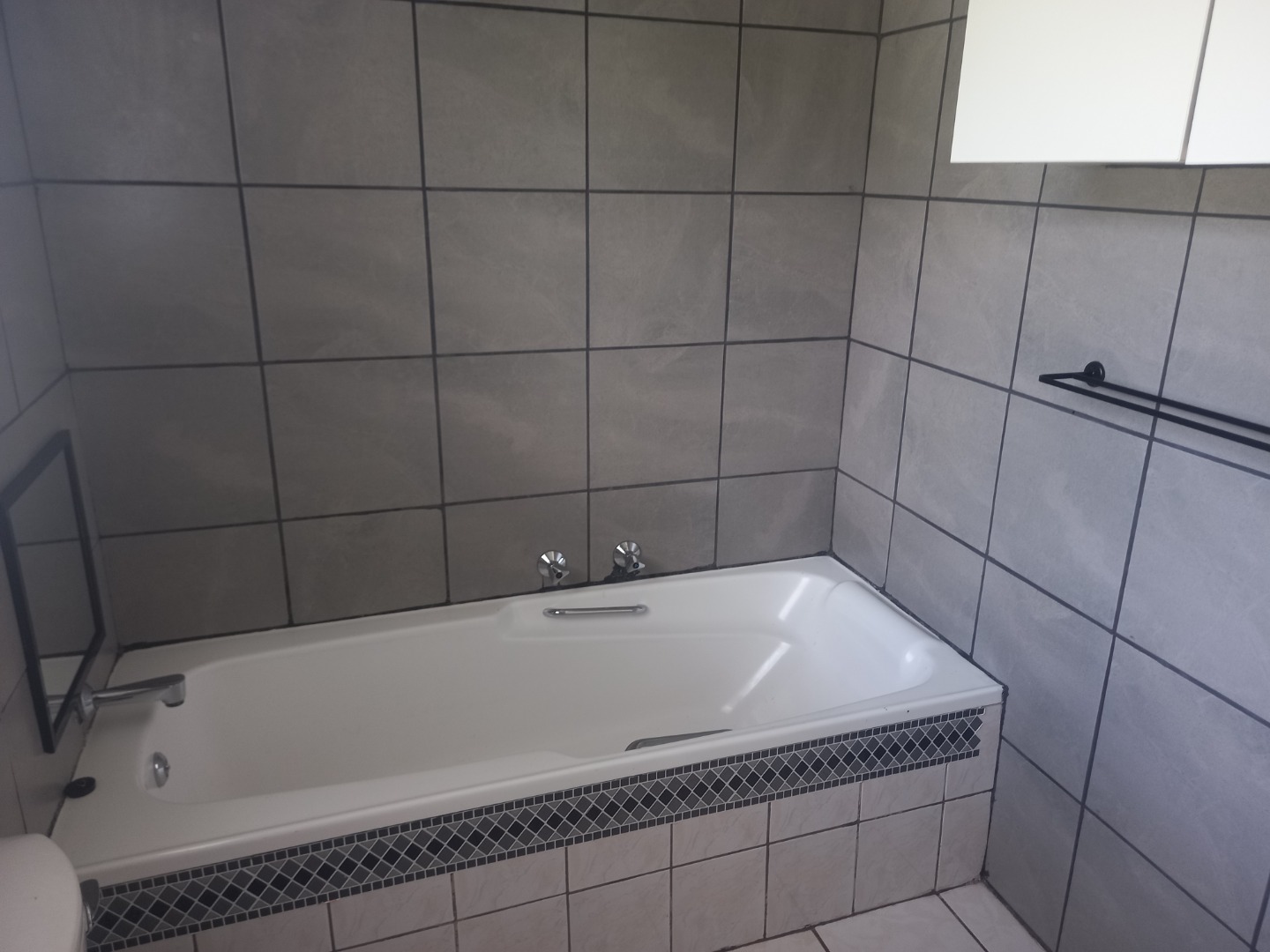 Step outside to enjoy your private garden, accessible via large sliding glass doors from the living areas, which open onto a tiled patio secured with burglar bars. This outdoor space offers a tranquil retreat for relaxation or entertaining. The property also provides two dedicated parking spaces, ensuring convenience for residents and guests within the secure complex environment.