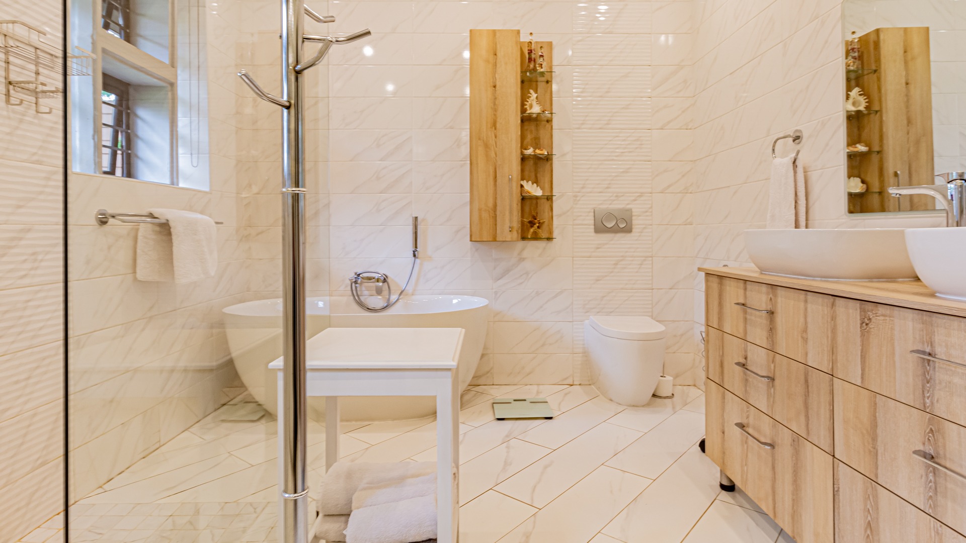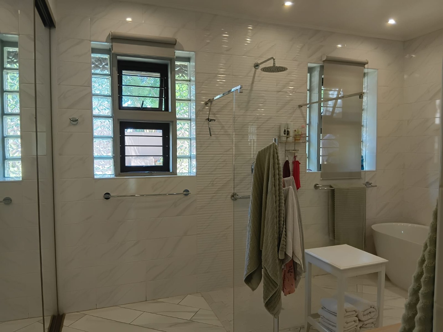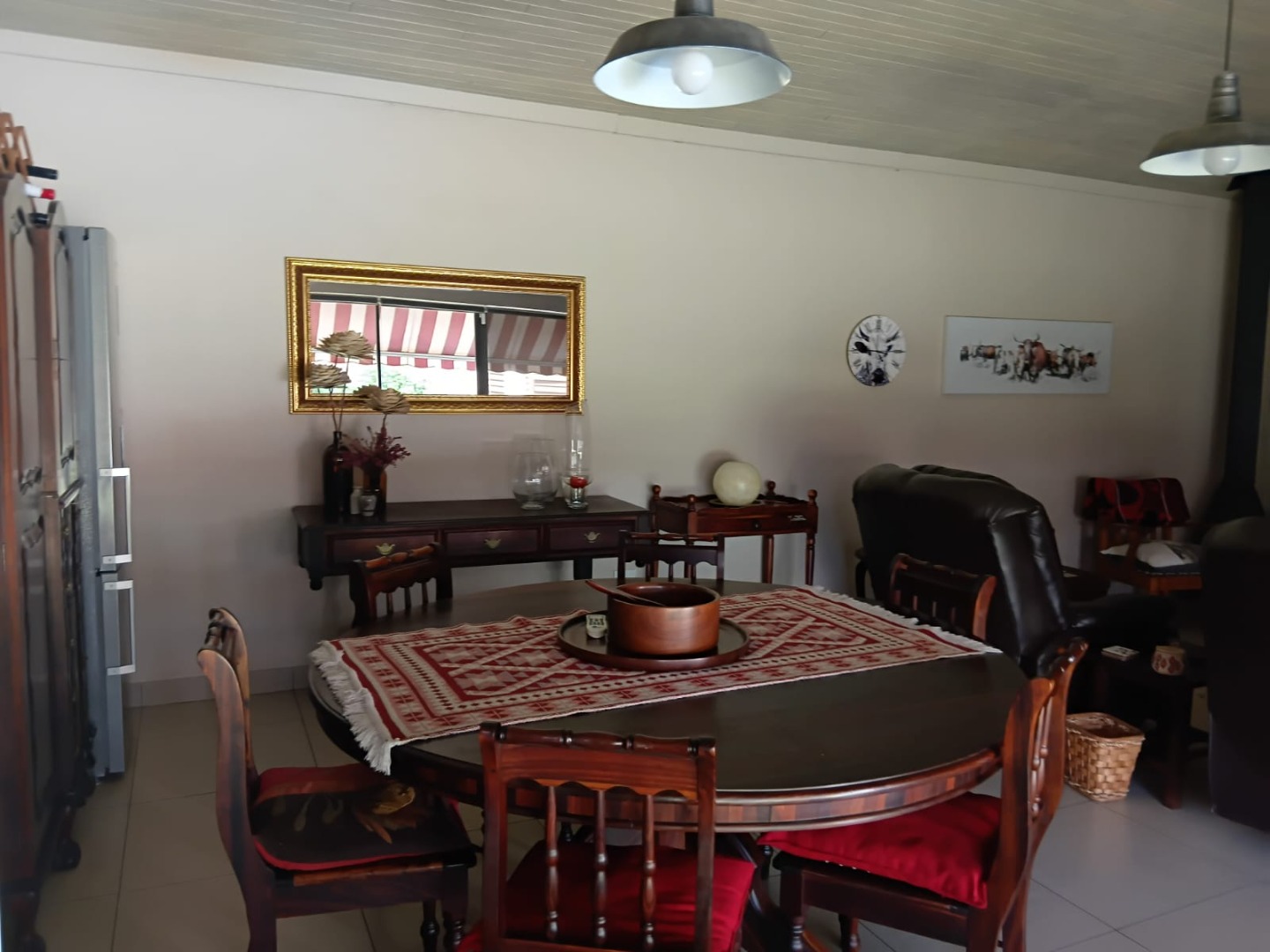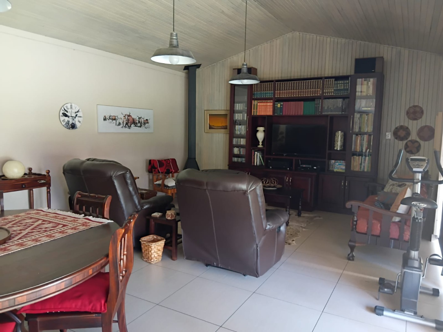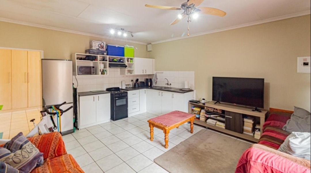 Sliding doors lead you out to the patio and manicured garden, featuring a sparkling swimming pool and built-in braai – the ultimate outdoor entertainment space.