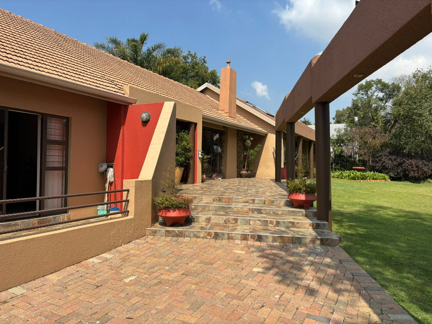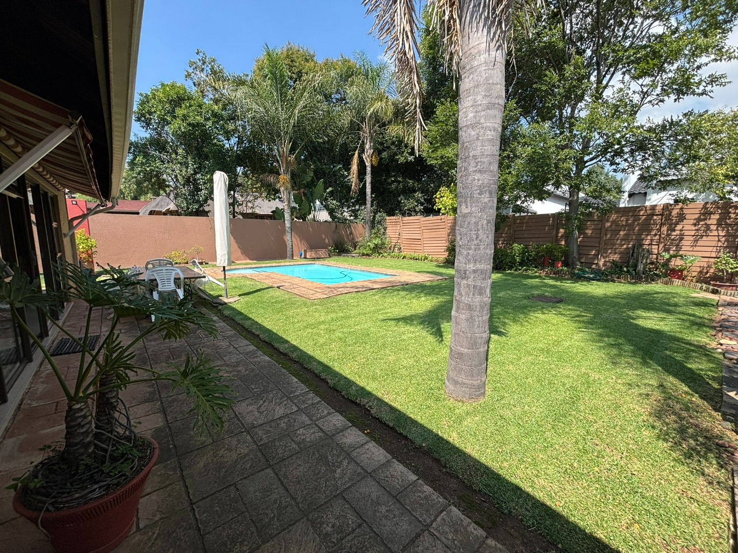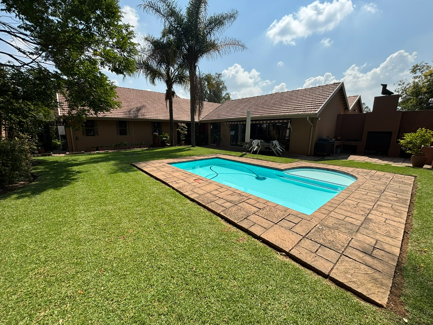 A key differentiator, this property includes three independent flatlets: one studio and two fully self-contained units, each with its own kitchen, lounge, and bedroom, collectively generating a substantial rental income of R20,000 per month. The outdoor space features a drop-down sun covering and an entertainment area overlooking a sparkling blue swimming pool. A vast, well-maintained grassed garden, complete with an automated irrigation system and paving, provides ample space for outdoor activities. Practicality is paramount with a double automated garage accommodating four vehicles, supplemented by secure parking for up to eight additional vehicles and two carports. Security is well-addressed with an alarm system, access gate. Solar assisted geyser for the main house and 3 gas geysers, one for each flatlet. Generator link ready.
