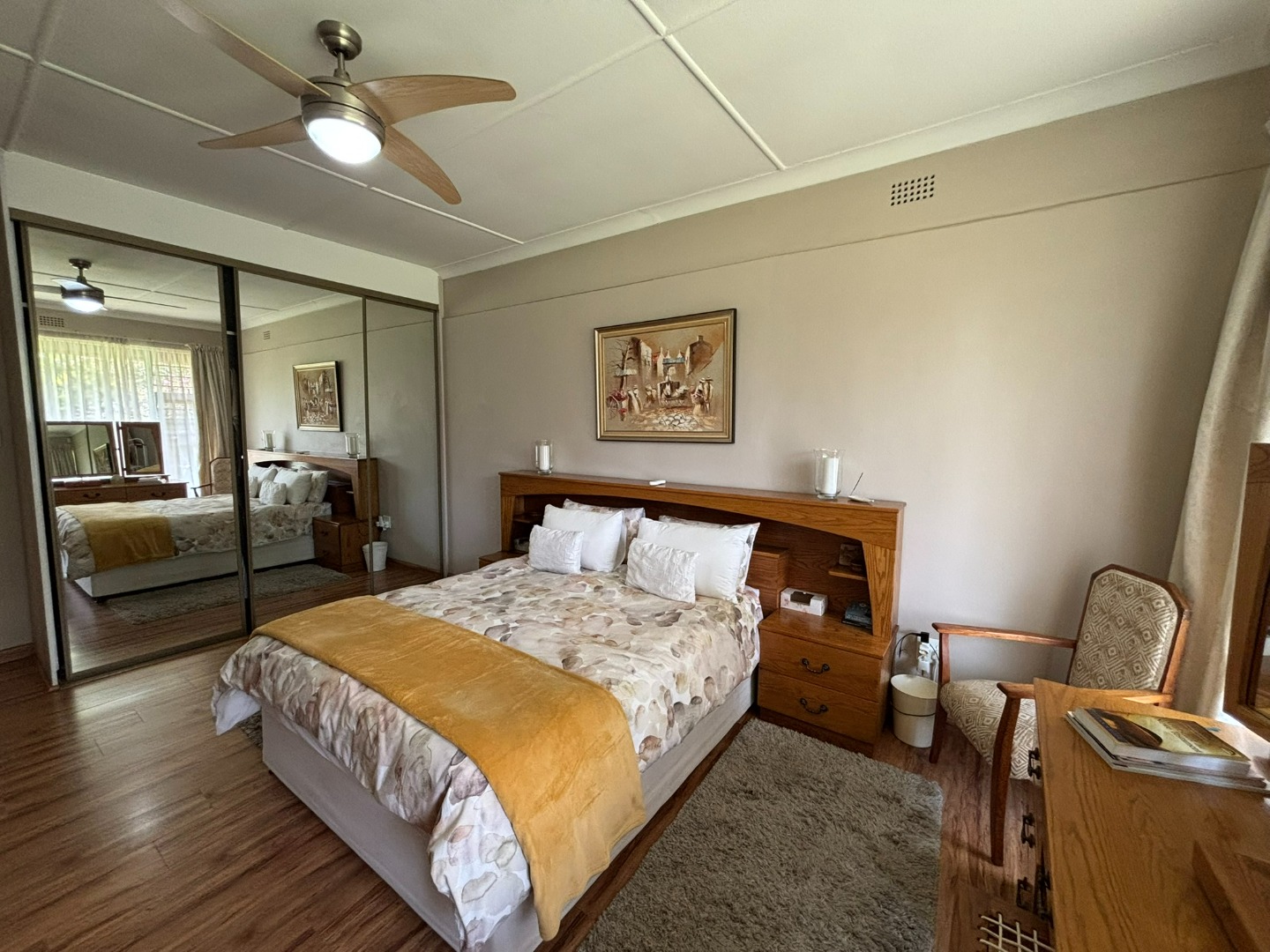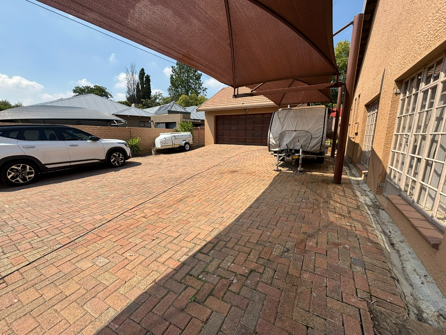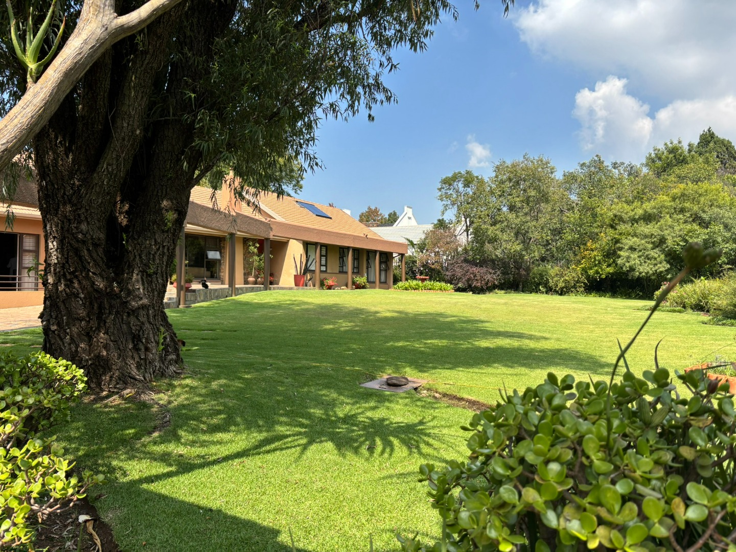 A key differentiator, this property includes three independent flatlets: one studio and two fully self-contained units, each with its own kitchen, lounge, and bedroom, collectively generating a substantial rental income of R20,000 per month. The outdoor space features a drop-down sun covering and an entertainment area overlooking a sparkling blue swimming pool. A vast, well-maintained grassed garden, complete with an automated irrigation system and paving, provides ample space for outdoor activities. Practicality is paramount with a double automated garage accommodating four vehicles, supplemented by secure parking for up to eight additional vehicles and two carports. Security is well-addressed with an alarm system, access gate. Solar assisted geyser for the main house and 3 gas geysers, one for each flatlet. Generator link ready.