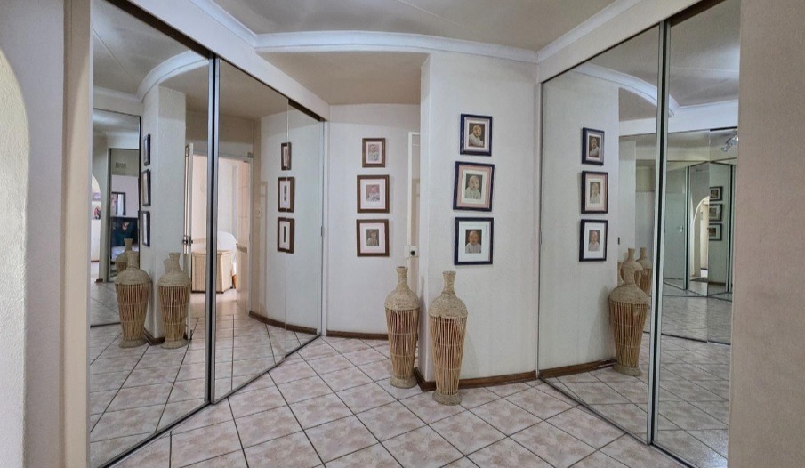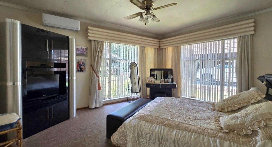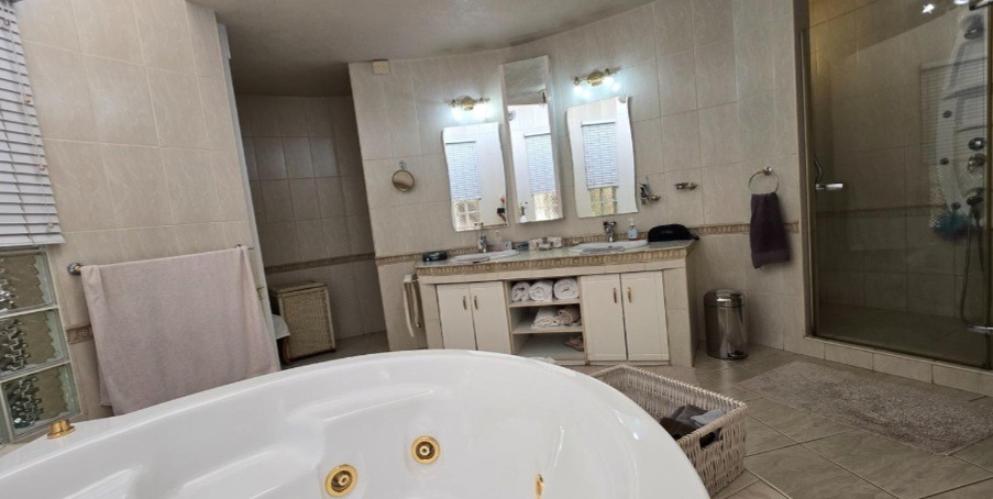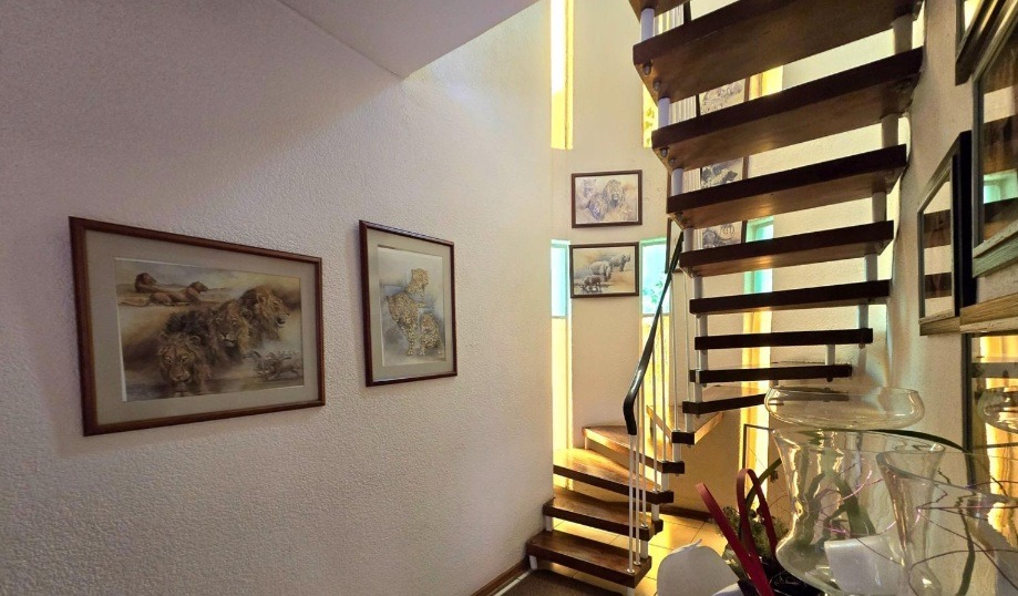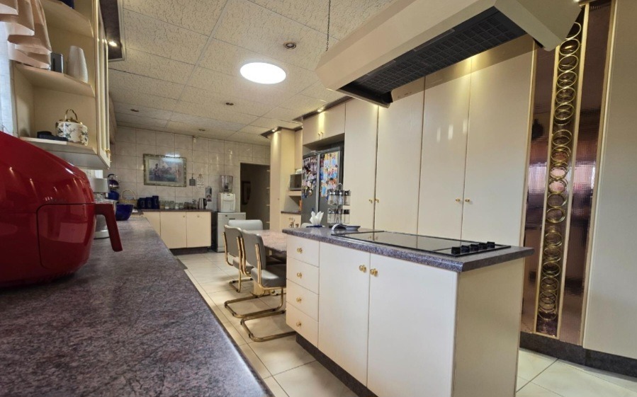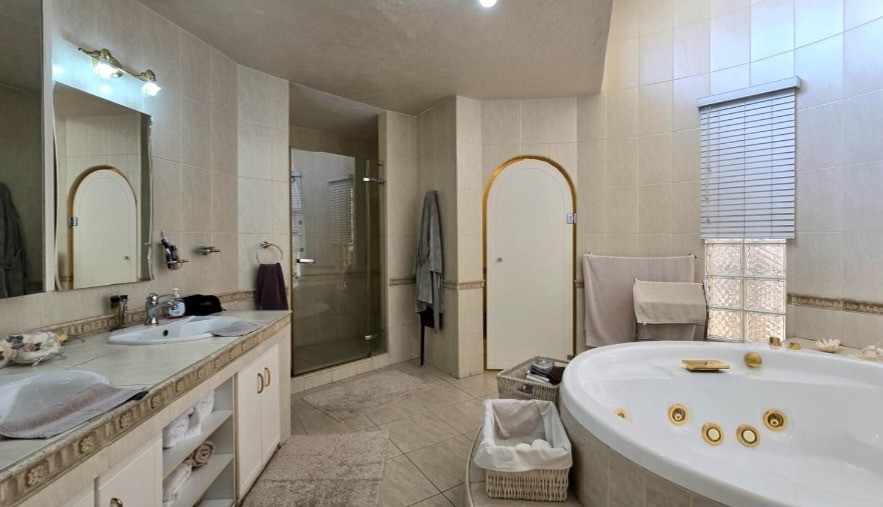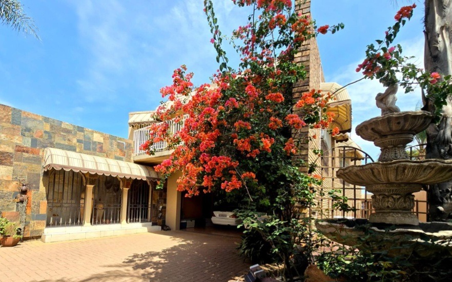 Discover an exquisite sanctuary nestled within the esteemed Alberante suburb of Alberton, South Africa. This magnificent residential offering, spanning an impressive 922 sqm on a 2659 sqm erf, presents an unparalleled blend of distinctive architecture and luxurious living. From the moment you arrive, the property captivates with its vibrant bougainvillea, elegant stone cladding, and meticulously landscaped gardens, hinting at the bespoke experiences within. Enhanced security features and modern solar panels, alongside a solar water heater, underscore a commitment to both safety and sustainable living.