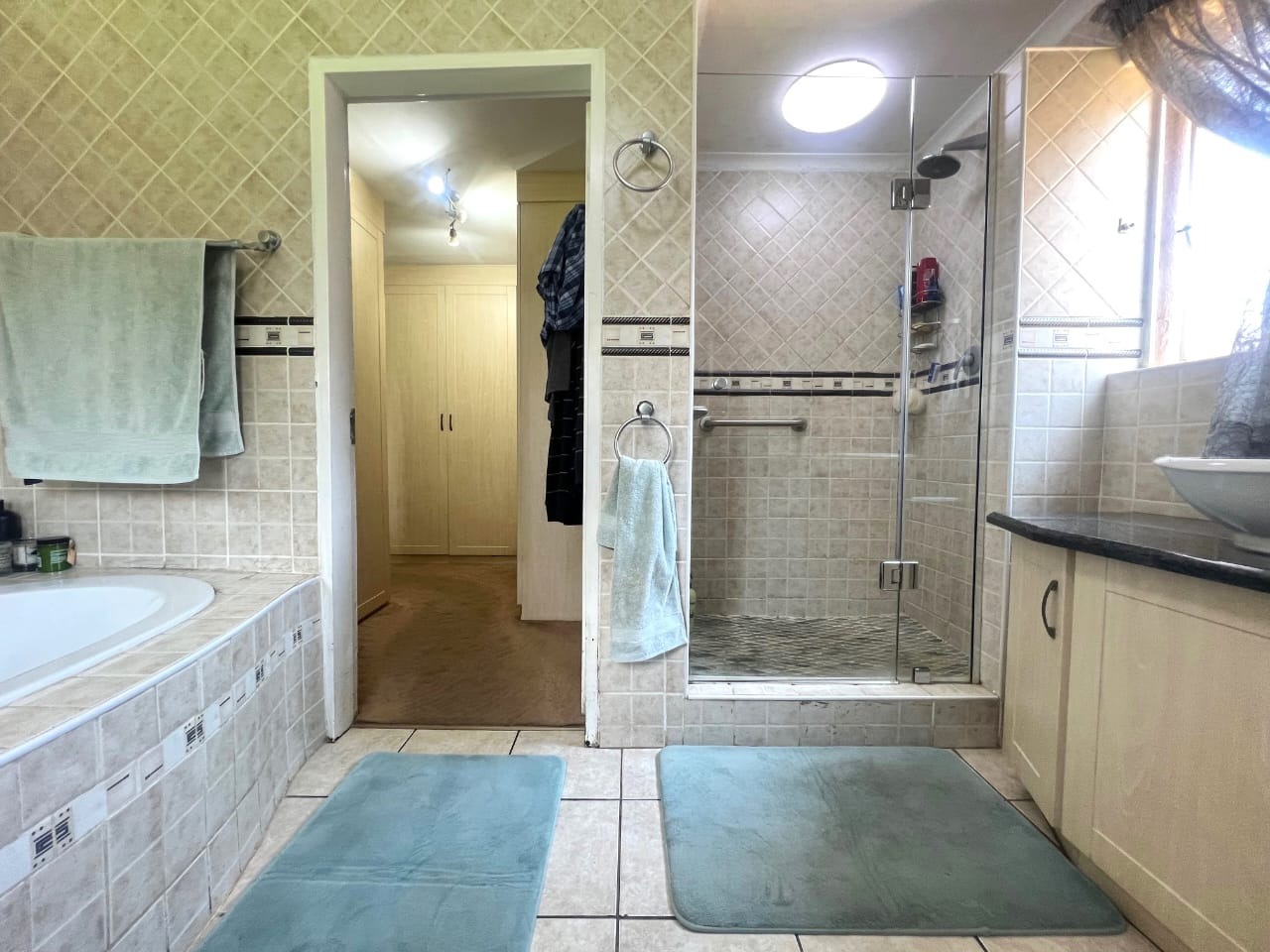 1st bathroom (main ensuite) – Shower double basin corner bath toilet