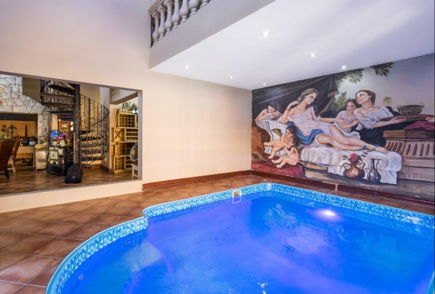 Discover an unparalleled lifestyle within this magnificent residential offering in the esteemed Alberante, Alberton. Spanning an expansive 2790 sqm erf with a generous 643 sqm under roof, this property exudes grandeur and sophisticated design, promising an exceptional living experience. The residence boasts a captivating kerb appeal, featuring elegant paving, a well-maintained garden, and a welcoming entrance hall that sets the tone for the luxury within. Step inside to an interior meticulously crafted for comfort and entertainment. The home features two spacious lounges and a dedicated dining room, all designed with an open-plan flow that enhances connectivity. A gourmet kitchen, complete with a convenient pantry, caters to culinary enthusiasts. Unique touches like a charming fireplace, tasteful wallpaper, and a built-in bar elevate the ambiance, creating inviting spaces for both intimate gatherings and grand entertaining. Accommodation is lavish, comprising six generously proportioned bedrooms, each accompanied by its own private en-suite bathroom, ensuring ultimate privacy and convenience. An additional guest toilet further enhances the home's functionality. The thoughtful layout provides ample space for relaxation and personal sanctuary, reflecting a commitment to refined living. Outdoor living is equally impressive, offering a private oasis for leisure and recreation. Enjoy sun-drenched afternoons by the sparkling swimming pool, unwind on the expansive patio or deck, or host memorable events in the lapa and dedicated braai room. The property also includes staff quarters, domestic rooms, and outside toilets, ensuring seamless household management. With two garages and six additional parking spaces, vehicle accommodation is abundant. Pets are welcome, and direct access to a golf course adds an exclusive recreational dimension. Security is paramount, with comprehensive features including a robust fence, electric fencing, an access gate, an alarm system, intercom, burglar bars, and a security gate, providing peace of mind. The property is also fibre-ready, ensuring high-speed connectivity. This Alberton gem represents a rare opportunity to acquire a residence of distinction in a metropolitan yet suburban setting. Key Features: * Six Bedrooms, Six En-suite Bathrooms * Two Lounges, One Dining Room * Expansive 2790 sqm Erf, 643 sqm Floor Size * Swimming Pool, Jacuzzi, Patio, Deck, Lapa, Braai Room * Two Garages, Six Parking Spaces * Staff Quarters, Domestic Rooms * Fibre Connectivity, Alarm System, Electric Fencing * Study, Pantry, Fireplace, Built-in Bar * Pets Allowed, Garden, Sprinkler System