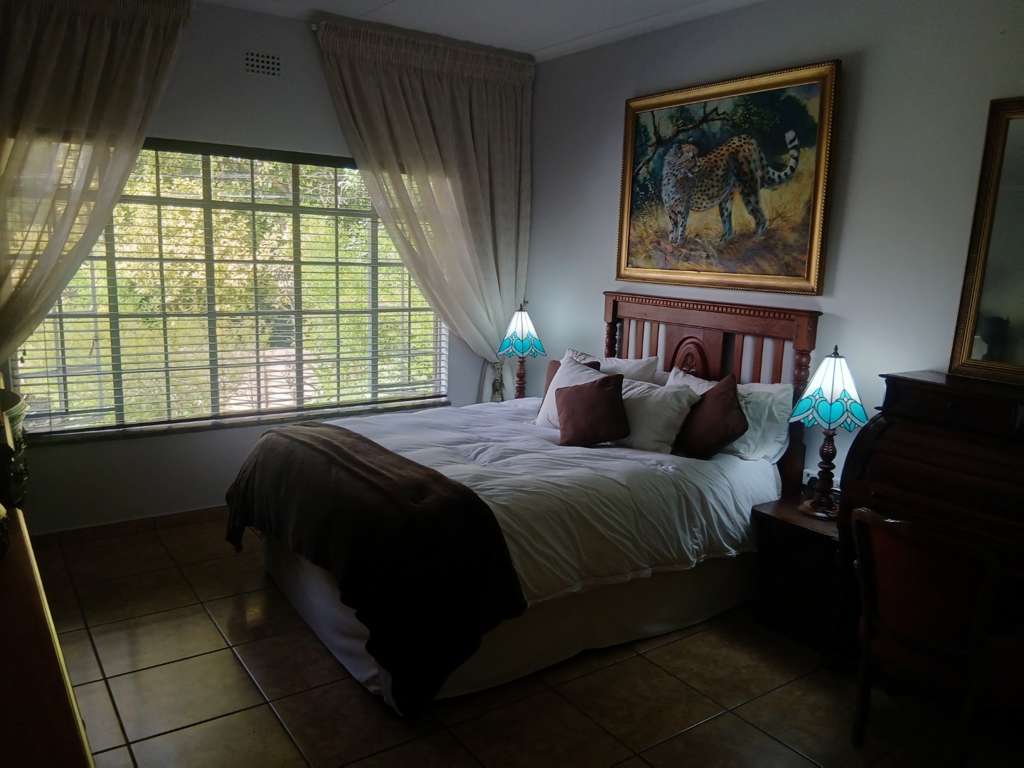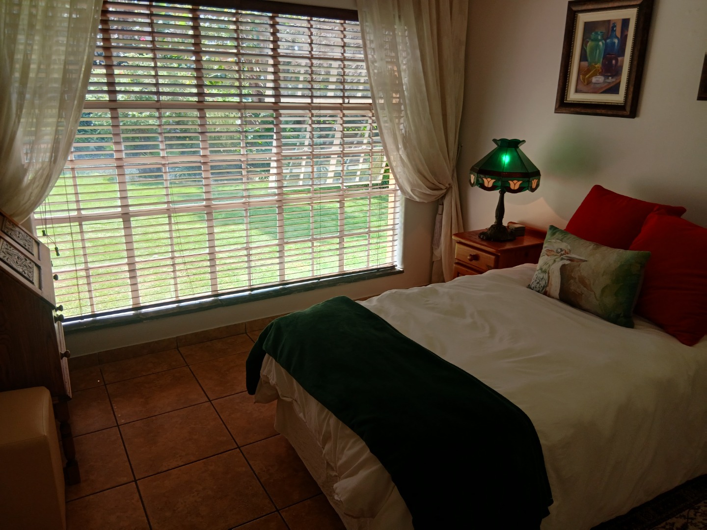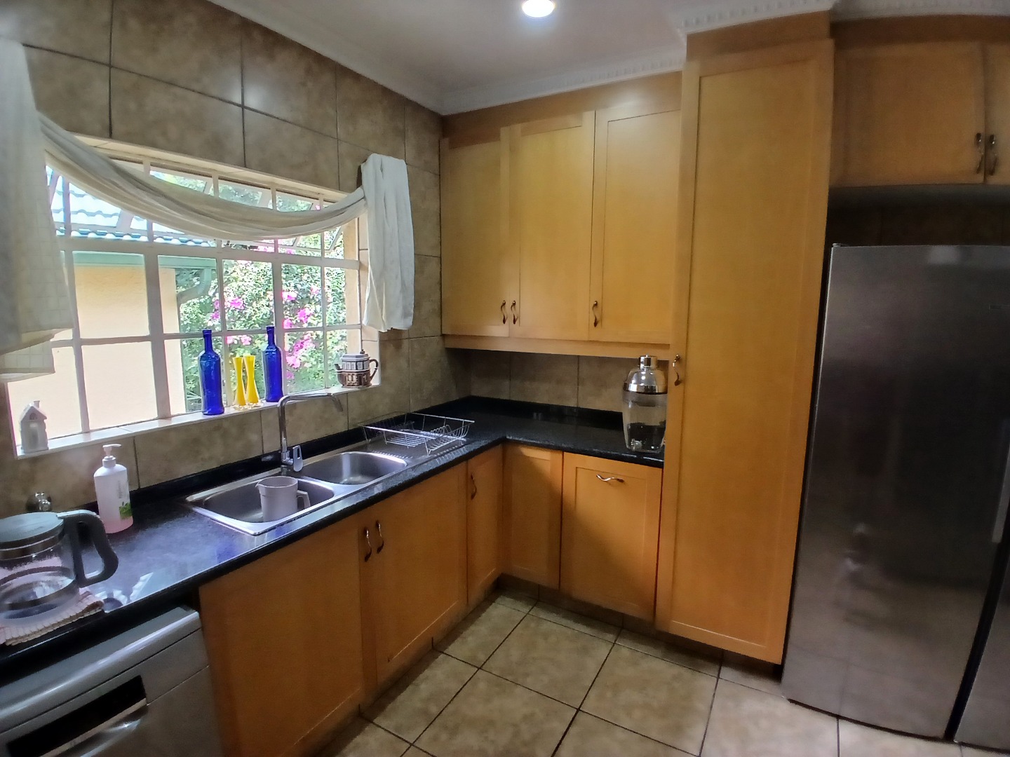 The beautifully landscaped garden creates a private oasis, featuring a sparkling swimming pool and a thatched, enclosed thatched lapa, perfect for entertaining or relaxing weekends.