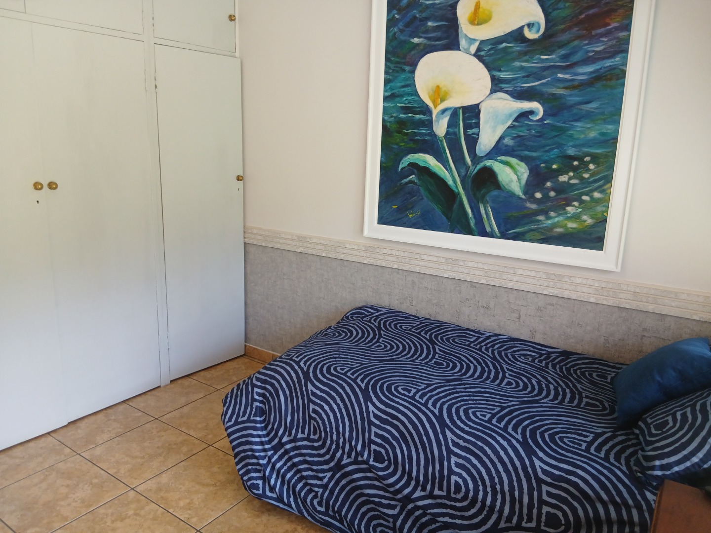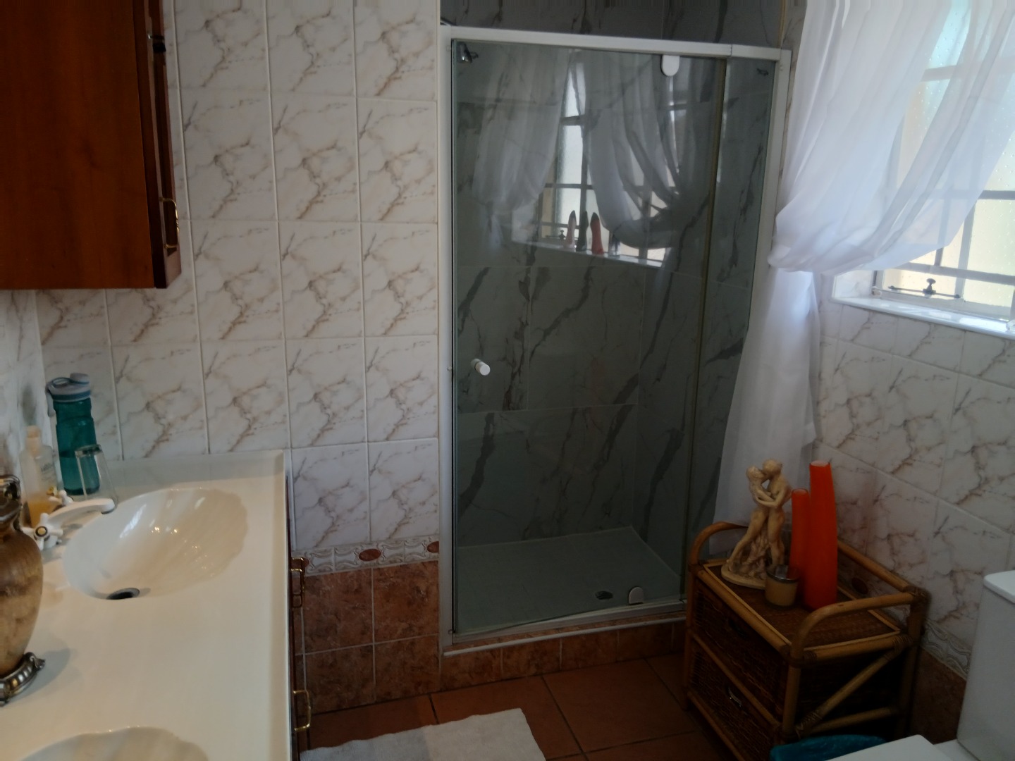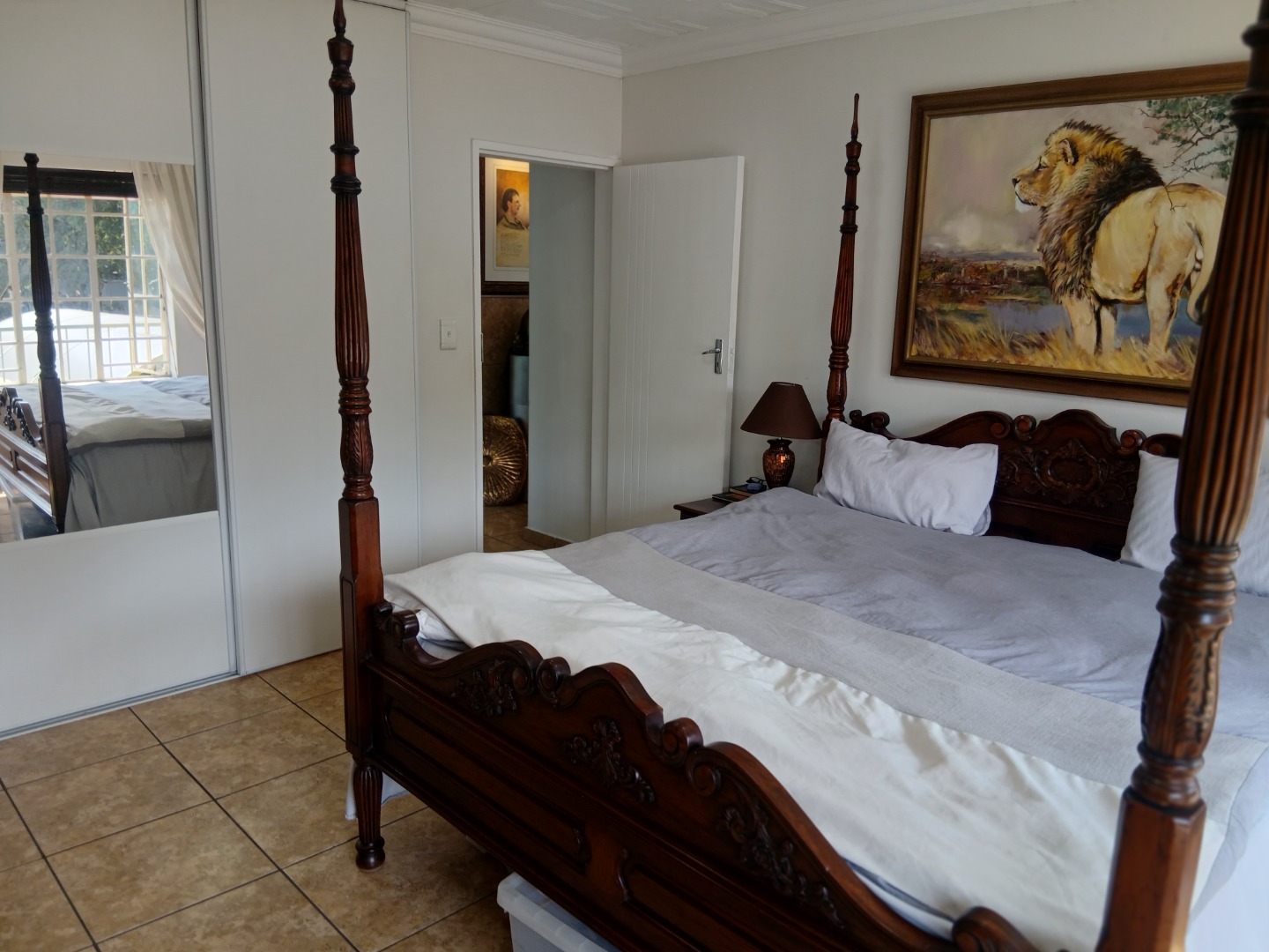 Upstairs is a luxurious main bedroom with walk-in closet and full en-suite bathroom. The second spacious bedroom has space for a king size bed and built in cupboards. An additional modern bathroom service the upstairs room and study.