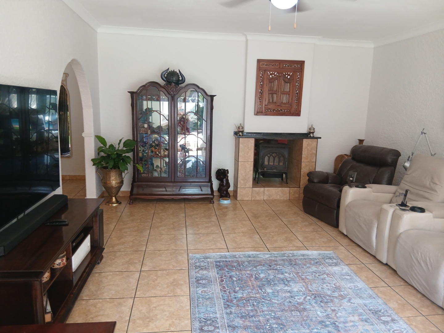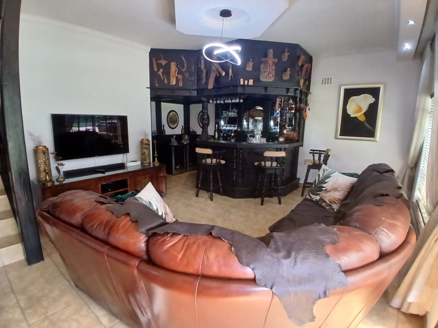 Inside the Home is a welcoming recreational room with a built-in bar, formal lounge and a separate large television room with a fireplace.