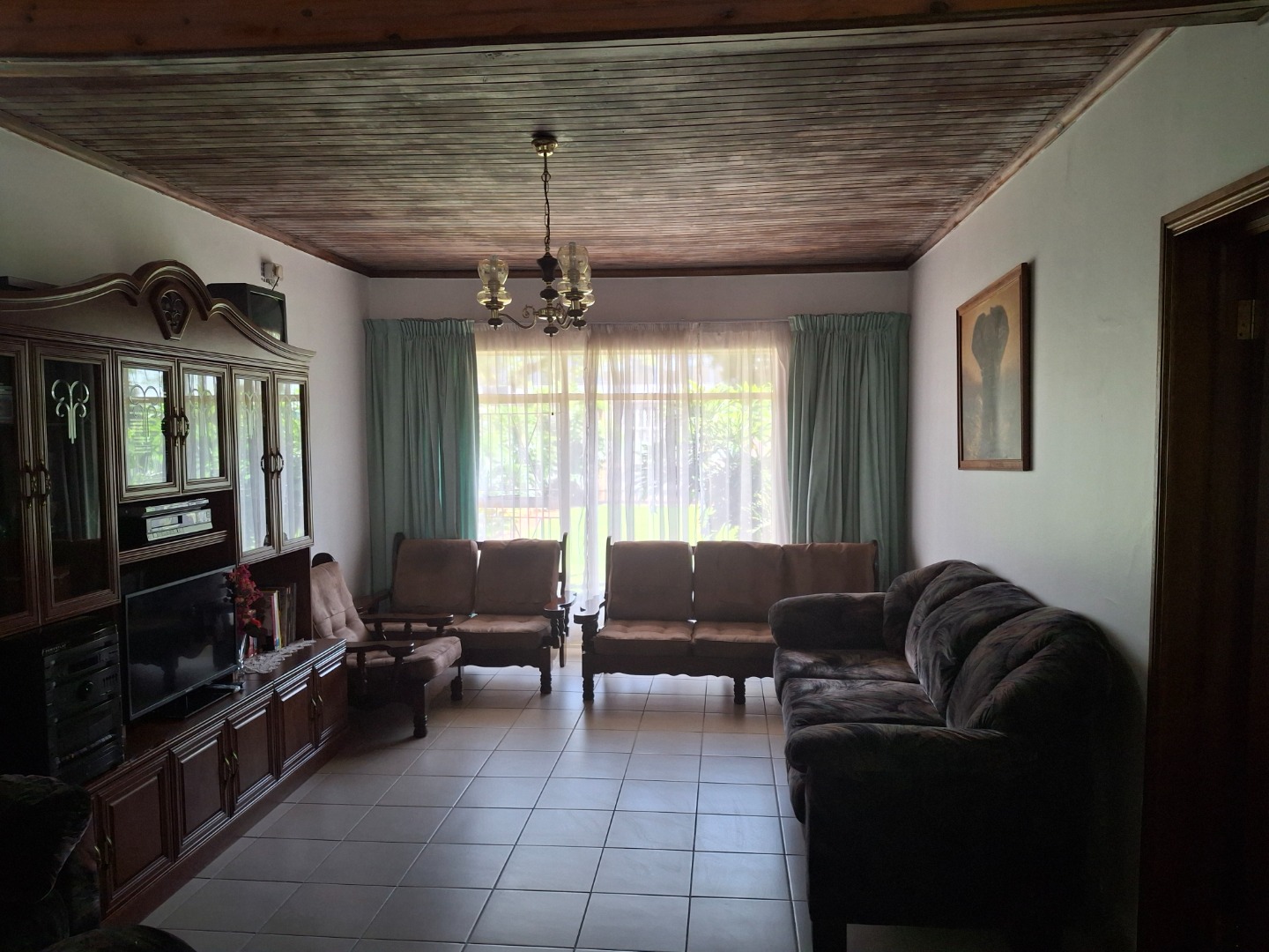 Upon entering through the welcoming entrance hall, you are greeted by generously proportioned rooms throughout. Each of the four bedrooms is spacious, tiled, and features ample built-in cupboards, ensuring comfort and practical storage solutions. The home boasts two well-appointed bathrooms, including a modern en-suite, both finished with contemporary tiling to enhance family living.