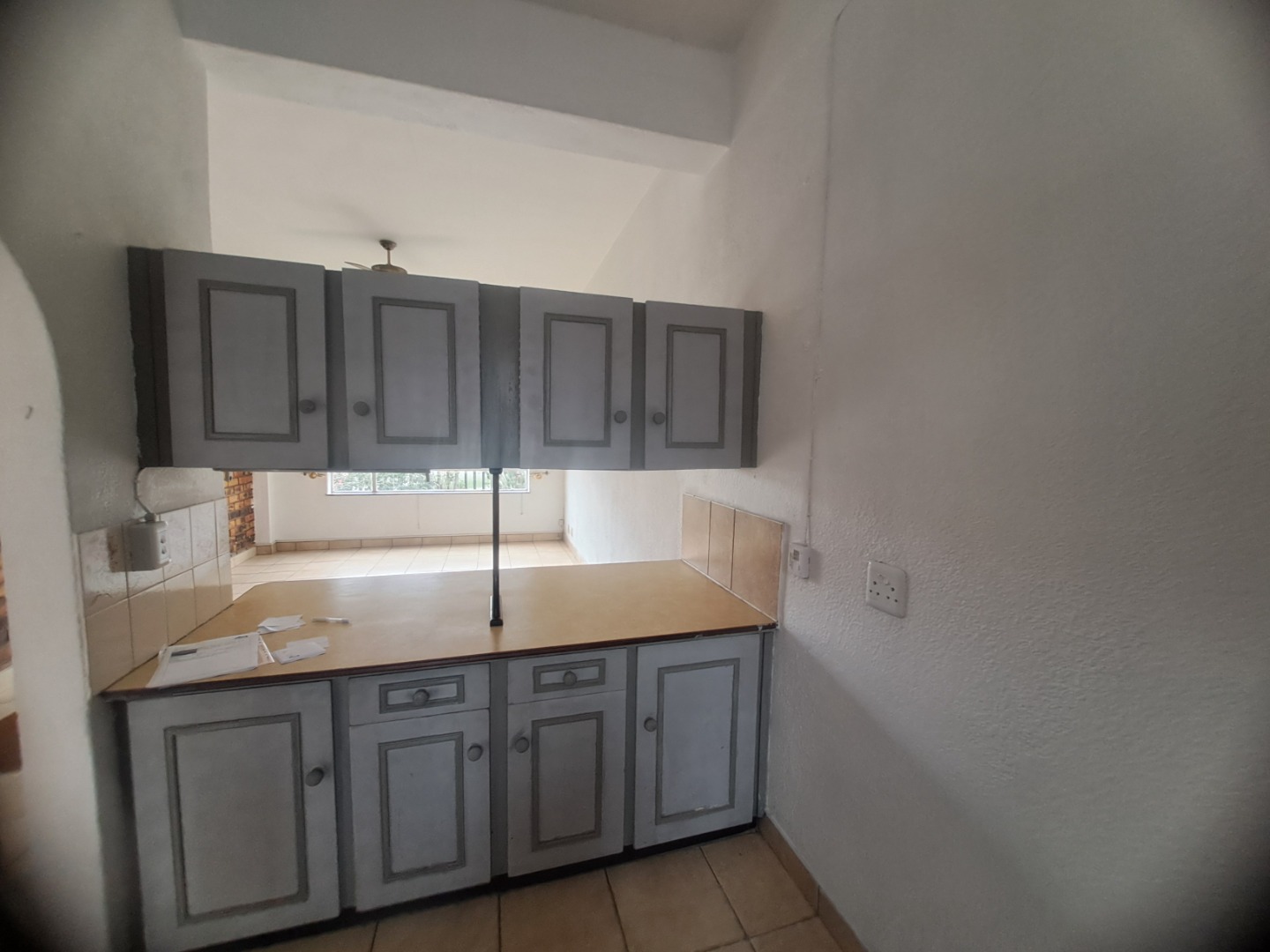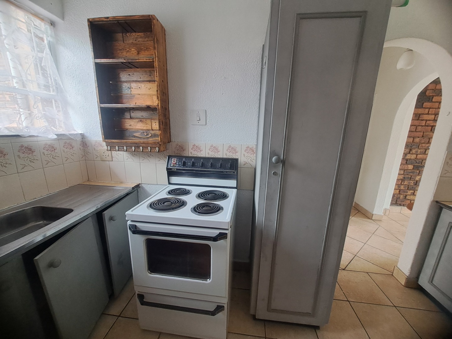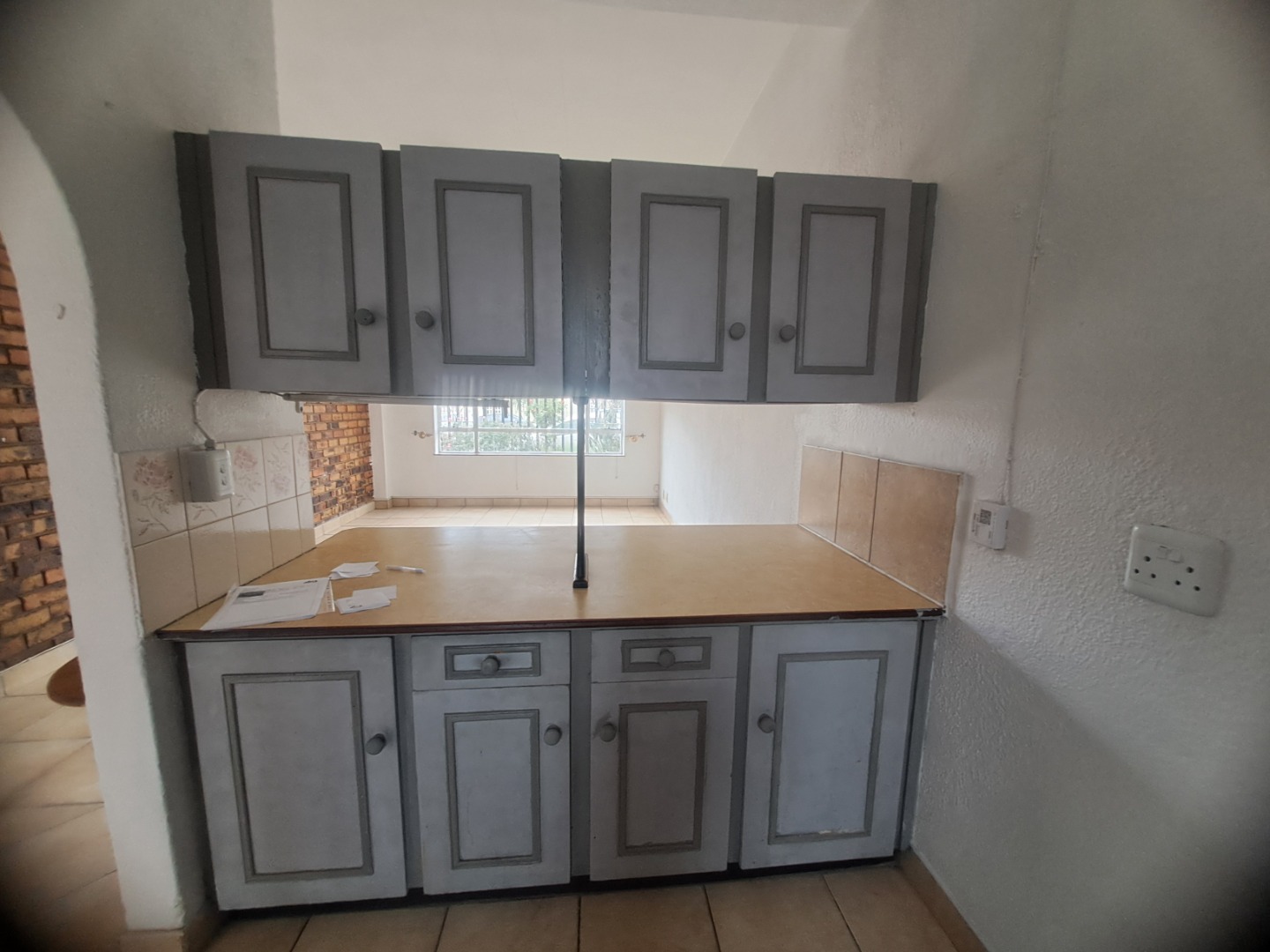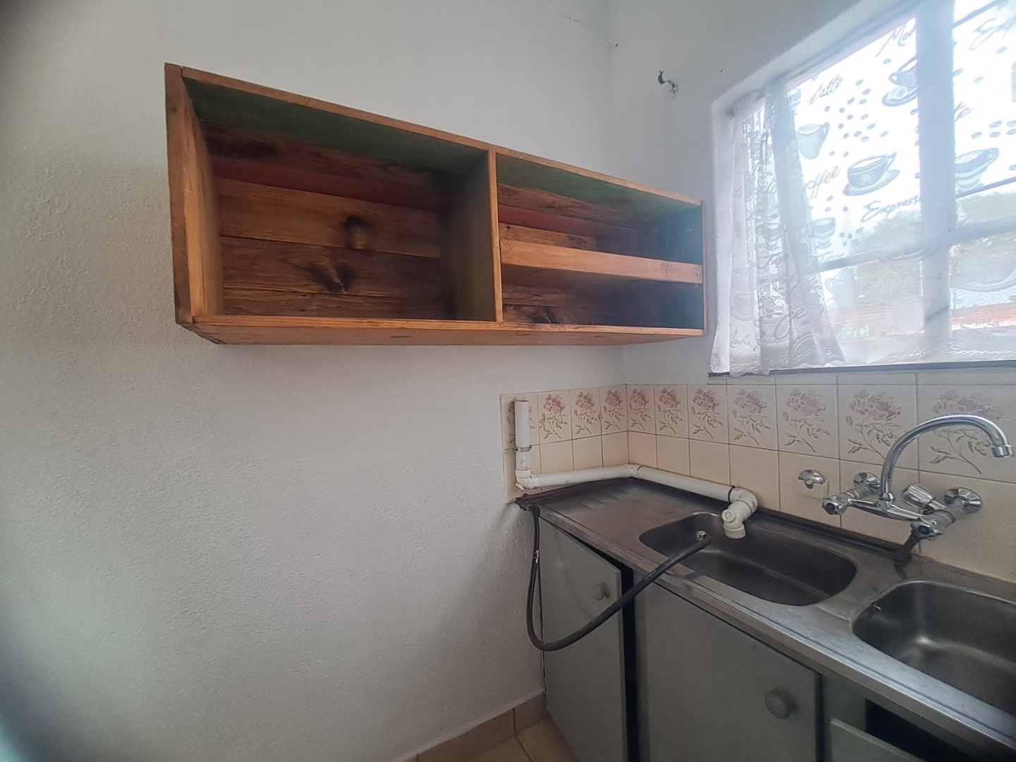Inside this home is to an open-plan living vibes, with a kitchen and lounge. The kitchen with vintage wood cabinetry, with a practical breakfast nook, making it ideal for both everyday meals. Tiled flooring ensures easy maintenance throughout. The residence features two neat bedrooms with built-in wardrobes, a single bathroom, with a bath, basin and a toilet.