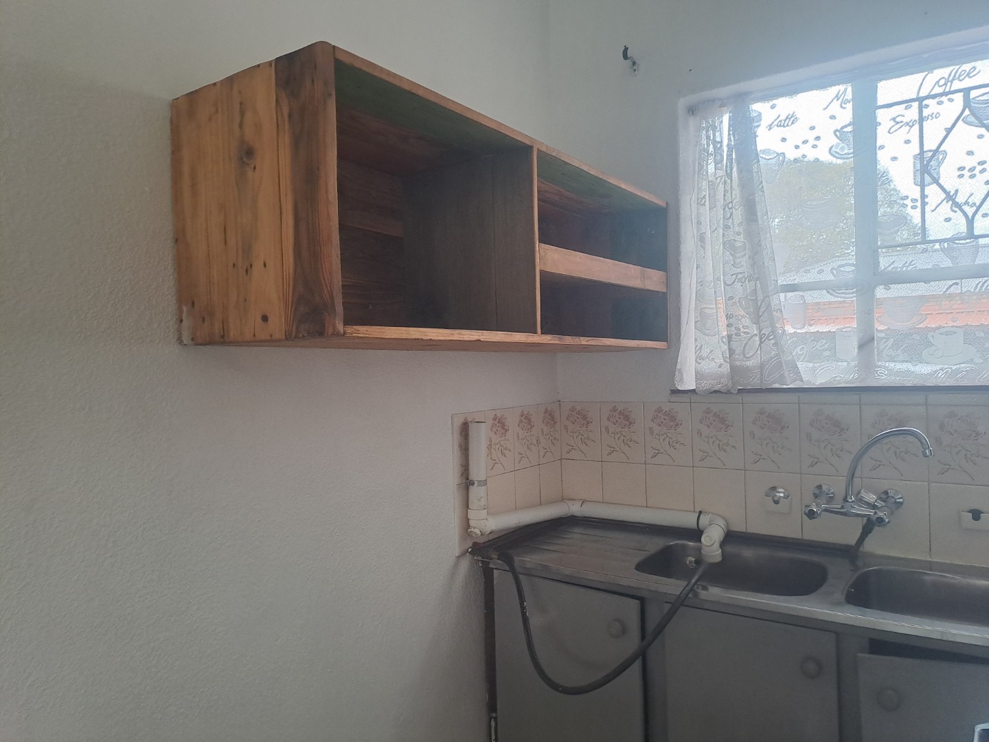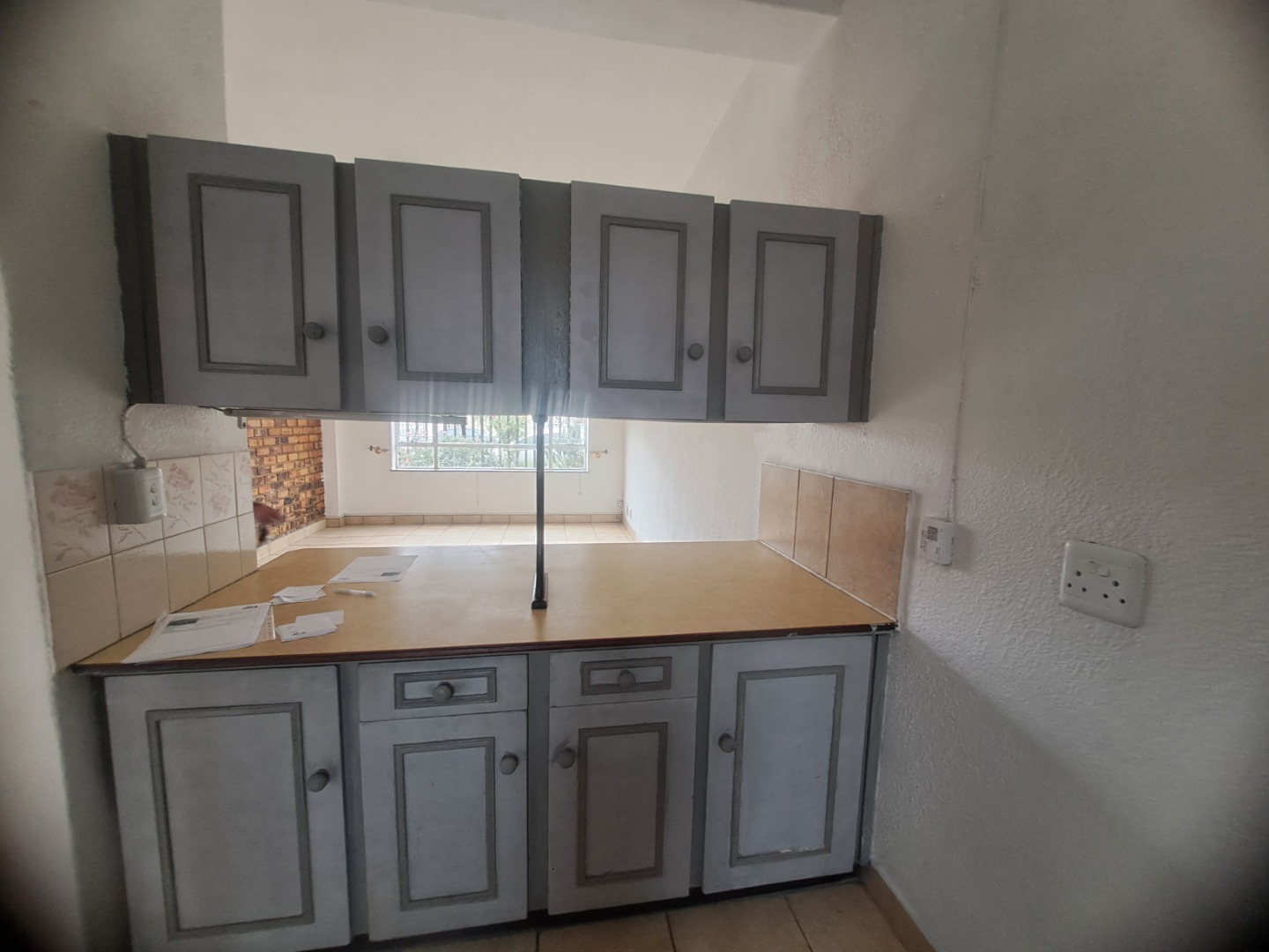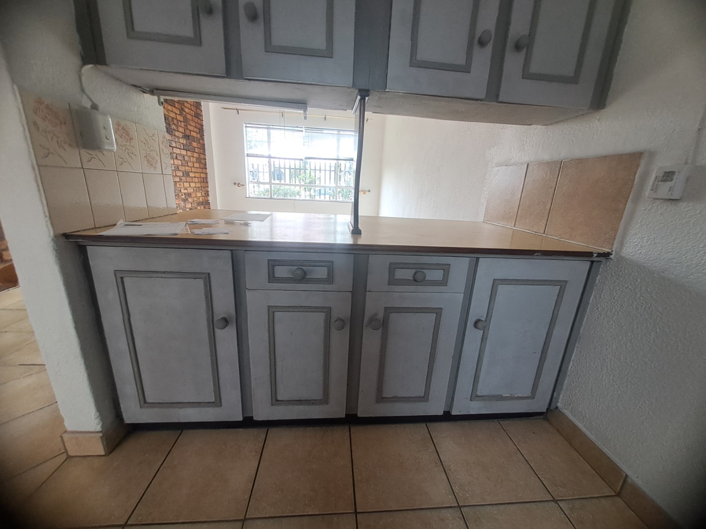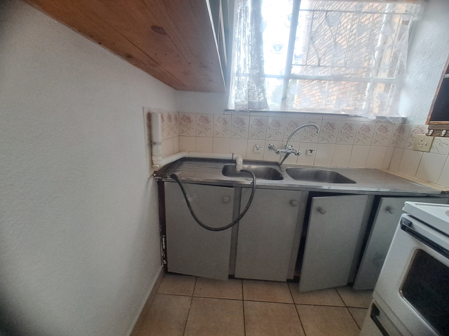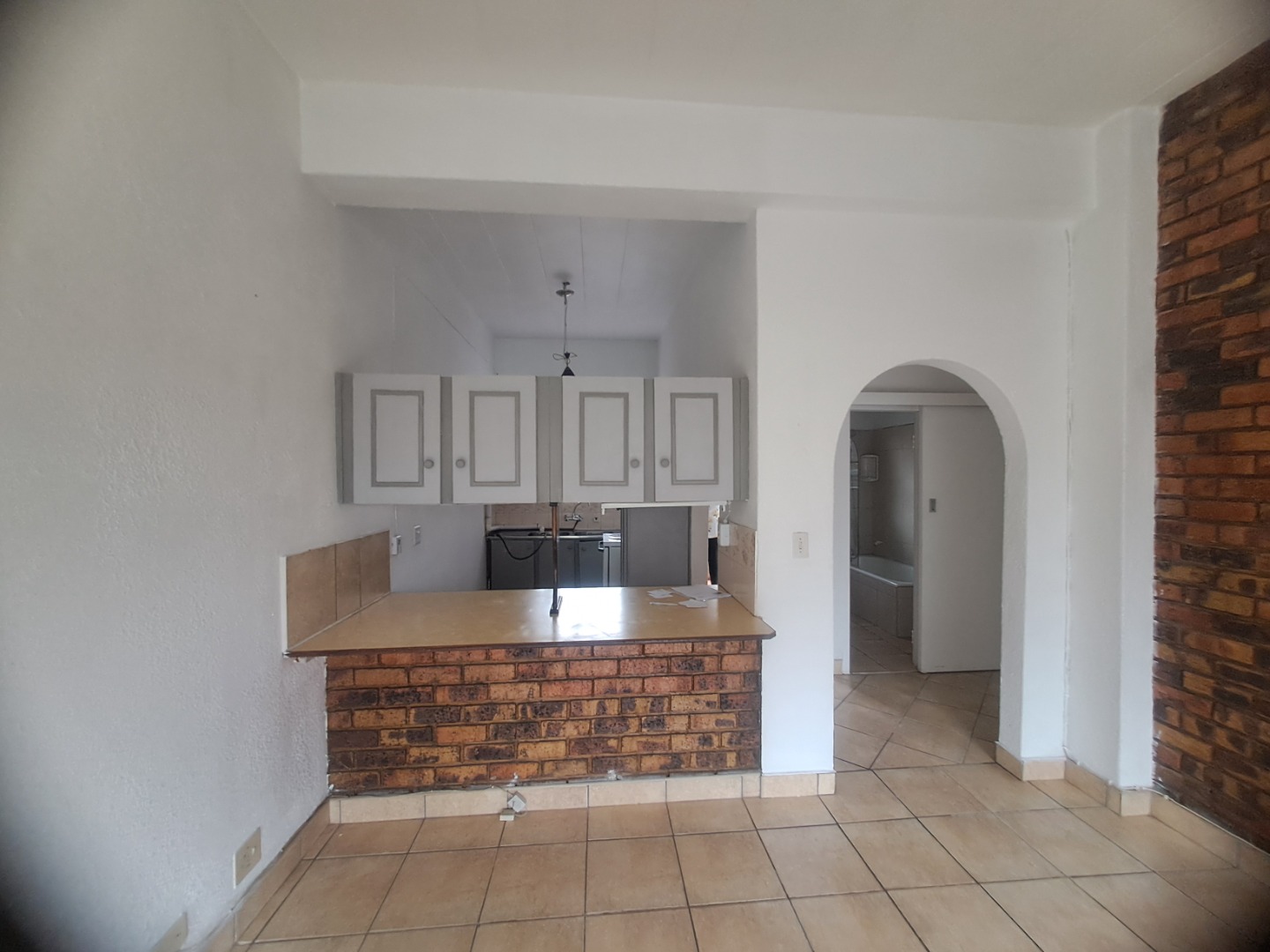 Inside this home is to an open-plan living vibes, with a kitchen and lounge. The kitchen with vintage wood cabinetry, with a practical breakfast nook, making it ideal for both everyday meals. Tiled flooring ensures easy maintenance throughout. The residence features two neat bedrooms with built-in wardrobes, a single bathroom, with a bath, basin and a toilet.