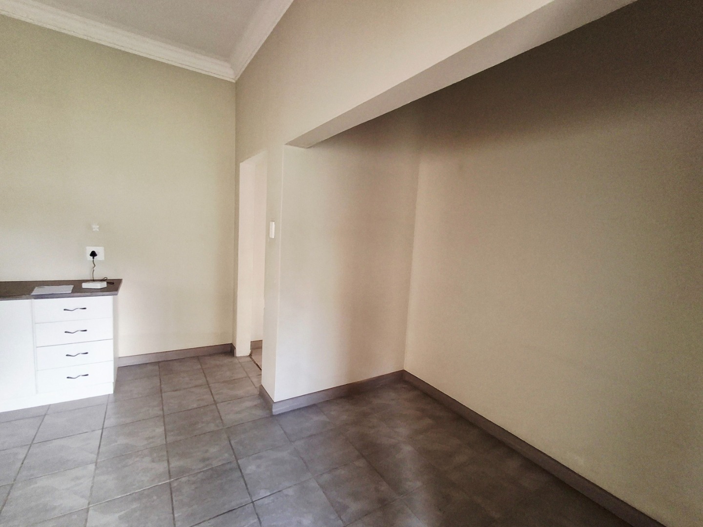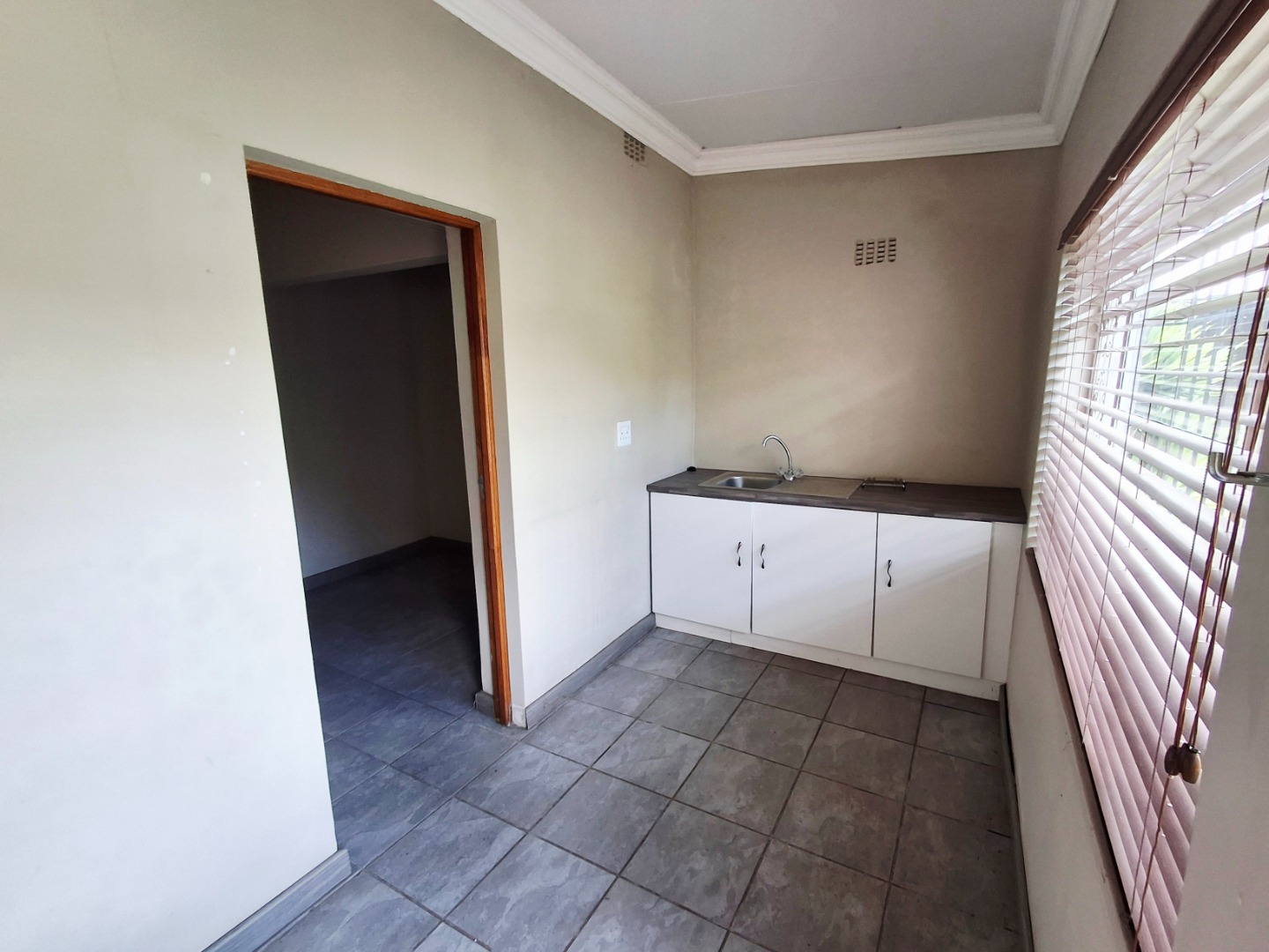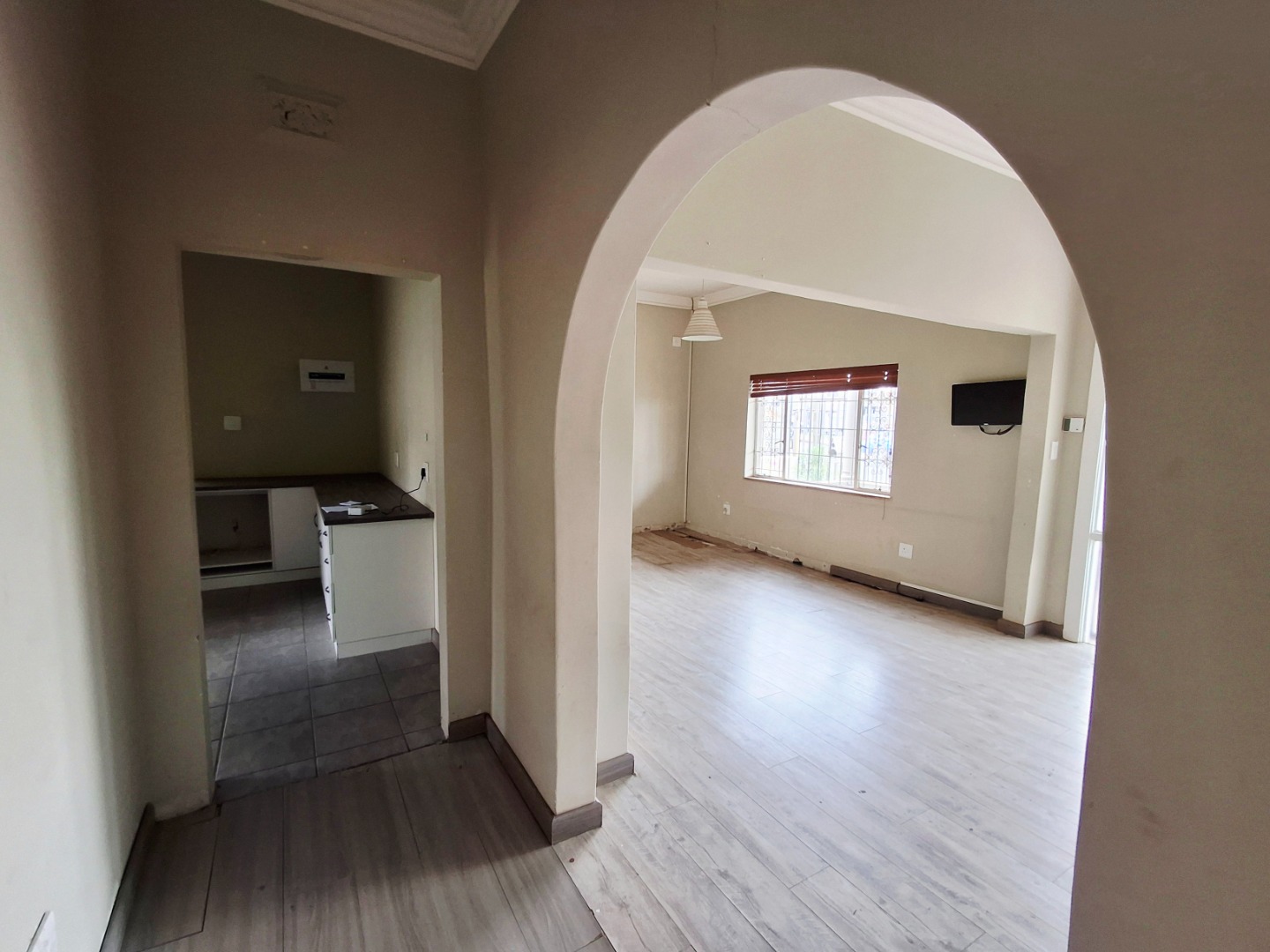 Discover this inviting 2-bedroom, 1-bathroom residence nestled in the suburban heart of Alberton North, Alberton, South Africa. The property, spanning a generous 496 sqm erf with a 222 sqm floor size, offers a blend of comfort and practicality. The interior features a welcoming lounge, a functional kitchen, and a versatile layout with modern laminate and tiled flooring, complemented by neutral walls and elegant crown molding throughout. Security is enhanced with a covered porch, access gate, burglar bars, and a totally walled perimeter, ensuring peace of mind. A notable highlight is the potential for a flatlet, complete with a kitchenette, offering flexibility for extended family or rental income. Enjoy outdoor living with a private garden and patio, alongside convenient open parking and a driveway. Fibre connectivity is available, catering to modern lifestyle needs. Pets are allowed, making this a perfect family home.