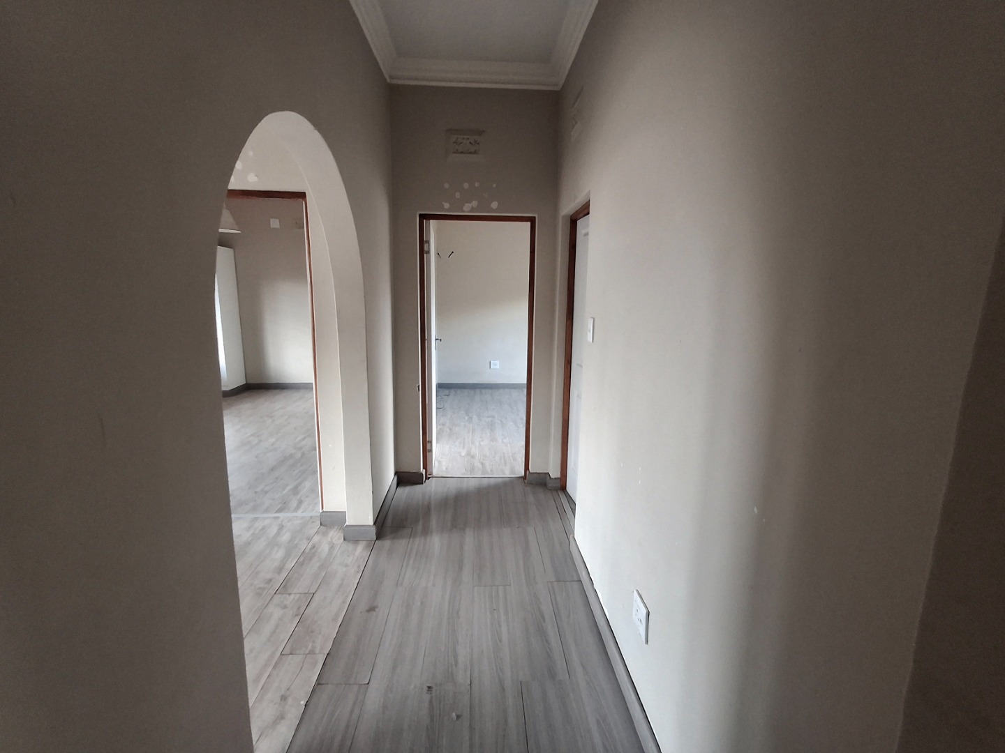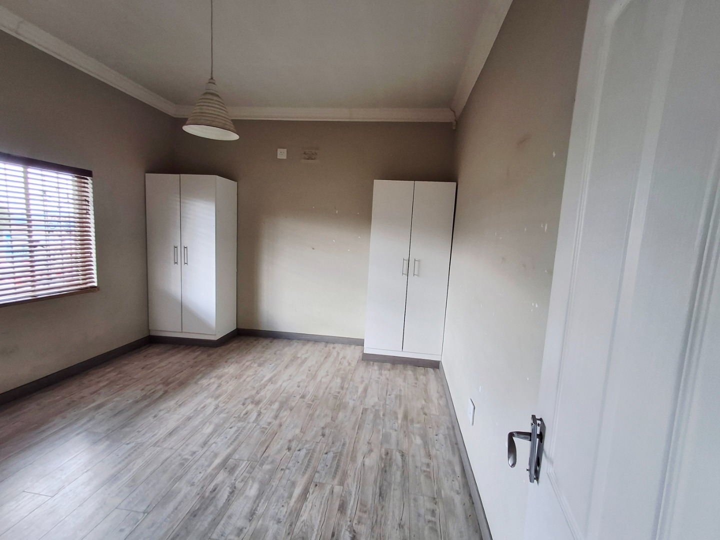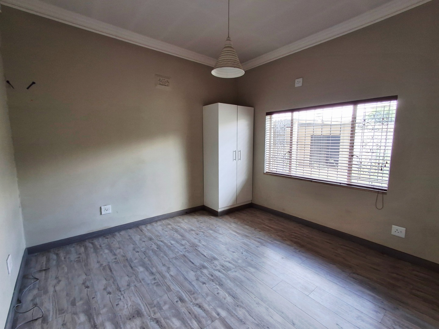 Discover this inviting 2-bedroom, 1-bathroom residence nestled in the suburban heart of Alberton North, Alberton, South Africa. The property, spanning a generous 496 sqm erf with a 222 sqm floor size, offers a blend of comfort and practicality. The interior features a welcoming lounge, a functional kitchen, and a versatile layout with modern laminate and tiled flooring, complemented by neutral walls and elegant crown molding throughout. Security is enhanced with a covered porch, access gate, burglar bars, and a totally walled perimeter, ensuring peace of mind. A notable highlight is the potential for a flatlet, complete with a kitchenette, offering flexibility for extended family or rental income. Enjoy outdoor living with a private garden and patio, alongside convenient open parking and a driveway. Fibre connectivity is available, catering to modern lifestyle needs. Pets are allowed, making this a perfect family home.