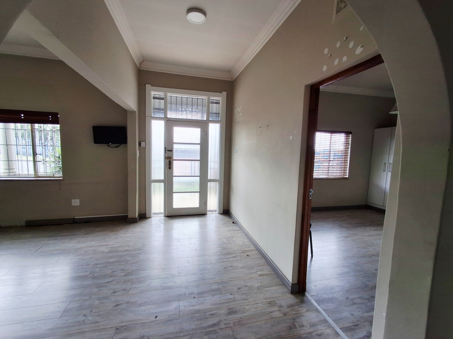 Discover this inviting 2-bedroom, 1-bathroom residence nestled in the suburban heart of Alberton North, Alberton, South Africa. The property, spanning a generous 496 sqm erf with a 222 sqm floor size, offers a blend of comfort and practicality. The interior features a welcoming lounge, a functional kitchen, and a versatile layout with modern laminate and tiled flooring, complemented by neutral walls and elegant crown molding throughout. Security is enhanced with a covered porch, access gate, burglar bars, and a totally walled perimeter, ensuring peace of mind. A notable highlight is the potential for a flatlet, complete with a kitchenette, offering flexibility for extended family or rental income. Enjoy outdoor living with a private garden and patio, alongside convenient open parking and a driveway. Fibre connectivity is available, catering to modern lifestyle needs. Pets are allowed, making this a perfect family home.