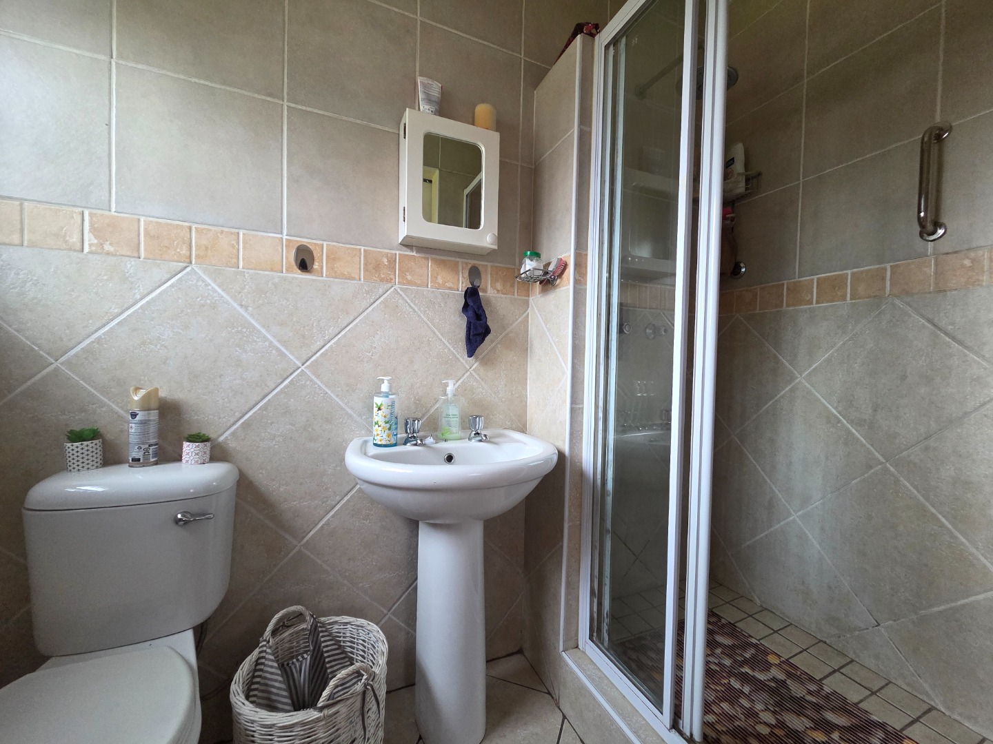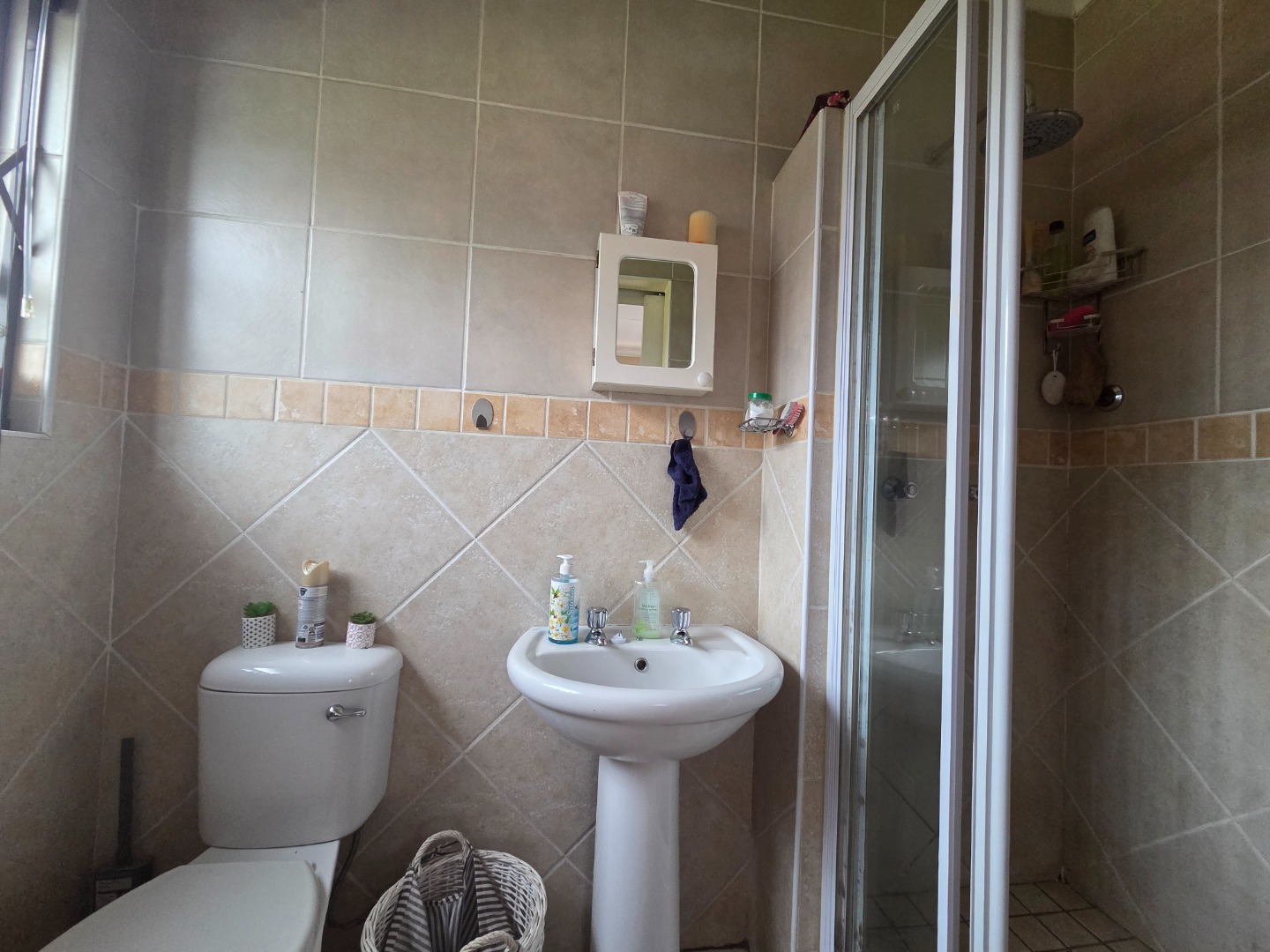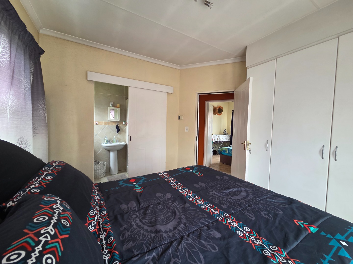 Downstairs, you’ll find a well-appointed kitchen with ample cupboard space, ideal for all your storage needs. The open-plan lounge and dining area create a warm and inviting atmosphere, flowing seamlessly onto a covered patio with a built-in braai — perfect for entertaining. The patio overlooks a small, low-maintenance garden, offering a cozy outdoor space to relax.