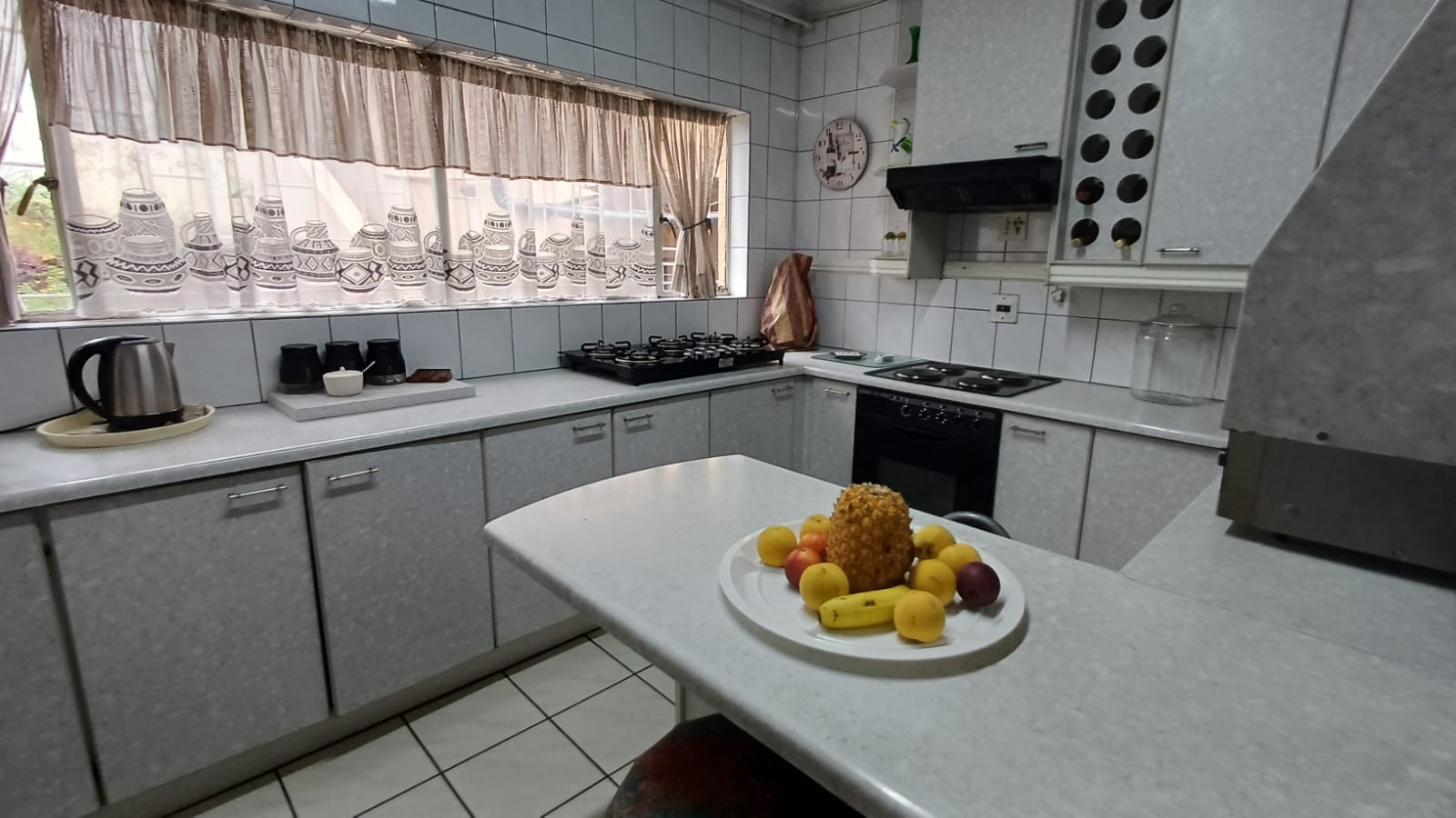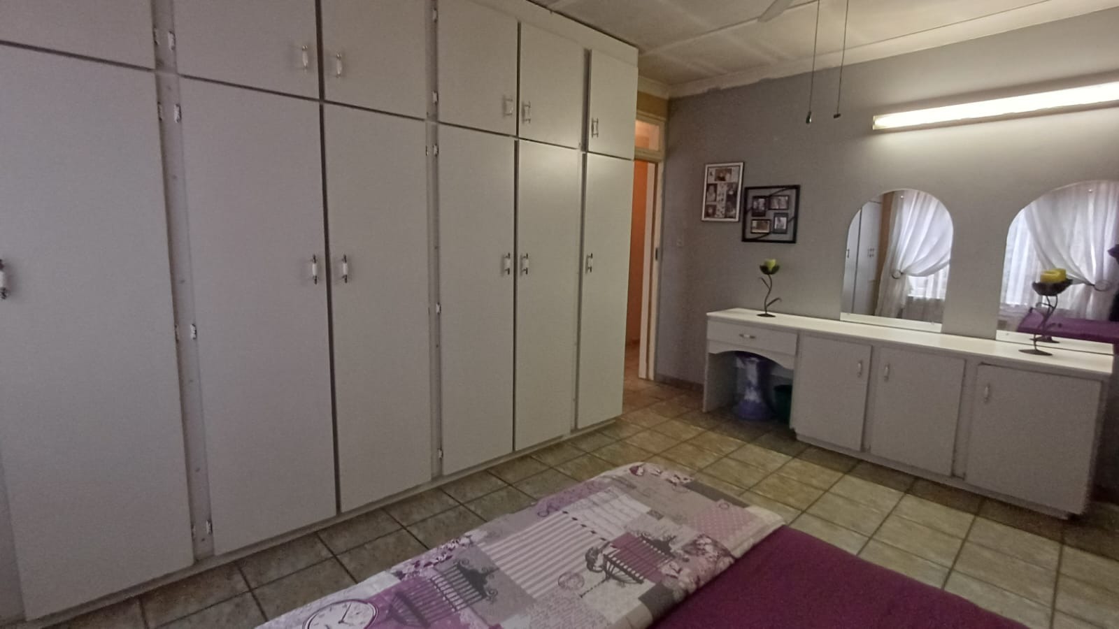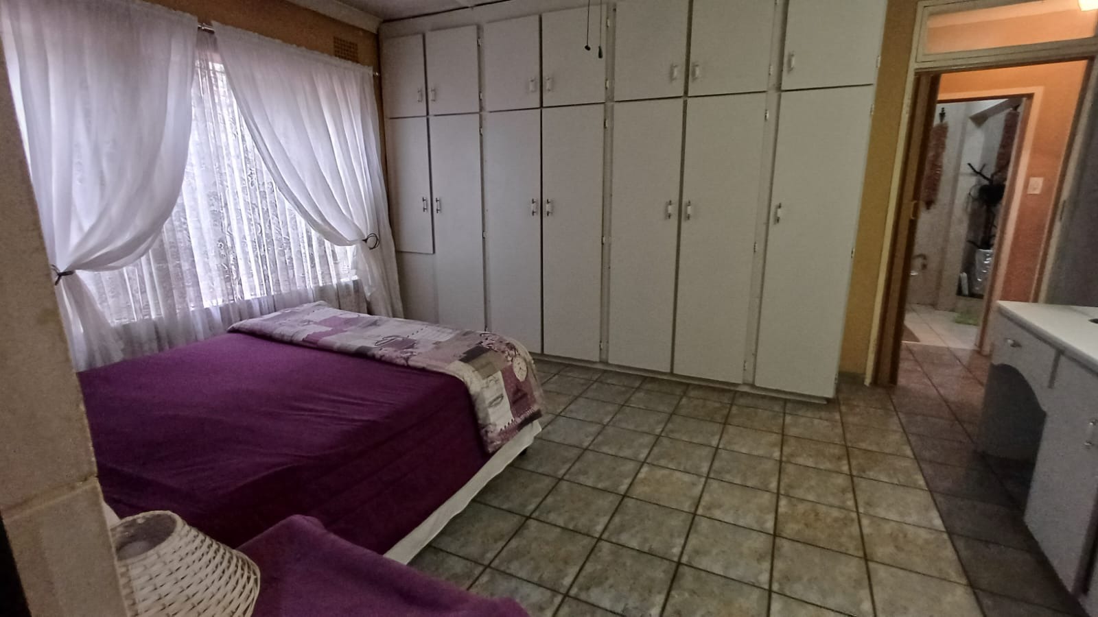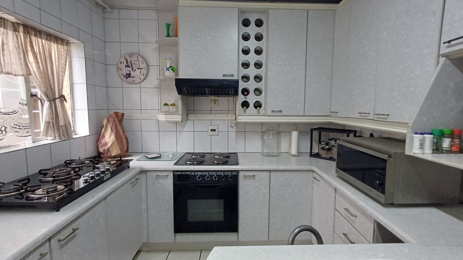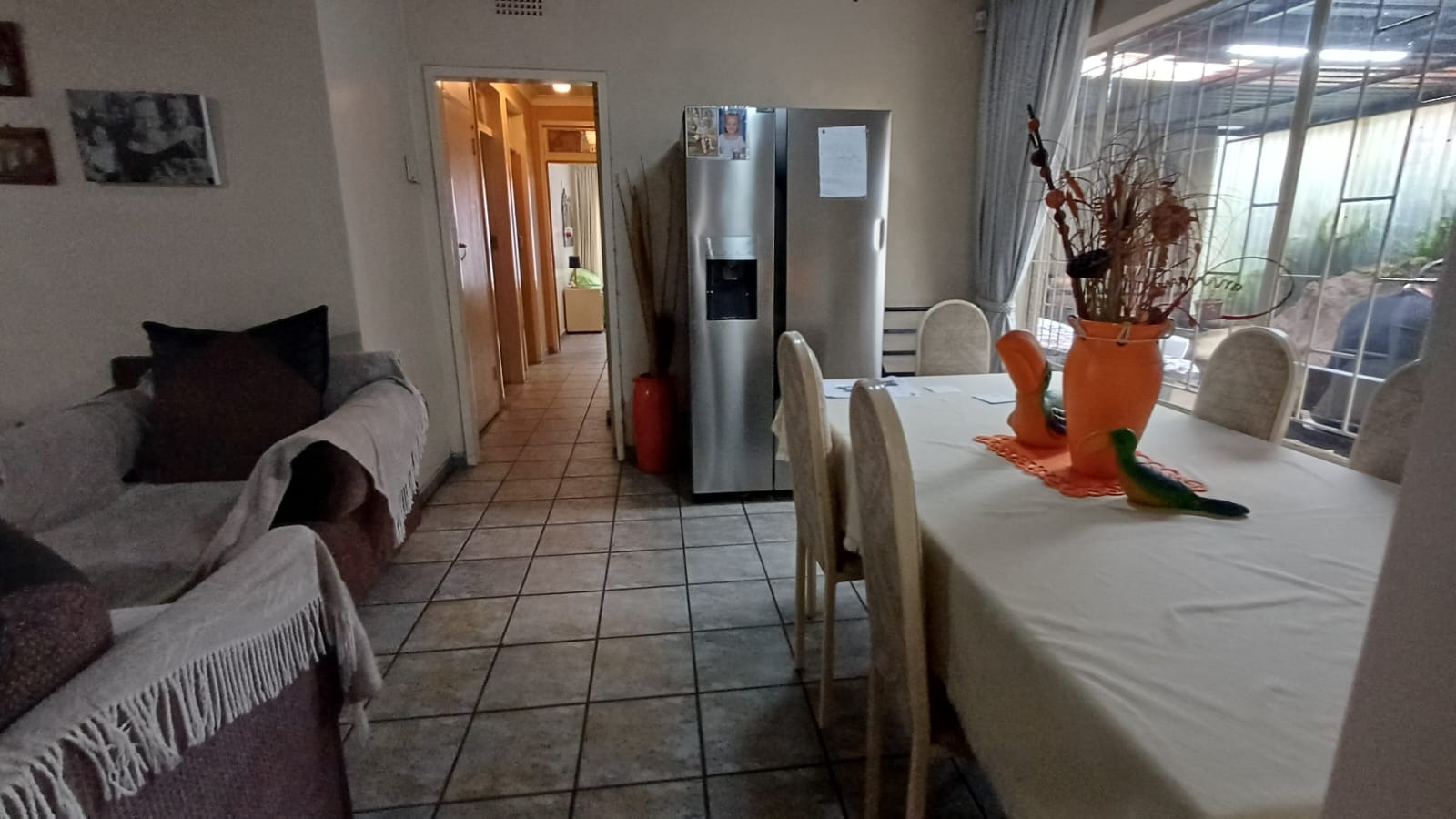 This substantial property in Alberton North presents a secure frontage with a fenced yard, prominent entrance gate, and burglar bars on windows. The exterior features a single-story main house complemented by a two-story structure housing three garages, offering significant utility. While some external finishes and the driveway show signs of age, the overall footprint on the 991 sqm erf is notable. The residence offers a generous interior layout, comprising two distinct lounges, a dedicated dining room, and an additional family TV room, providing versatile living spaces. The functional kitchen is equipped with extensive light-colored countertops, ample cabinetry including an integrated wine rack, and versatile cooking options with both gas and electric hobs alongside a built-in oven. A tiled backsplash and natural light enhance its practicality. A dedicated laundry area is also present. Accommodation includes five well-proportioned bedrooms, ensuring ample private space. The property features two bathrooms, one of which is an en-suite, providing convenience. A dedicated study offers an ideal environment for remote work or academic pursuits. Outdoor areas are designed for practicality and enjoyment, boasting three garages and two additional parking spaces. A patio provides an outdoor retreat, complemented by a garden, paving, and a functional driveway. Pets are permitted. Located in Alberton North, Alberton, South Africa, this property is ideally positioned within a well-established metropolitan and suburban area, providing convenient access to essential amenities and transport routes. Key Features: * Five Bedrooms * Two Bathrooms (One En-suite) * Three Garages & Two Parking Spaces * 991 sqm Erf Size * Two Lounges & Family TV Room * Dedicated Dining Room & Study * Functional Kitchen with Dual Hobs * Patio, Garden, Paving, and Driveway * Burglar Bars for Enhanced Security