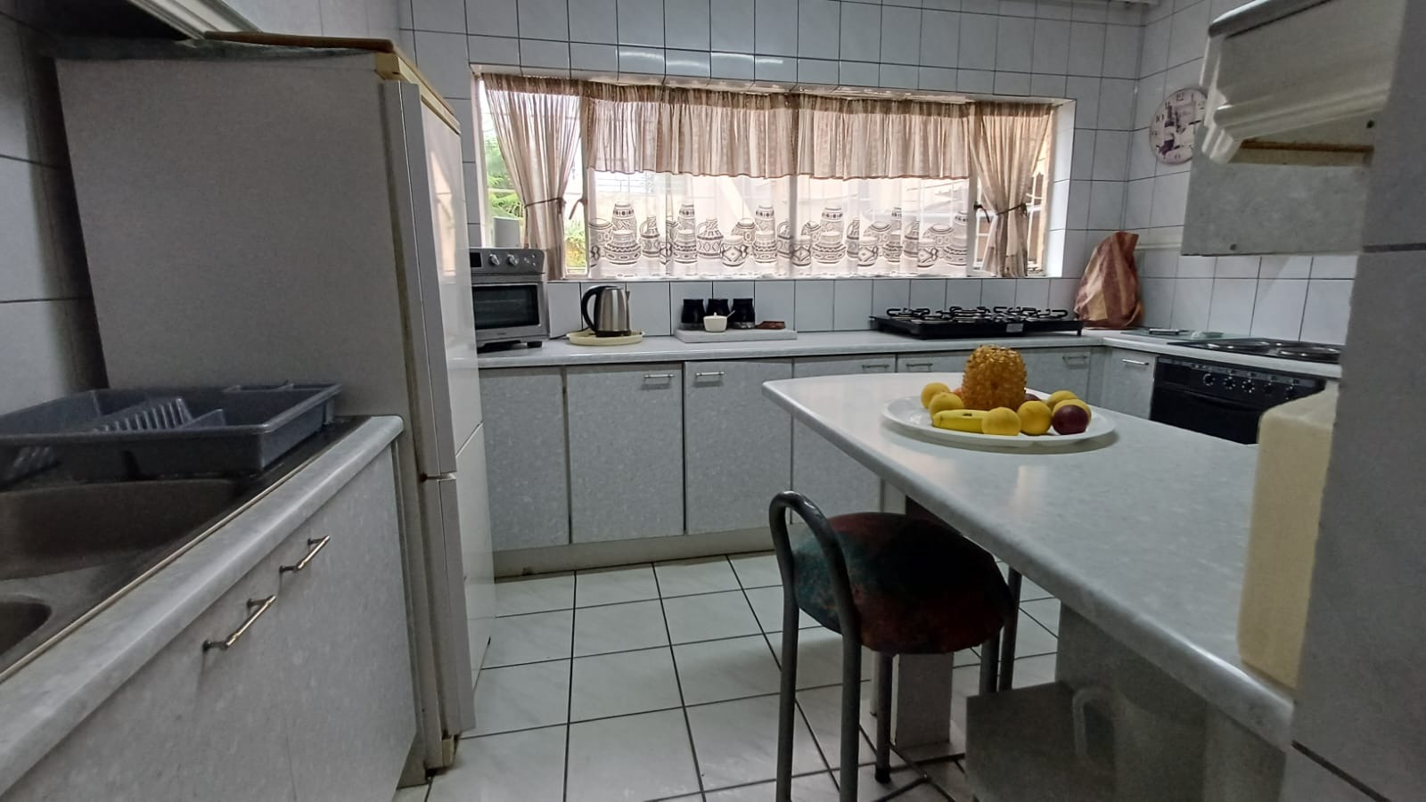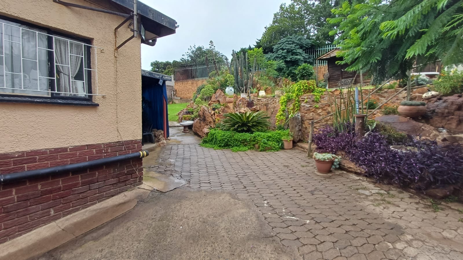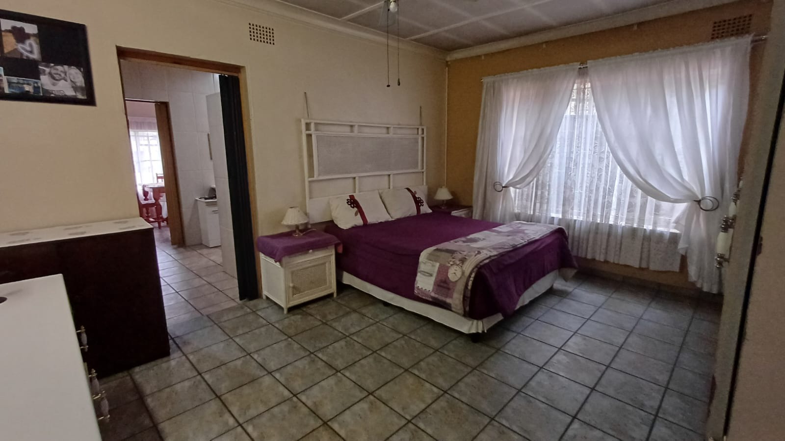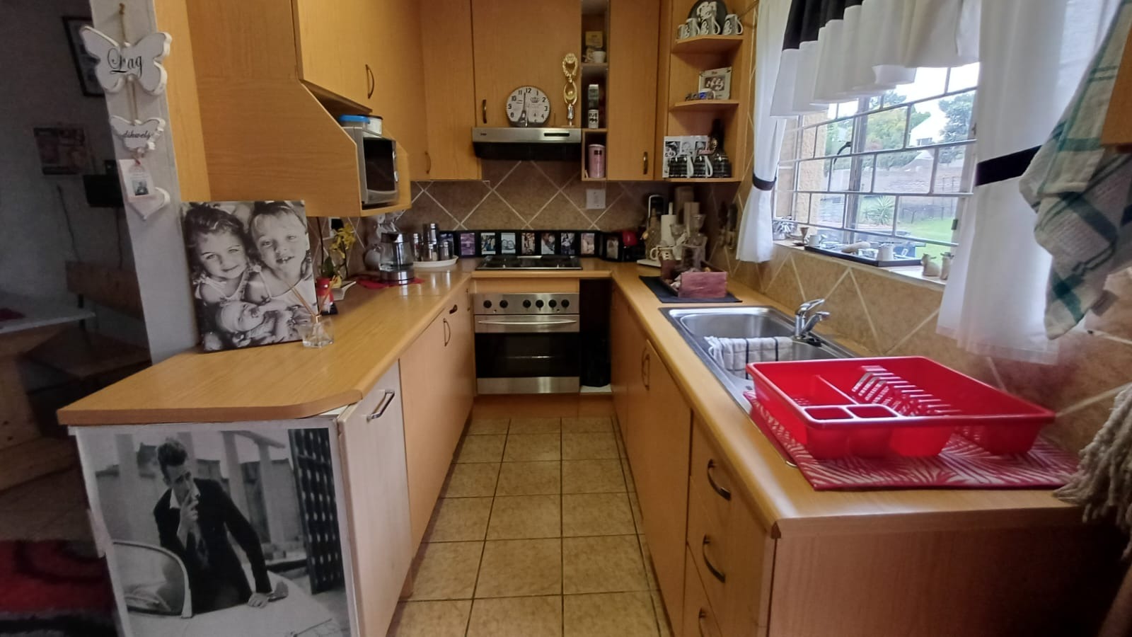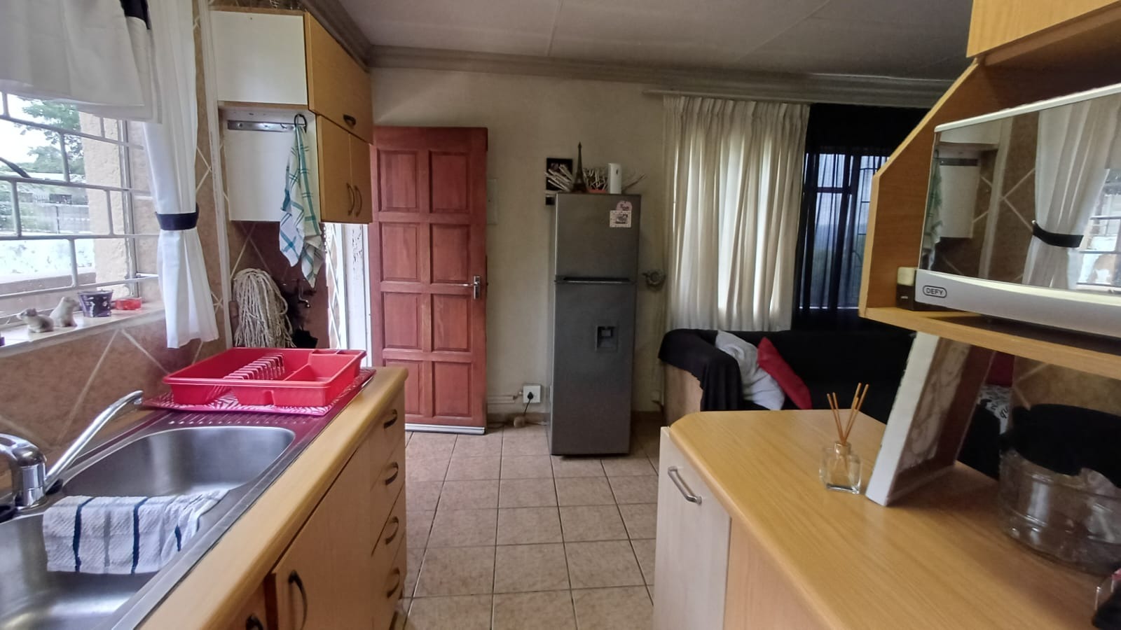 This substantial property in Alberton North presents a secure frontage with a fenced yard, prominent entrance gate, and burglar bars on windows. The exterior features a single-story main house complemented by a two-story structure housing three garages, offering significant utility. While some external finishes and the driveway show signs of age, the overall footprint on the 991 sqm erf is notable. The residence offers a generous interior layout, comprising two distinct lounges, a dedicated dining room, and an additional family TV room, providing versatile living spaces. The functional kitchen is equipped with extensive light-colored countertops, ample cabinetry including an integrated wine rack, and versatile cooking options with both gas and electric hobs alongside a built-in oven. A tiled backsplash and natural light enhance its practicality. A dedicated laundry area is also present. Accommodation includes five well-proportioned bedrooms, ensuring ample private space. The property features two bathrooms, one of which is an en-suite, providing convenience. A dedicated study offers an ideal environment for remote work or academic pursuits. Outdoor areas are designed for practicality and enjoyment, boasting three garages and two additional parking spaces. A patio provides an outdoor retreat, complemented by a garden, paving, and a functional driveway. Pets are permitted. Located in Alberton North, Alberton, South Africa, this property is ideally positioned within a well-established metropolitan and suburban area, providing convenient access to essential amenities and transport routes. Key Features: * Five Bedrooms * Two Bathrooms (One En-suite) * Three Garages & Two Parking Spaces * 991 sqm Erf Size * Two Lounges & Family TV Room * Dedicated Dining Room & Study * Functional Kitchen with Dual Hobs * Patio, Garden, Paving, and Driveway * Burglar Bars for Enhanced Security