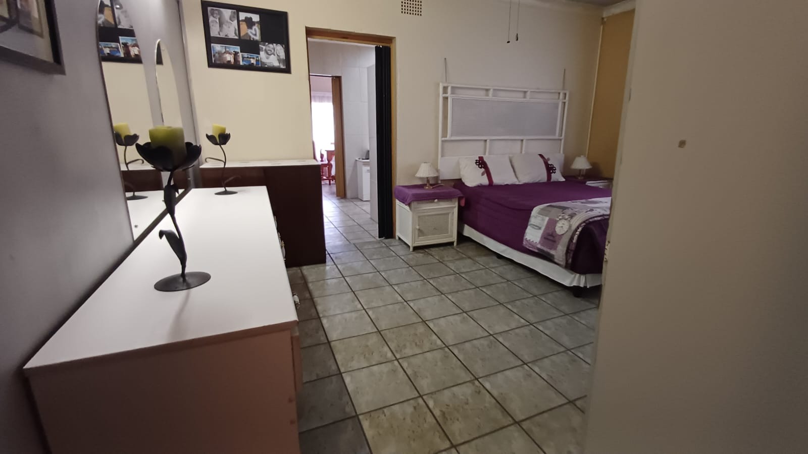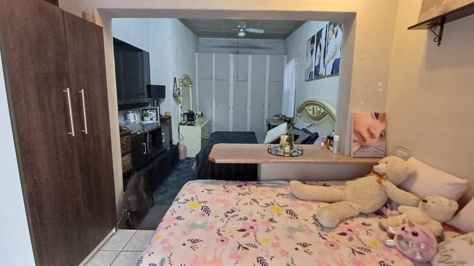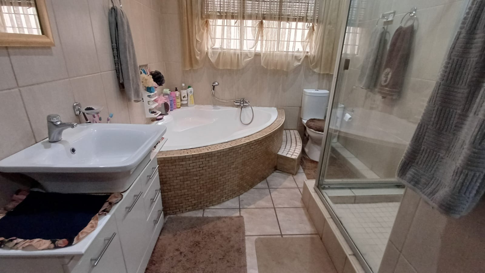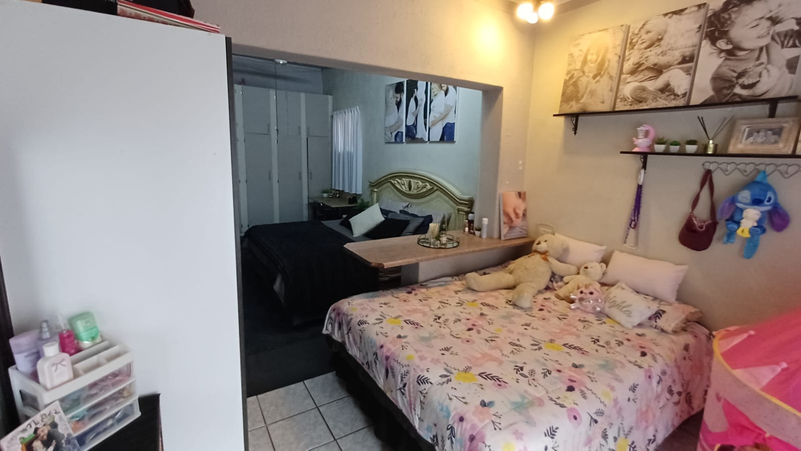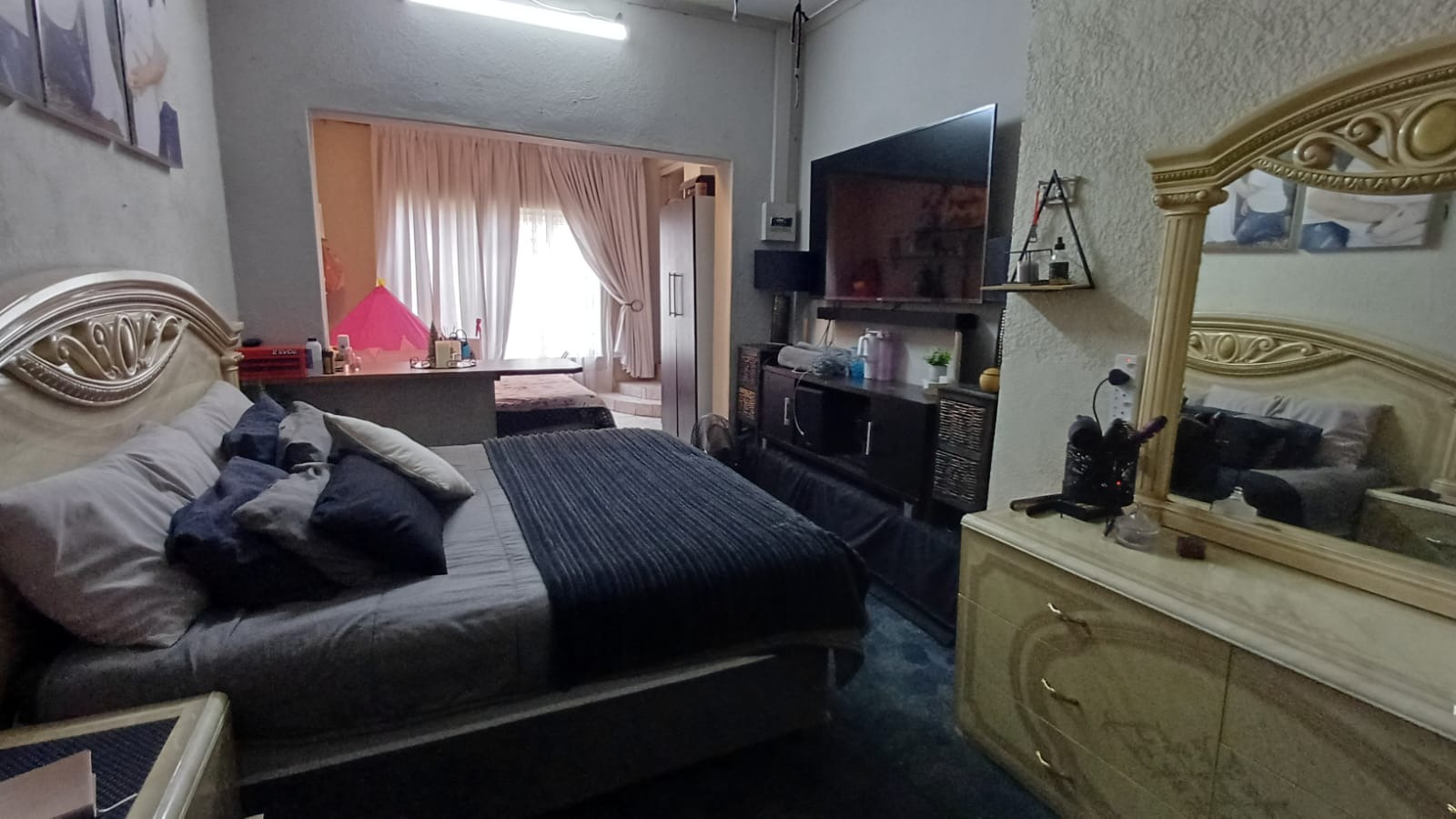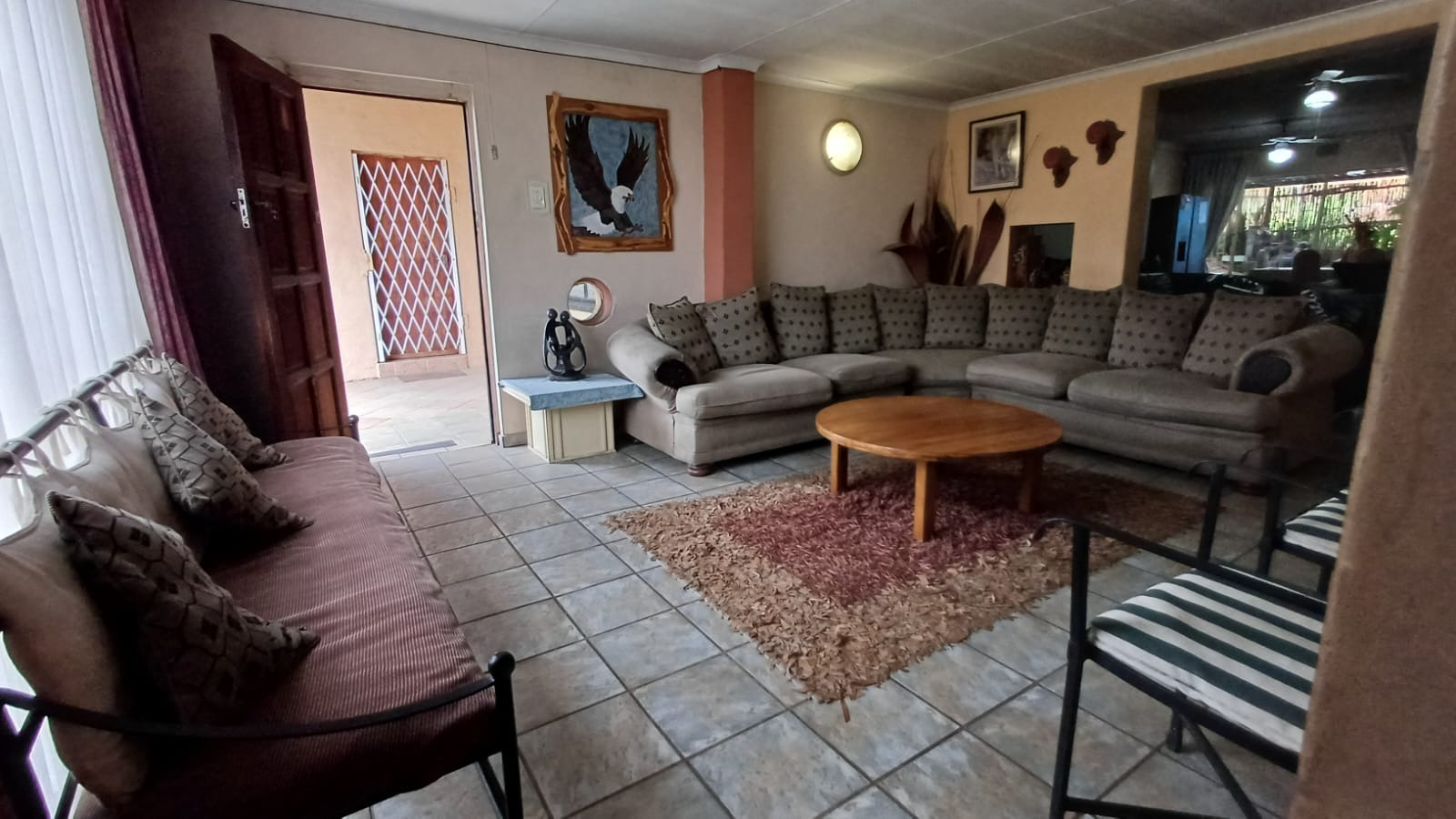 This substantial property in Alberton North presents a secure frontage with a fenced yard, prominent entrance gate, and burglar bars on windows. The exterior features a single-story main house complemented by a two-story structure housing three garages, offering significant utility. While some external finishes and the driveway show signs of age, the overall footprint on the 991 sqm erf is notable. The residence offers a generous interior layout, comprising two distinct lounges, a dedicated dining room, and an additional family TV room, providing versatile living spaces. The functional kitchen is equipped with extensive light-colored countertops, ample cabinetry including an integrated wine rack, and versatile cooking options with both gas and electric hobs alongside a built-in oven. A tiled backsplash and natural light enhance its practicality. A dedicated laundry area is also present. Accommodation includes five well-proportioned bedrooms, ensuring ample private space. The property features two bathrooms, one of which is an en-suite, providing convenience. A dedicated study offers an ideal environment for remote work or academic pursuits. Outdoor areas are designed for practicality and enjoyment, boasting three garages and two additional parking spaces. A patio provides an outdoor retreat, complemented by a garden, paving, and a functional driveway. Pets are permitted. Located in Alberton North, Alberton, South Africa, this property is ideally positioned within a well-established metropolitan and suburban area, providing convenient access to essential amenities and transport routes. Key Features: * Five Bedrooms * Two Bathrooms (One En-suite) * Three Garages & Two Parking Spaces * 991 sqm Erf Size * Two Lounges & Family TV Room * Dedicated Dining Room & Study * Functional Kitchen with Dual Hobs * Patio, Garden, Paving, and Driveway * Burglar Bars for Enhanced Security