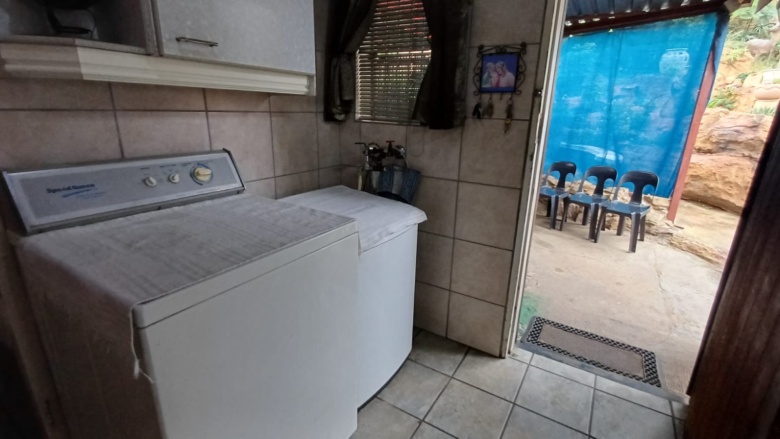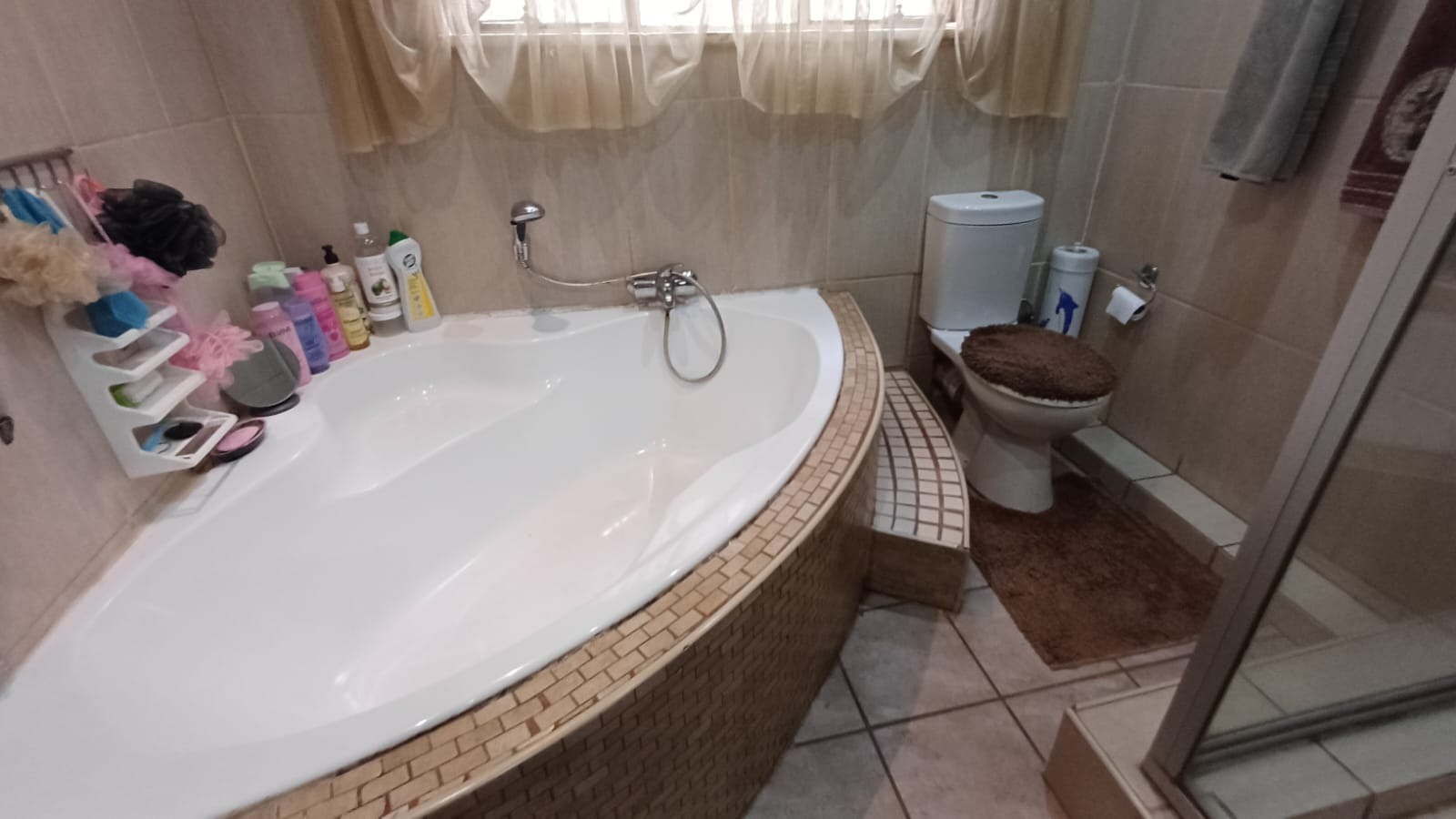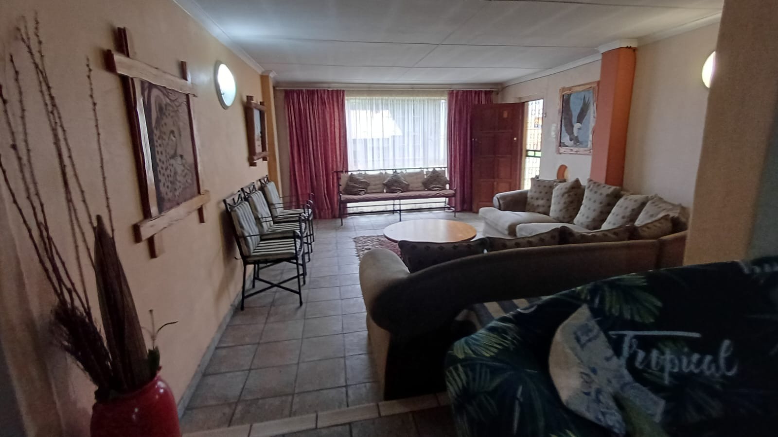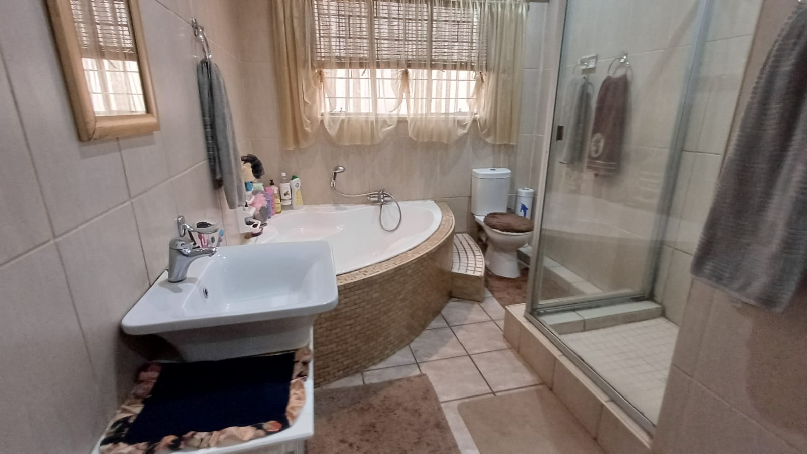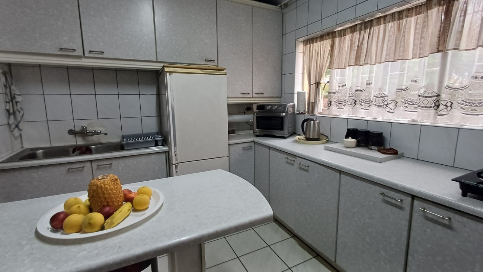 This substantial property in Alberton North presents a secure frontage with a fenced yard, prominent entrance gate, and burglar bars on windows. The exterior features a single-story main house complemented by a two-story structure housing three garages, offering significant utility. While some external finishes and the driveway show signs of age, the overall footprint on the 991 sqm erf is notable. The residence offers a generous interior layout, comprising two distinct lounges, a dedicated dining room, and an additional family TV room, providing versatile living spaces. The functional kitchen is equipped with extensive light-colored countertops, ample cabinetry including an integrated wine rack, and versatile cooking options with both gas and electric hobs alongside a built-in oven. A tiled backsplash and natural light enhance its practicality. A dedicated laundry area is also present. Accommodation includes five well-proportioned bedrooms, ensuring ample private space. The property features two bathrooms, one of which is an en-suite, providing convenience. A dedicated study offers an ideal environment for remote work or academic pursuits. Outdoor areas are designed for practicality and enjoyment, boasting three garages and two additional parking spaces. A patio provides an outdoor retreat, complemented by a garden, paving, and a functional driveway. Pets are permitted. Located in Alberton North, Alberton, South Africa, this property is ideally positioned within a well-established metropolitan and suburban area, providing convenient access to essential amenities and transport routes. Key Features: * Five Bedrooms * Two Bathrooms (One En-suite) * Three Garages & Two Parking Spaces * 991 sqm Erf Size * Two Lounges & Family TV Room * Dedicated Dining Room & Study * Functional Kitchen with Dual Hobs * Patio, Garden, Paving, and Driveway * Burglar Bars for Enhanced Security