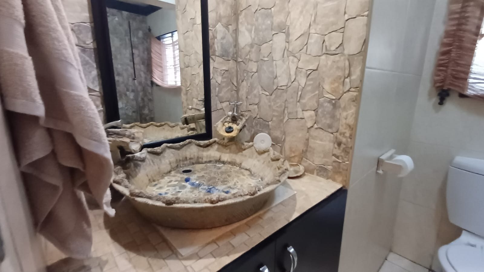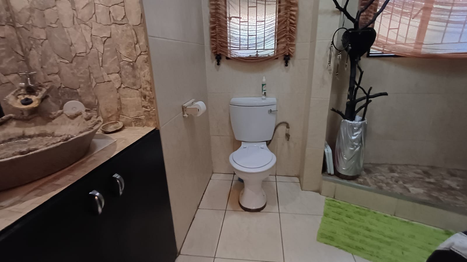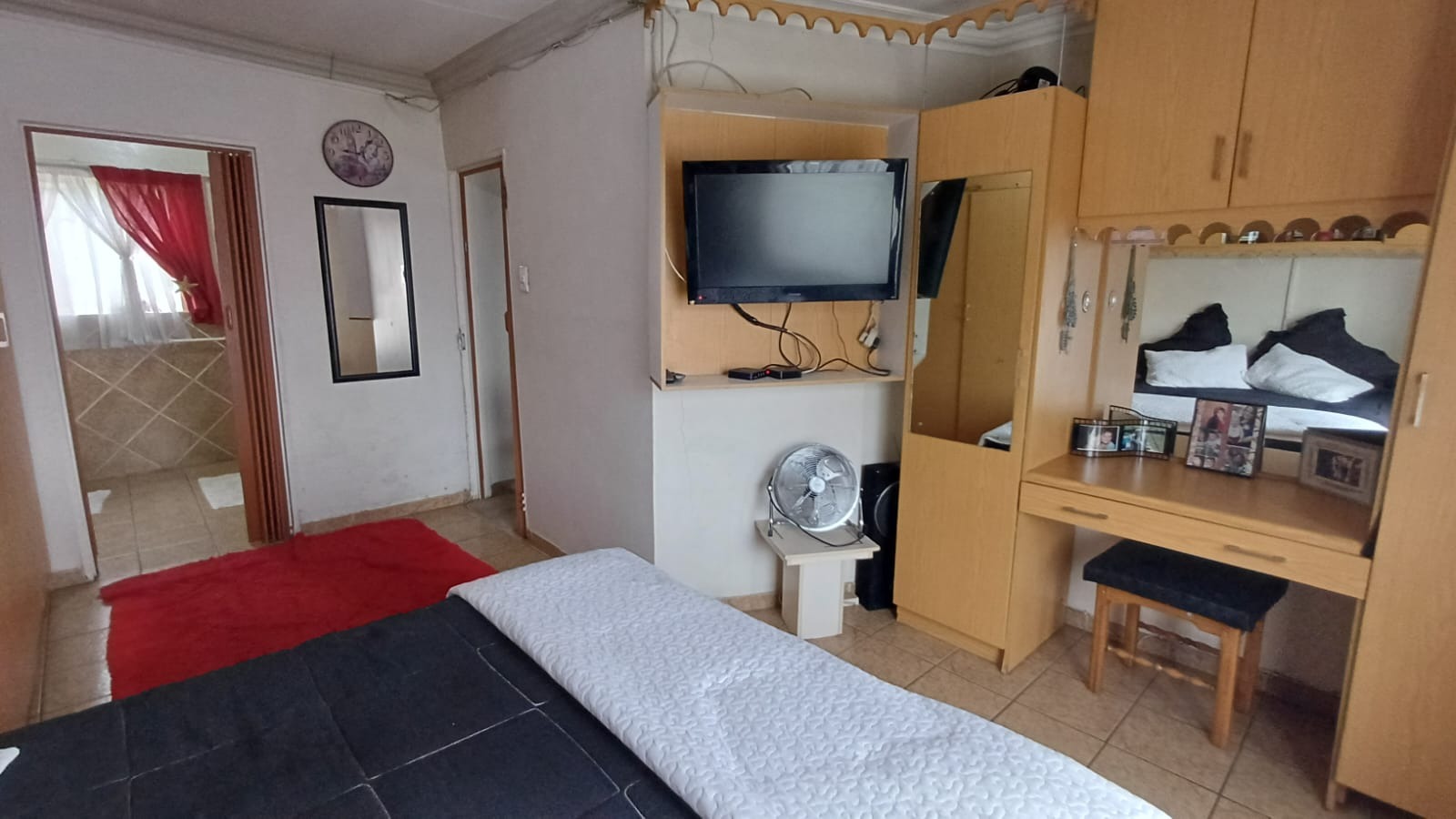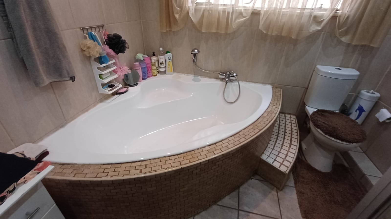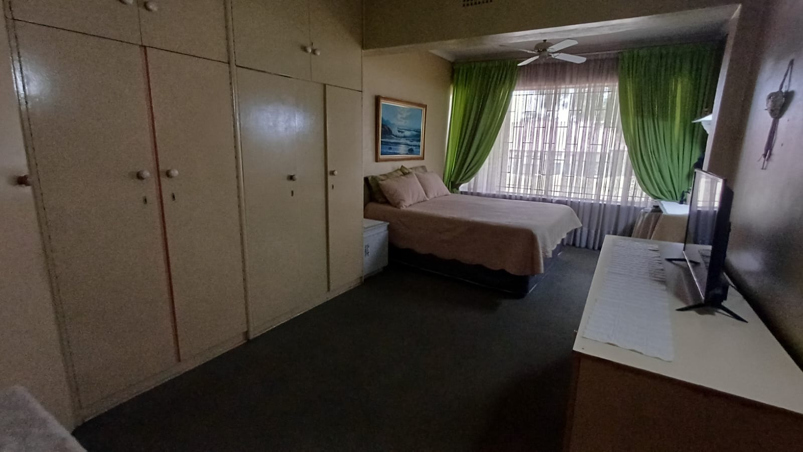 This substantial property in Alberton North presents a secure frontage with a fenced yard, prominent entrance gate, and burglar bars on windows. The exterior features a single-story main house complemented by a two-story structure housing three garages, offering significant utility. While some external finishes and the driveway show signs of age, the overall footprint on the 991 sqm erf is notable. The residence offers a generous interior layout, comprising two distinct lounges, a dedicated dining room, and an additional family TV room, providing versatile living spaces. The functional kitchen is equipped with extensive light-colored countertops, ample cabinetry including an integrated wine rack, and versatile cooking options with both gas and electric hobs alongside a built-in oven. A tiled backsplash and natural light enhance its practicality. A dedicated laundry area is also present. Accommodation includes five well-proportioned bedrooms, ensuring ample private space. The property features two bathrooms, one of which is an en-suite, providing convenience. A dedicated study offers an ideal environment for remote work or academic pursuits. Outdoor areas are designed for practicality and enjoyment, boasting three garages and two additional parking spaces. A patio provides an outdoor retreat, complemented by a garden, paving, and a functional driveway. Pets are permitted. Located in Alberton North, Alberton, South Africa, this property is ideally positioned within a well-established metropolitan and suburban area, providing convenient access to essential amenities and transport routes. Key Features: * Five Bedrooms * Two Bathrooms (One En-suite) * Three Garages & Two Parking Spaces * 991 sqm Erf Size * Two Lounges & Family TV Room * Dedicated Dining Room & Study * Functional Kitchen with Dual Hobs * Patio, Garden, Paving, and Driveway * Burglar Bars for Enhanced Security
