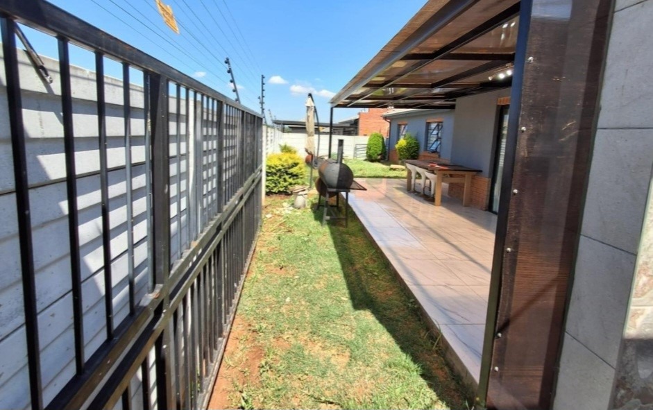 Discover an exquisite opportunity within the tranquil suburban enclave of Albertsdal, Alberton. This distinguished residence, nestled within a desirable complex, presents a harmonious blend of comfort and sophisticated living. The interior unfolds with a thoughtfully designed layout, featuring a dedicated lounge and a separate dining room, perfect for intimate gatherings. A well-appointed kitchen completes this inviting space.