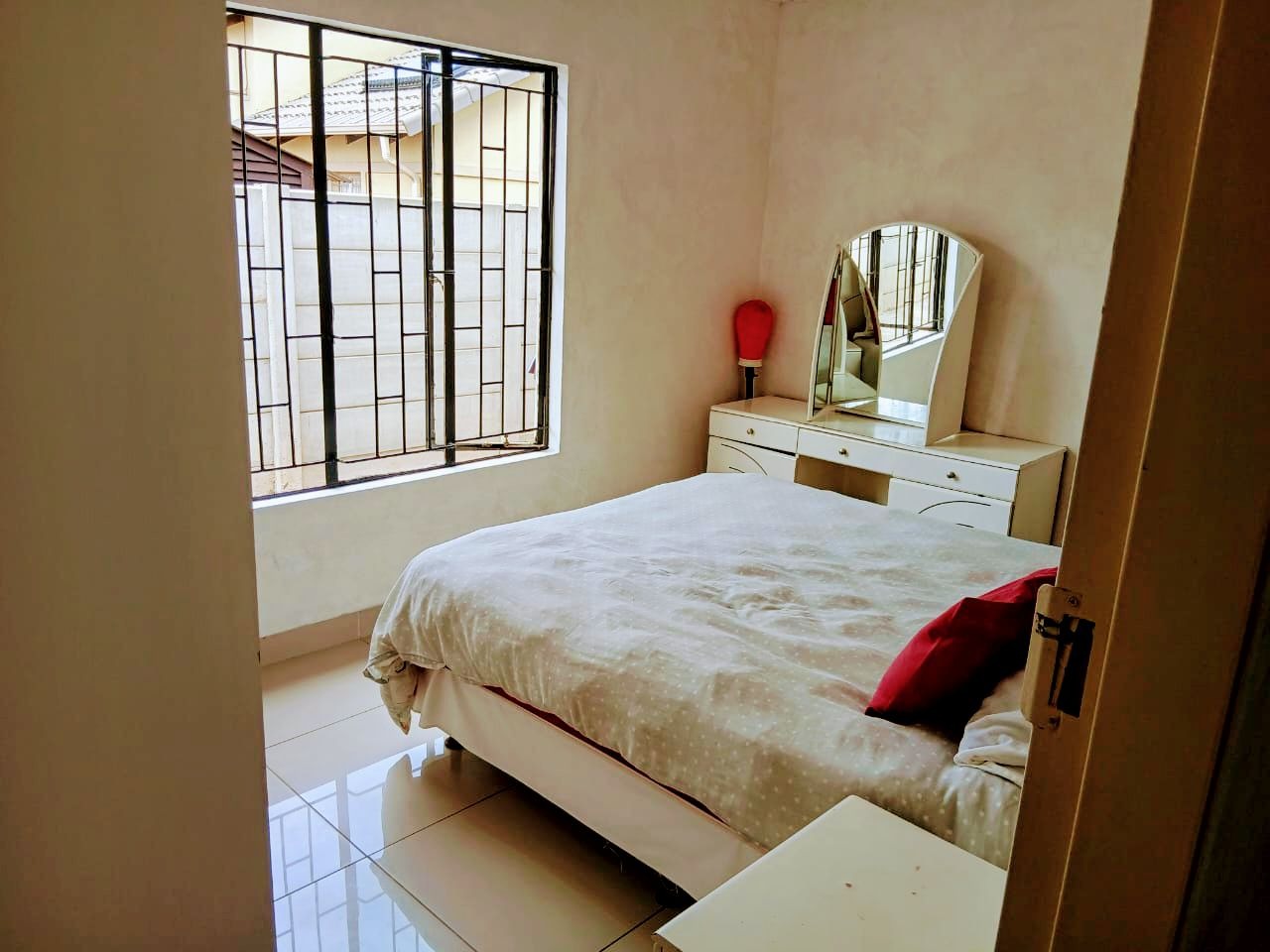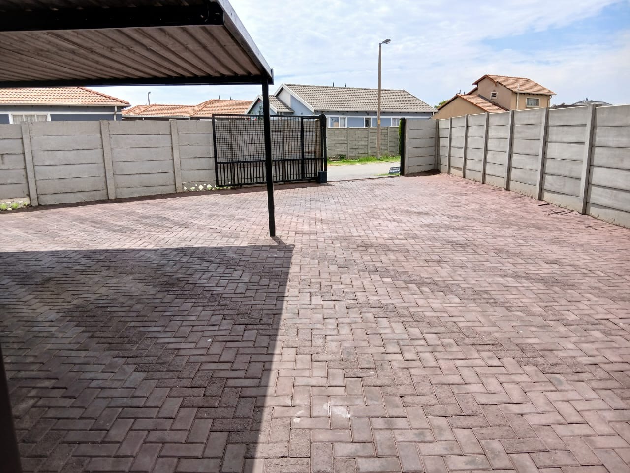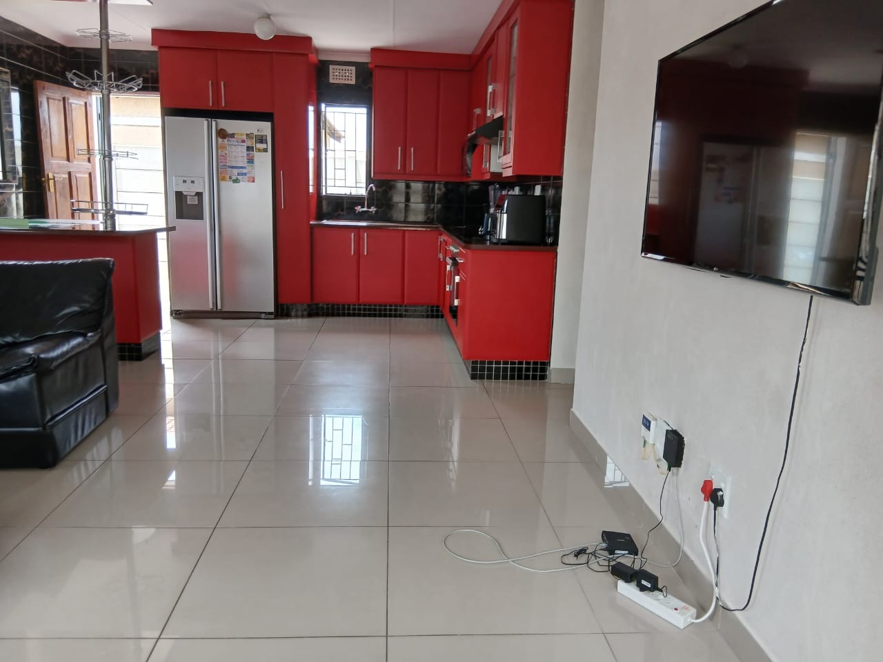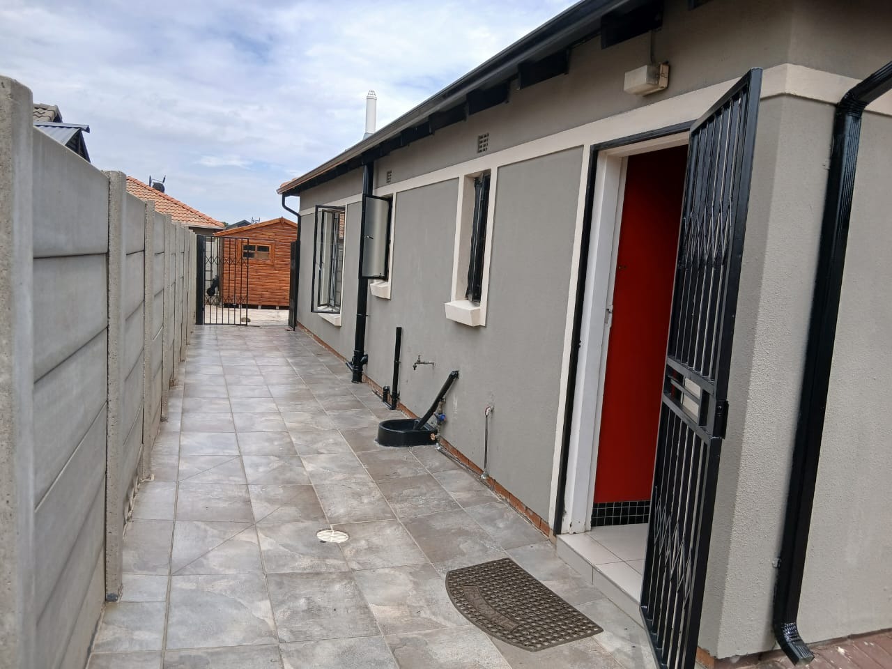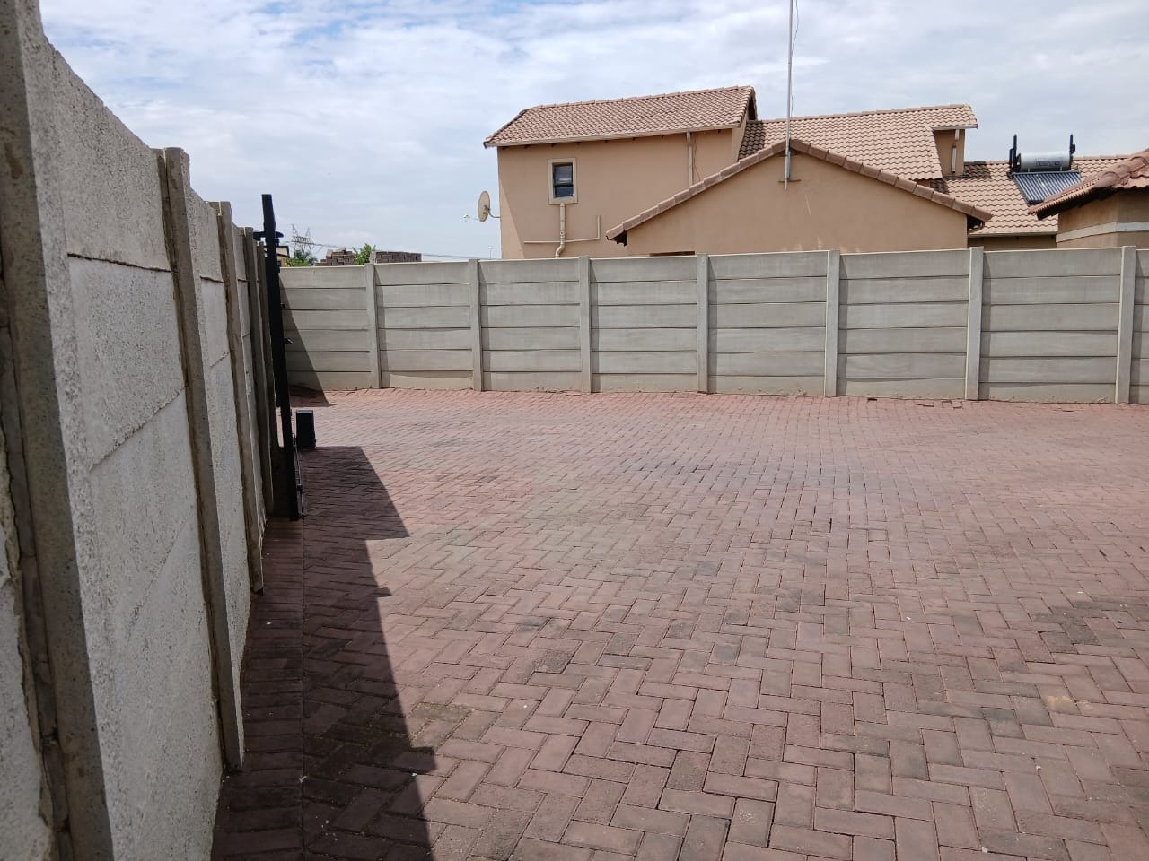 Discover this inviting 3-bedroom, 2-bathroom home situated in the suburban security estate of Albertsdal, Alberton. The property boasts excellent kerb appeal with an extensive paved driveway, secured by an automated sliding gate and tall concrete boundary walls, leading to a convenient covered carport. This ensures both privacy and ample parking. Step inside to an open-plan living and kitchen area, featuring modern, glossy tiled floors throughout for easy maintenance. The kitchen is a focal point with its bold red cabinetry, black countertops, integrated appliances, and a functional breakfast bar, creating a vibrant space for entertaining. The home is offered furnished, providing immediate comfort and convenience. Accommodation includes three comfortable bedrooms, with one offering the privacy of an en-suite bathroom. The second bathroom is fully tiled and includes a bathtub, toilet, and basin, along with space for a washing machine, catering to practical needs. Security is paramount, with features such as electric fencing, an alarm system, access gate, security post, burglar bars, and security gates, all contributing to a secure living environment within a 24-hour security estate. Sustainability is enhanced by a visible solar water heater. Albertsdal offers a desirable suburban lifestyle within Alberton, known for its community feel and convenient access to amenities. This property provides a secure and comfortable family home. Key Features: * 3 Bedrooms, 2 Bathrooms (1 en-suite) * Open-plan living and kitchen area * Modern red kitchen cabinetry with black countertops * Glossy tiled flooring throughout * Extensive paved driveway with covered carport * Automated sliding gate and concrete boundary walls * Enhanced security: electric fencing, alarm, burglar bars, security gates * 24-hour security estate * Solar water heater * Furnished property