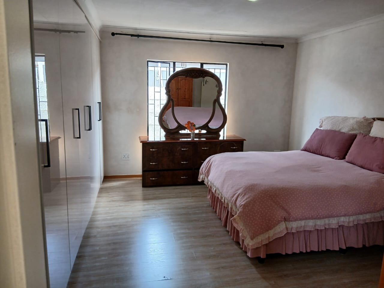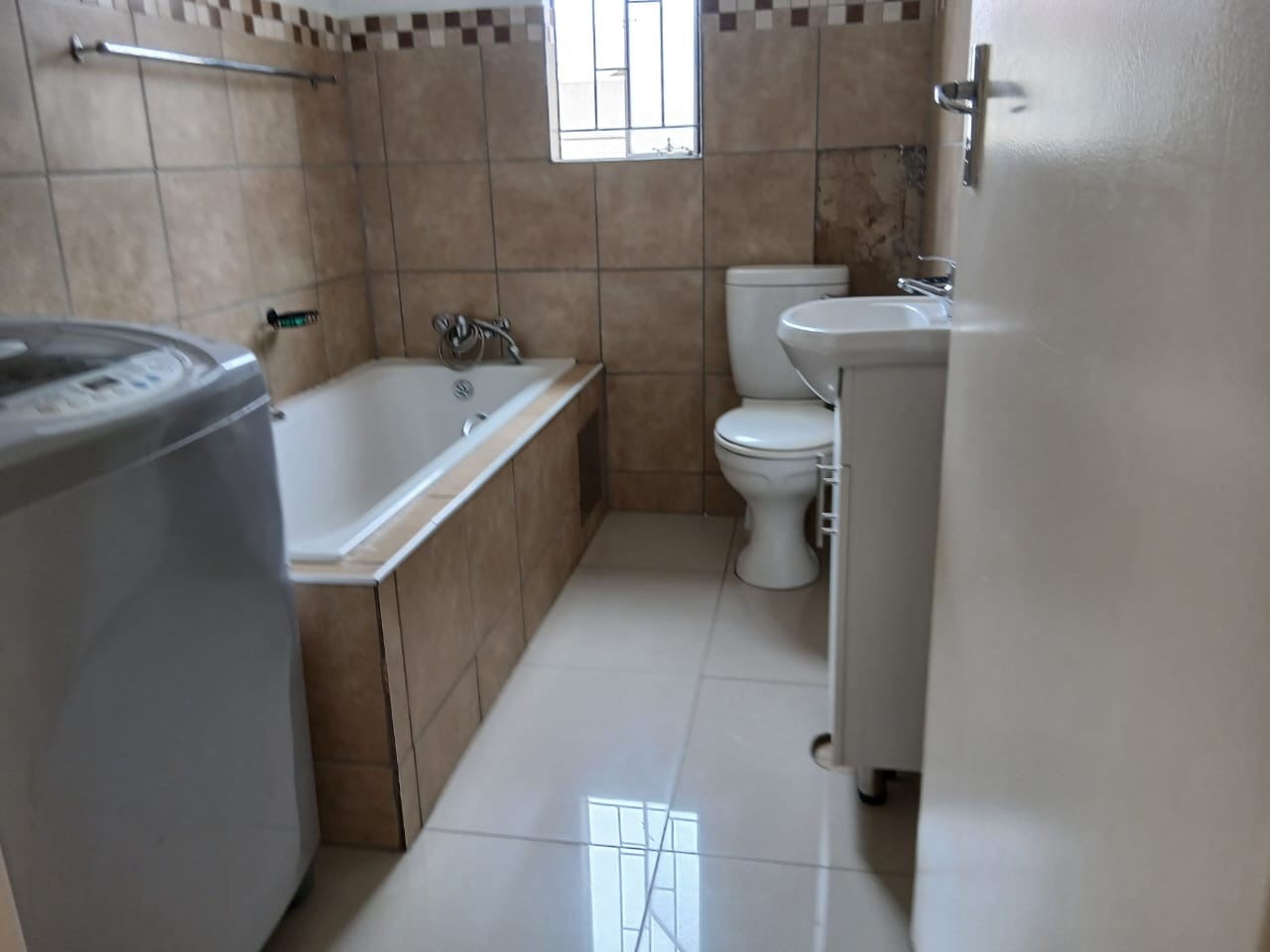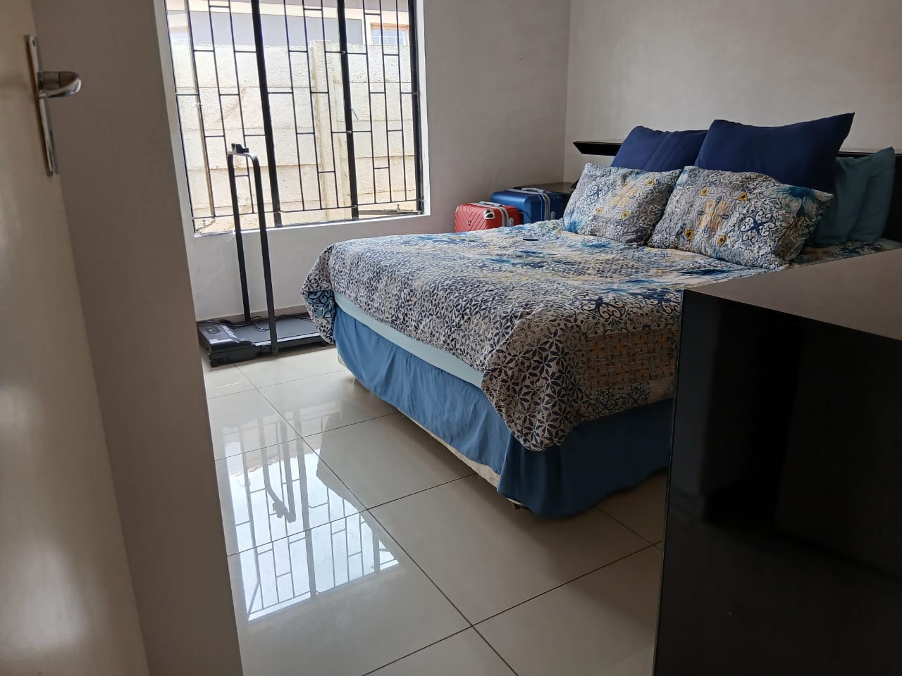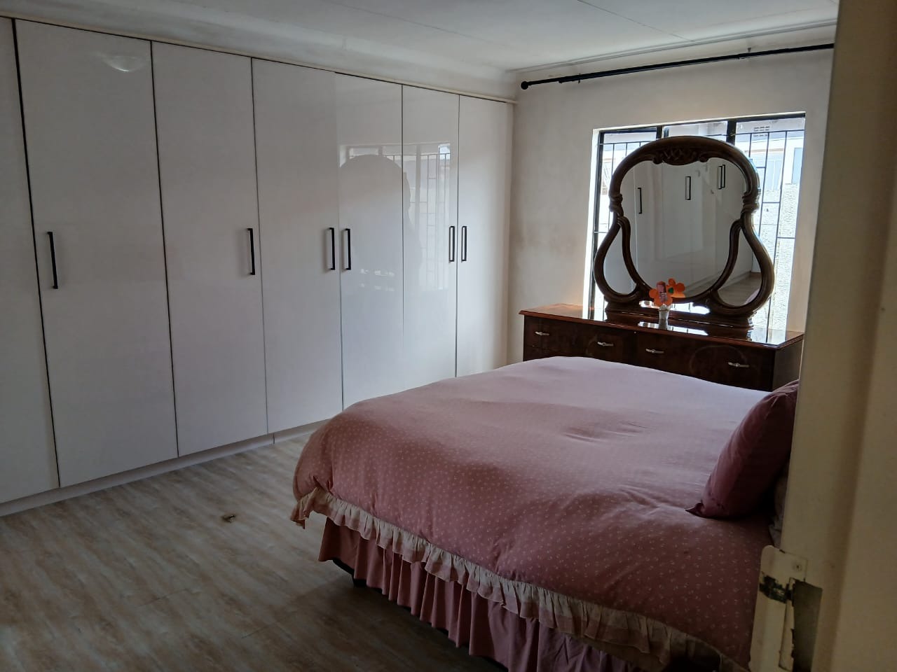 Discover this inviting 3-bedroom, 2-bathroom home situated in the suburban security estate of Albertsdal, Alberton. The property boasts excellent kerb appeal with an extensive paved driveway, secured by an automated sliding gate and tall concrete boundary walls, leading to a convenient covered carport. This ensures both privacy and ample parking. Step inside to an open-plan living and kitchen area, featuring modern, glossy tiled floors throughout for easy maintenance. The kitchen is a focal point with its bold red cabinetry, black countertops, integrated appliances, and a functional breakfast bar, creating a vibrant space for entertaining. The home is offered furnished, providing immediate comfort and convenience. Accommodation includes three comfortable bedrooms, with one offering the privacy of an en-suite bathroom. The second bathroom is fully tiled and includes a bathtub, toilet, and basin, along with space for a washing machine, catering to practical needs. Security is paramount, with features such as electric fencing, an alarm system, access gate, security post, burglar bars, and security gates, all contributing to a secure living environment within a 24-hour security estate. Sustainability is enhanced by a visible solar water heater. Albertsdal offers a desirable suburban lifestyle within Alberton, known for its community feel and convenient access to amenities. This property provides a secure and comfortable family home. Key Features: * 3 Bedrooms, 2 Bathrooms (1 en-suite) * Open-plan living and kitchen area * Modern red kitchen cabinetry with black countertops * Glossy tiled flooring throughout * Extensive paved driveway with covered carport * Automated sliding gate and concrete boundary walls * Enhanced security: electric fencing, alarm, burglar bars, security gates * 24-hour security estate * Solar water heater * Furnished property