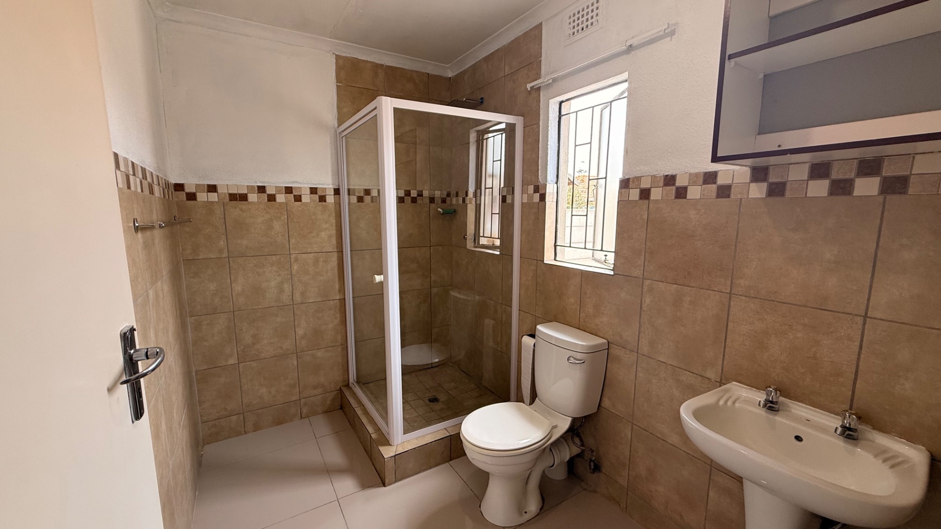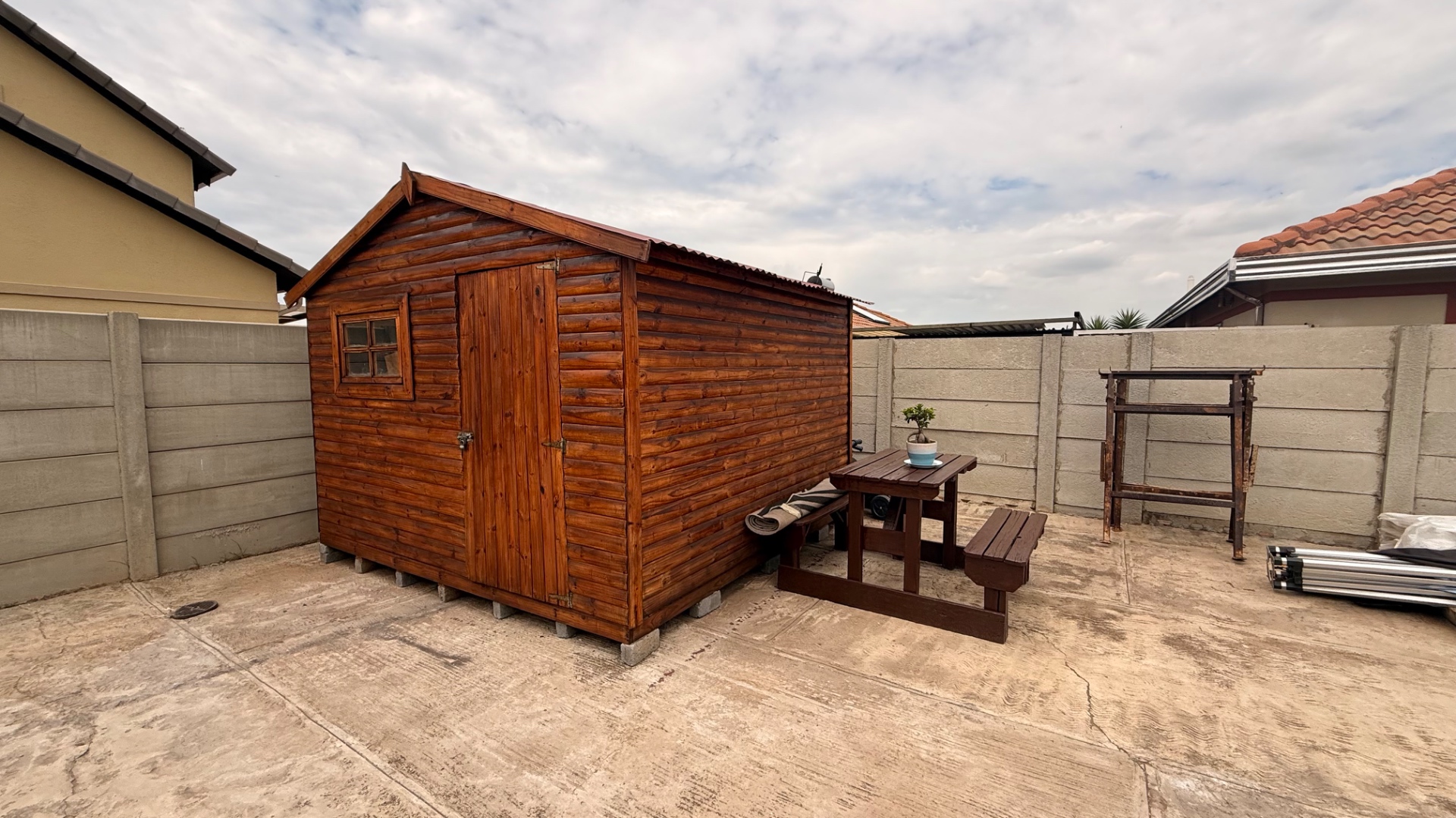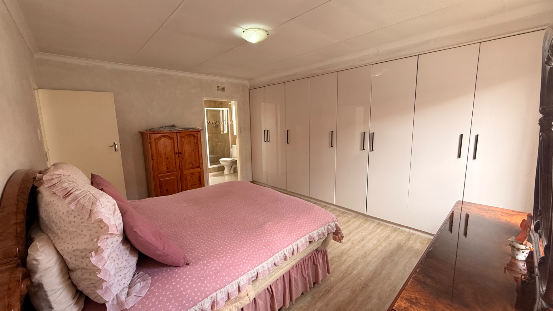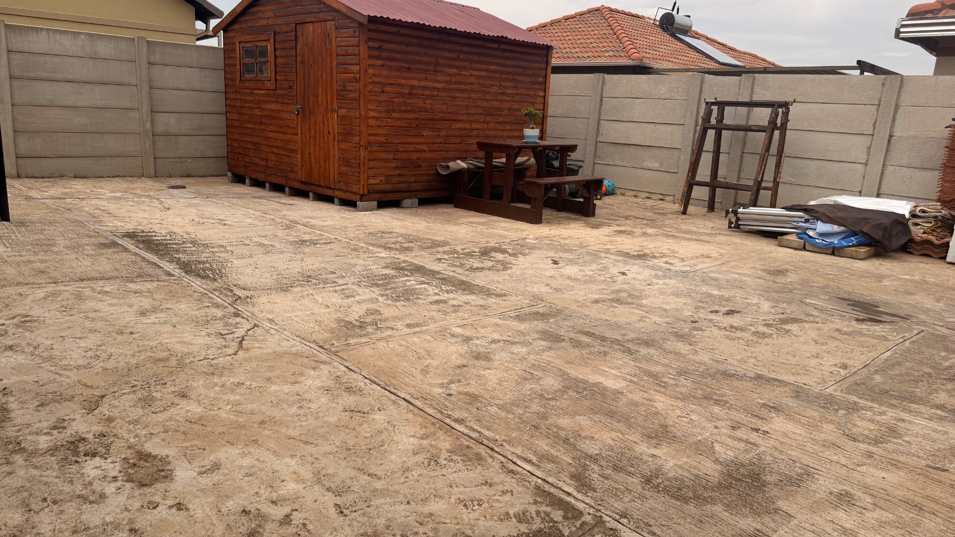 Discover secure estate living in this inviting 3-bedroom, 2-bathroom home located in Albertsdal, Alberton. The property boasts excellent kerb appeal with a compact, well-maintained exterior, a tiled roof, and a large paved front yard offering ample parking, complemented by a multi-car carport. Enhanced security features include concrete boundary walls, a gated entrance, burglar bars, and a security gate, all within an estate offering 24-hour security. Step inside to an open-plan living area seamlessly flowing into a modern kitchen. The kitchen is a highlight, featuring bold red cabinetry, sleek black countertops, a black tiled backsplash, and integrated appliances including an oven, microwave, and range hood. A convenient island/bar area provides additional counter space and seating, perfect for entertaining. The entire living space benefits from modern tiled flooring and good natural light. This home offers three comfortable bedrooms, each with tiled flooring and natural light from windows fitted with security bars. There are two bathrooms, with one being an en-suite, providing practical amenities. The main bathroom includes a bathtub and dedicated space for a washing machine. Ideal for those seeking a secure and functional family home, this property allows pets and combines modern living with peace of mind in the Albertsdal area.