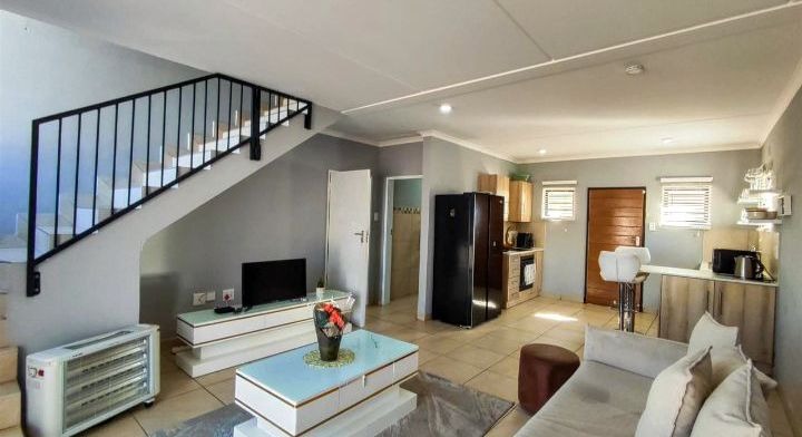 Enjoy spacious bedrooms, two sleek bathrooms, and a guest toilet, along with open-plan living and dining areas designed for easy entertaining. The stylish kitchen makes meal prep a breeze, while the private garden, patio, and built-in braai area are perfect for relaxing or hosting friends. A double carport adds everyday ease.