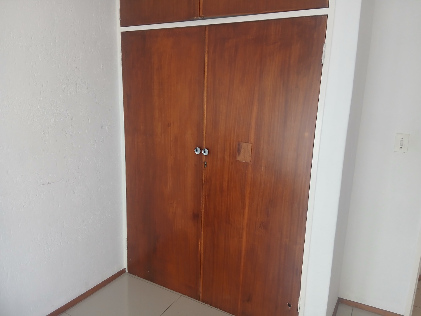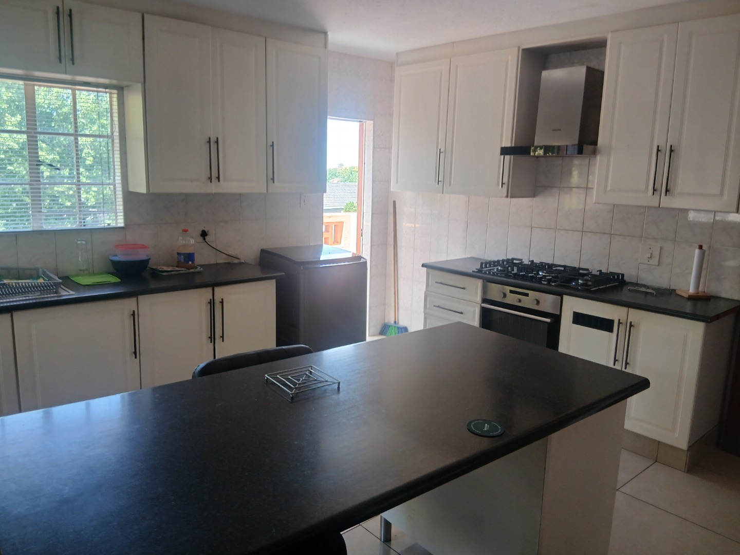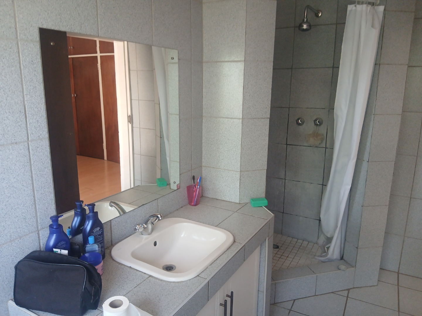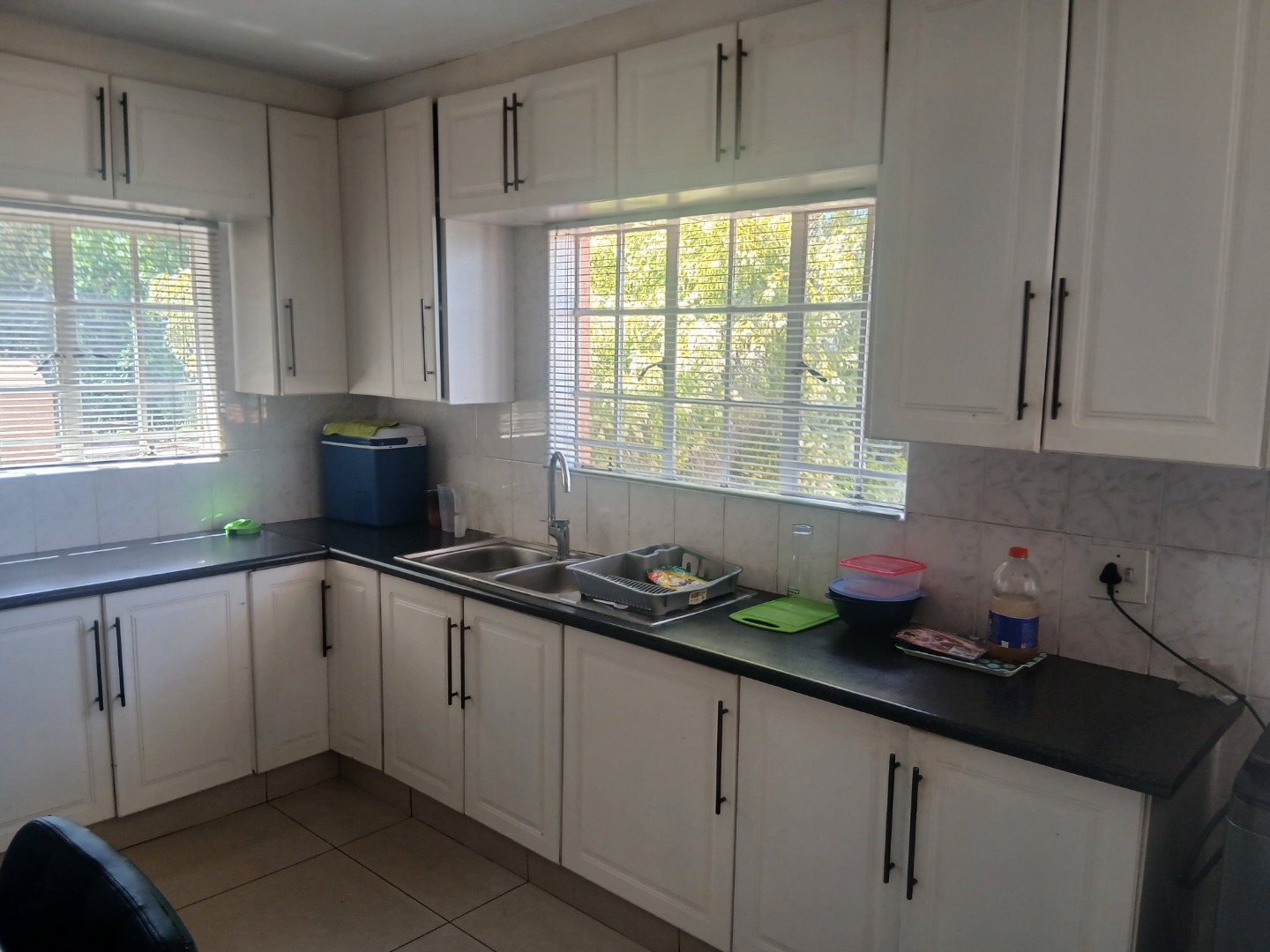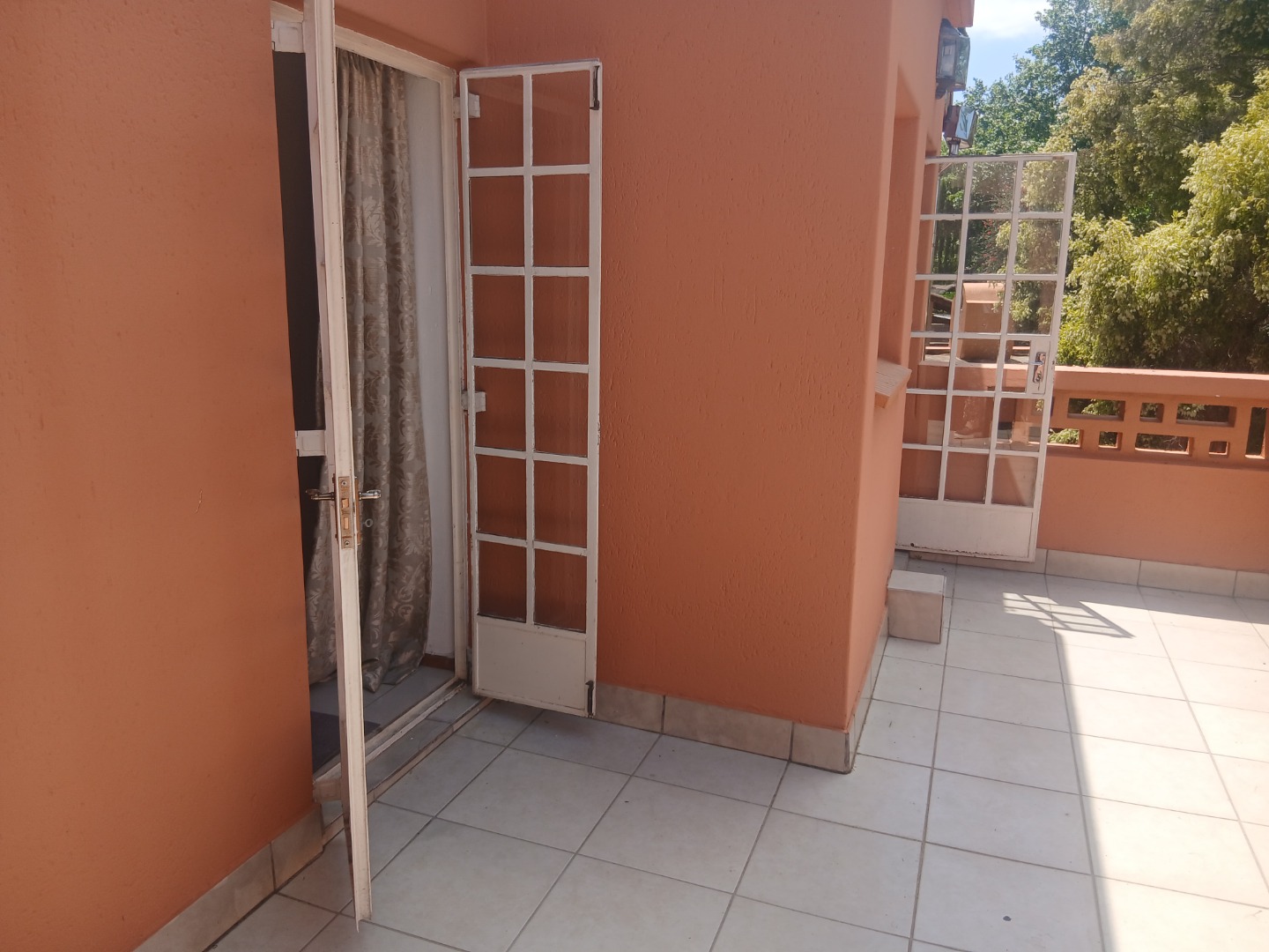 Spacious top floor unit in a small complex located in a quiet area. The unit features a tiled open plan dining and living area. The kitchen is huge with lots of cupboards, island, gas hob and fire place. The main bedroom has an ensuite bathroom, built in cupboards, balcony and space for a king size bed. The two other well sized tiled bedrooms have built in cupboards and enough space for double and queen beds. The patio is spacious and hosts a beautiful view, built in braai with enough space for a table and chairs. There is one automated garage with ample space for visitors to park. A must see for people who require a lock up and go!